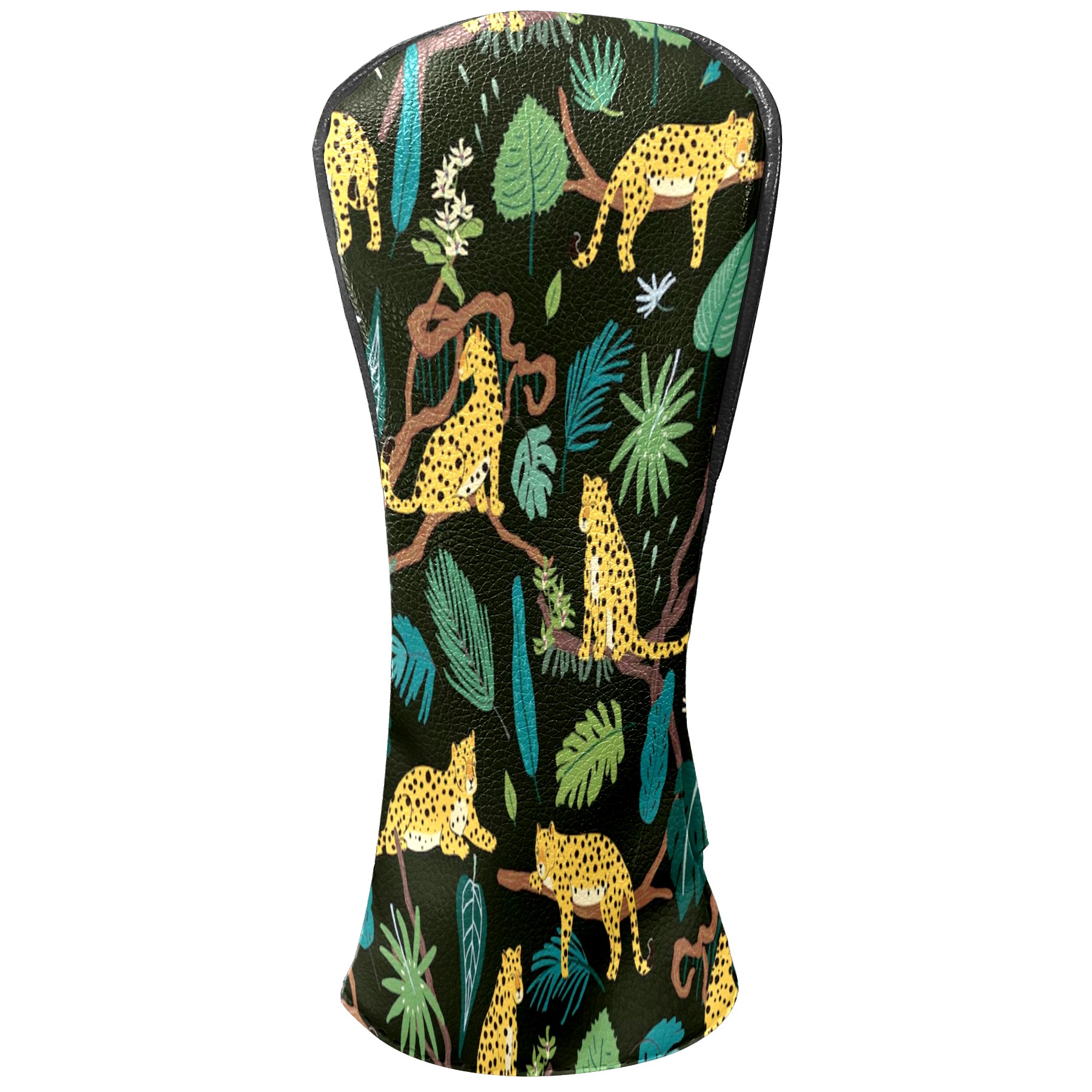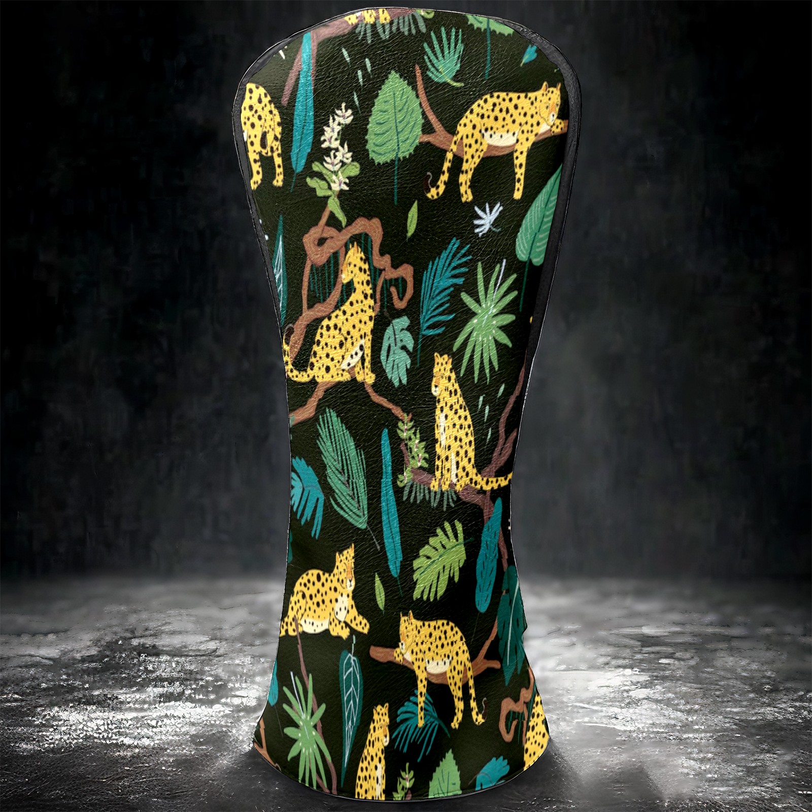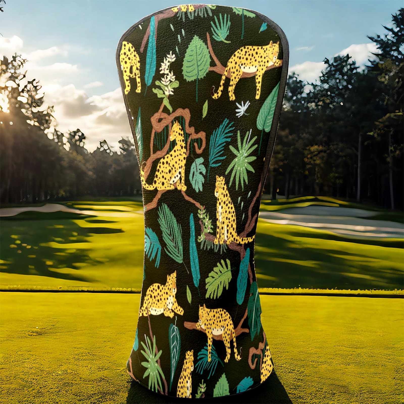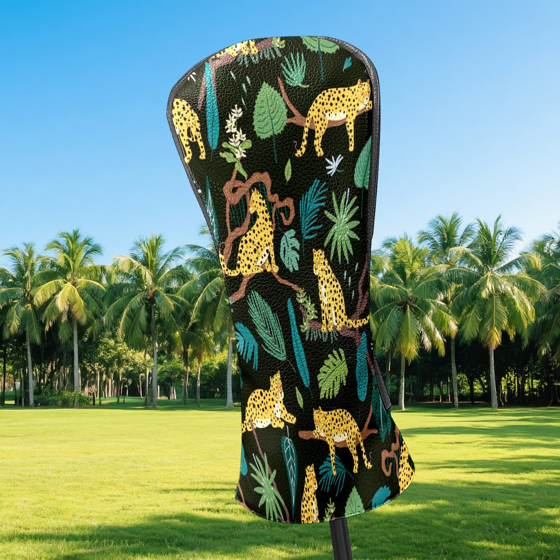 Golf Club Head Cover Waterproof Leather for Driver & Fairway Wood, Driver Headcovers, Golf Accessories for Men Women, Anti-Scratch, Golf Gift for Golfers, 1/3/5 Wood Cover Yellow Leopard Forest