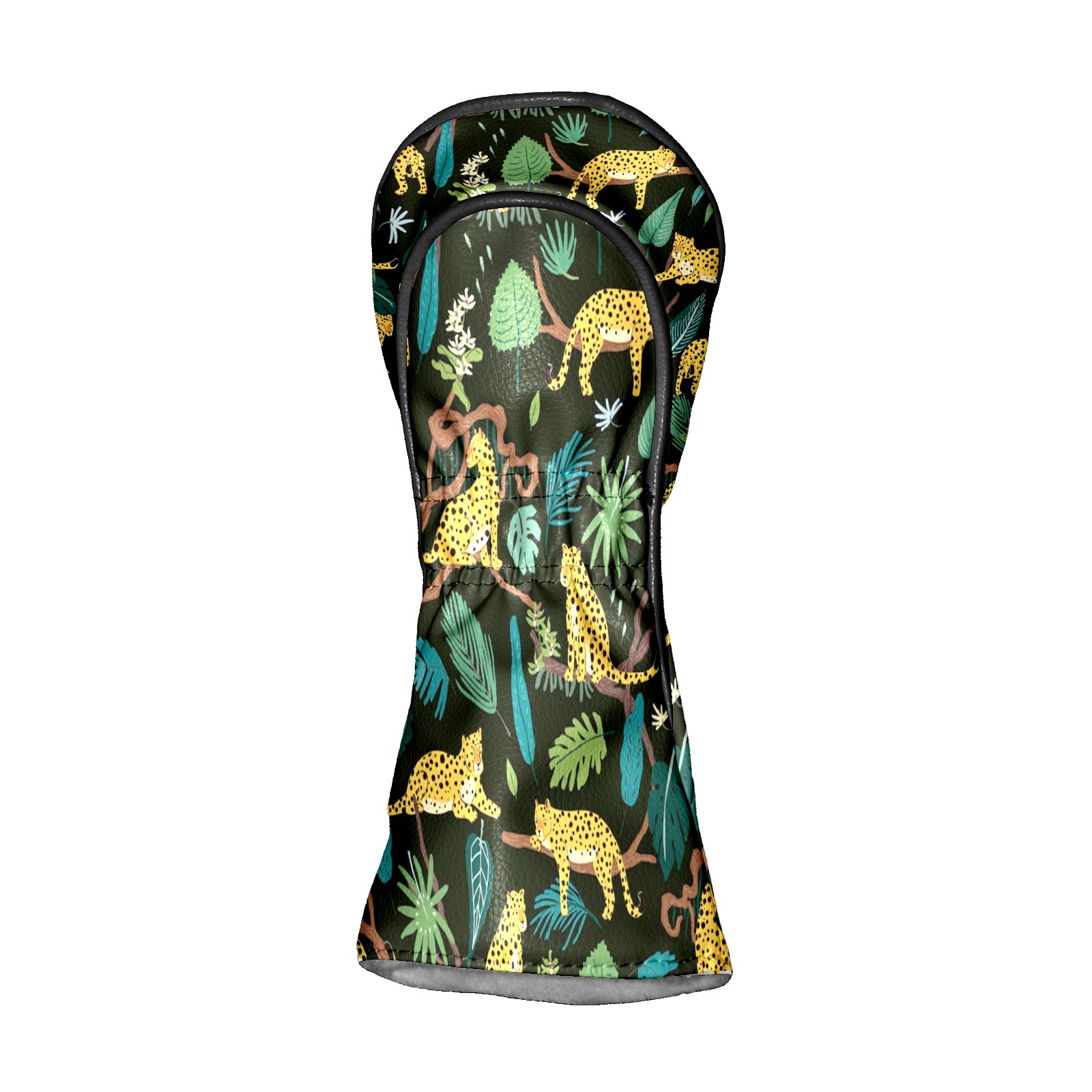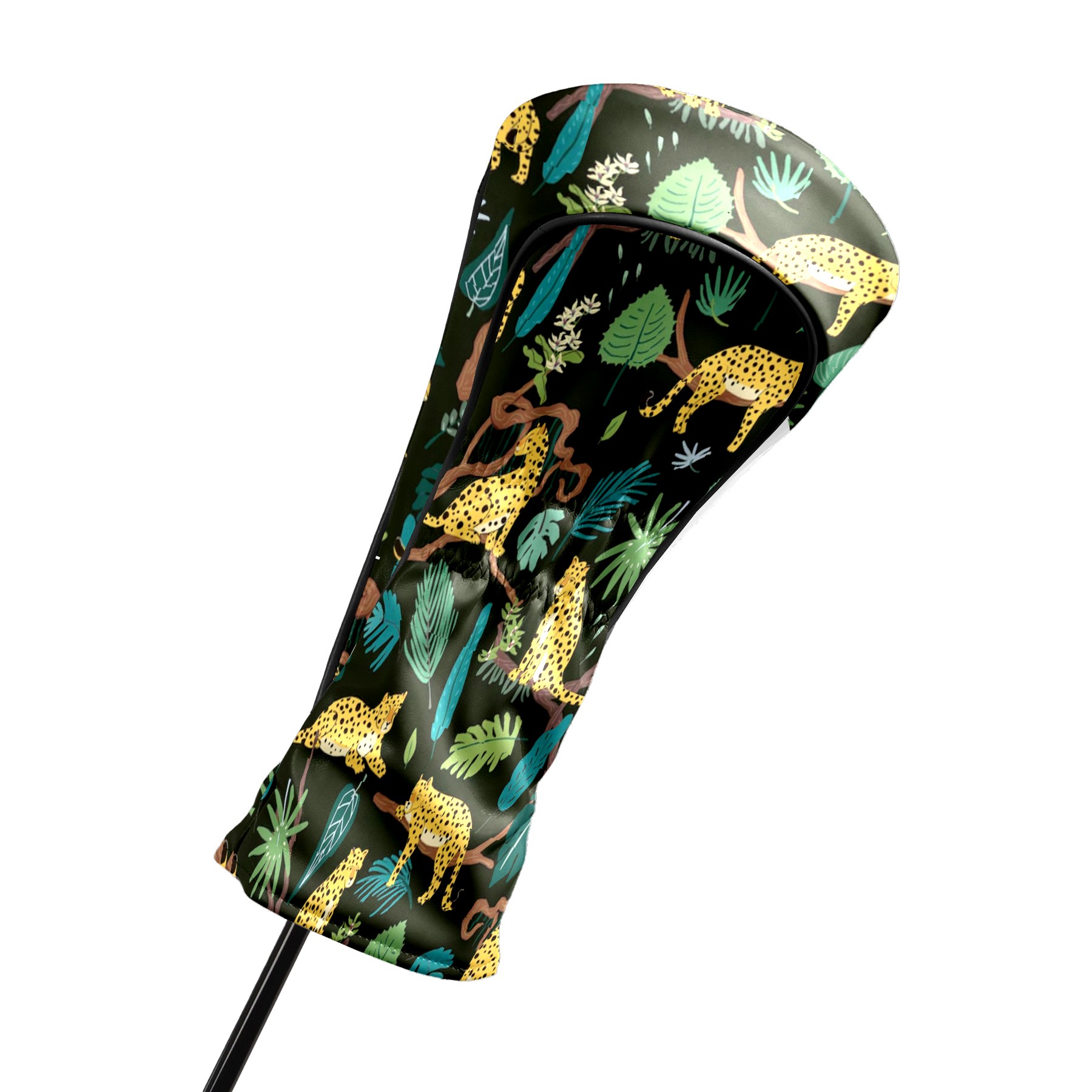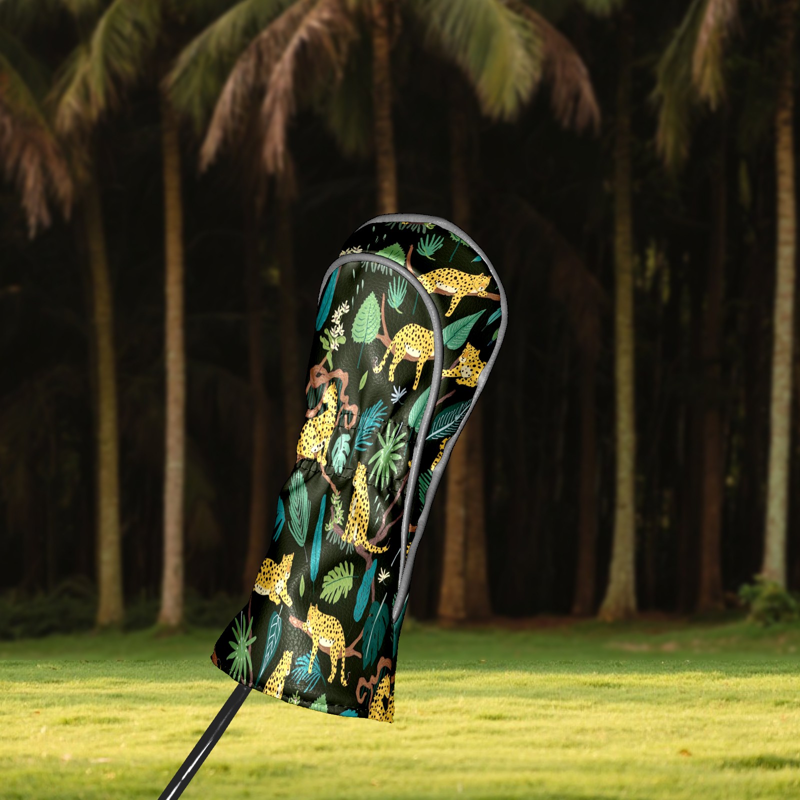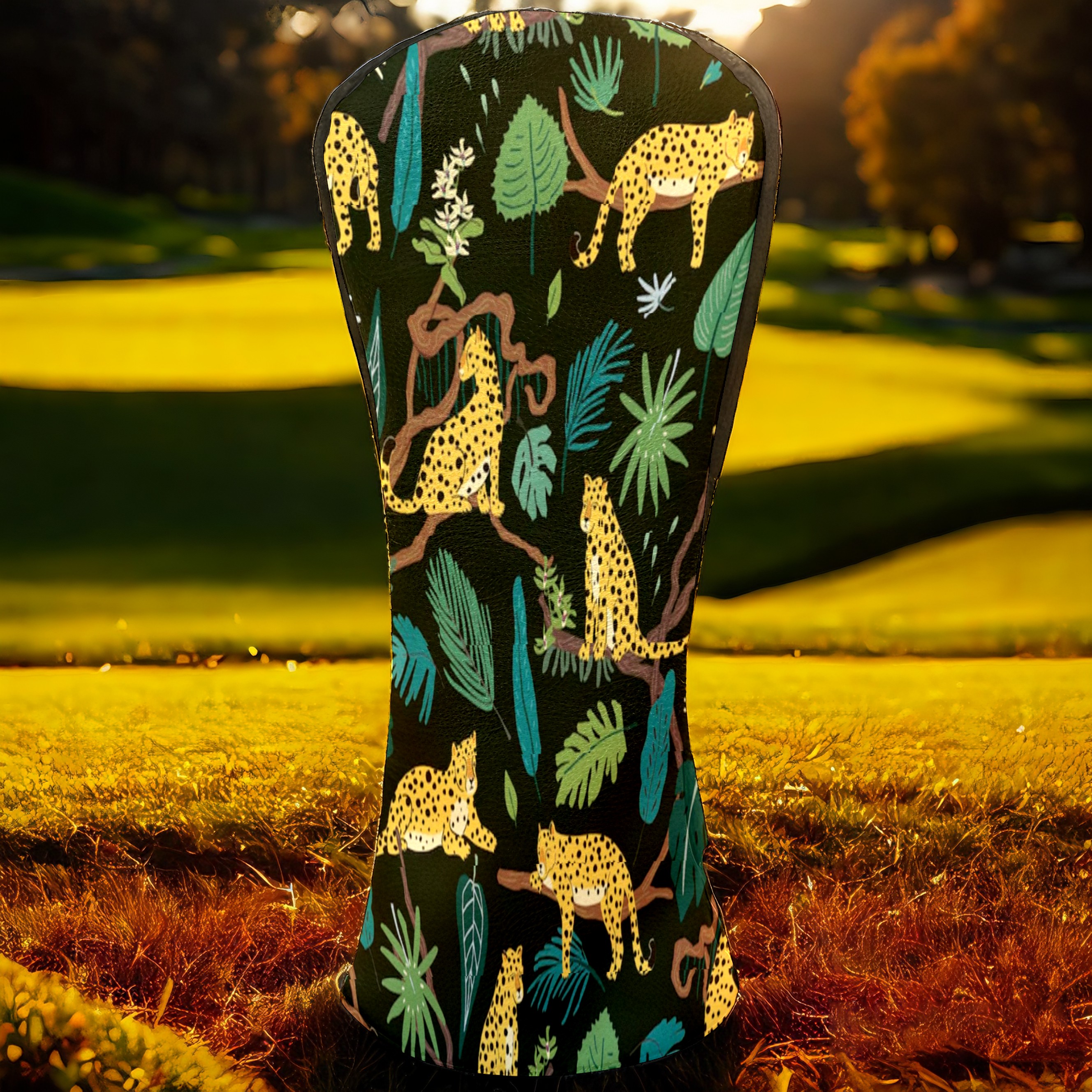 Golf Club Head Cover Waterproof Leather for Driver & Fairway Wood, Driver Headcovers, Golf Accessories for Men Women, Anti-Scratch, Golf Gift for Golfers, 1/3/5 Wood Cover Yellow Leopard Forest