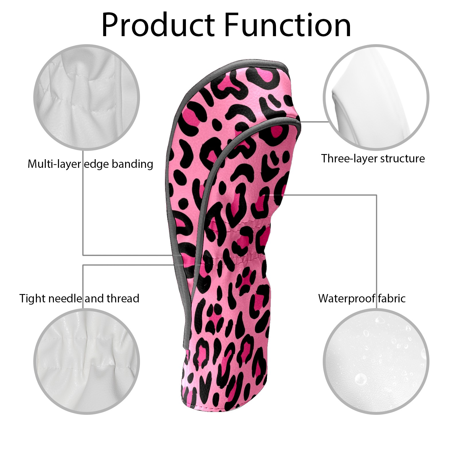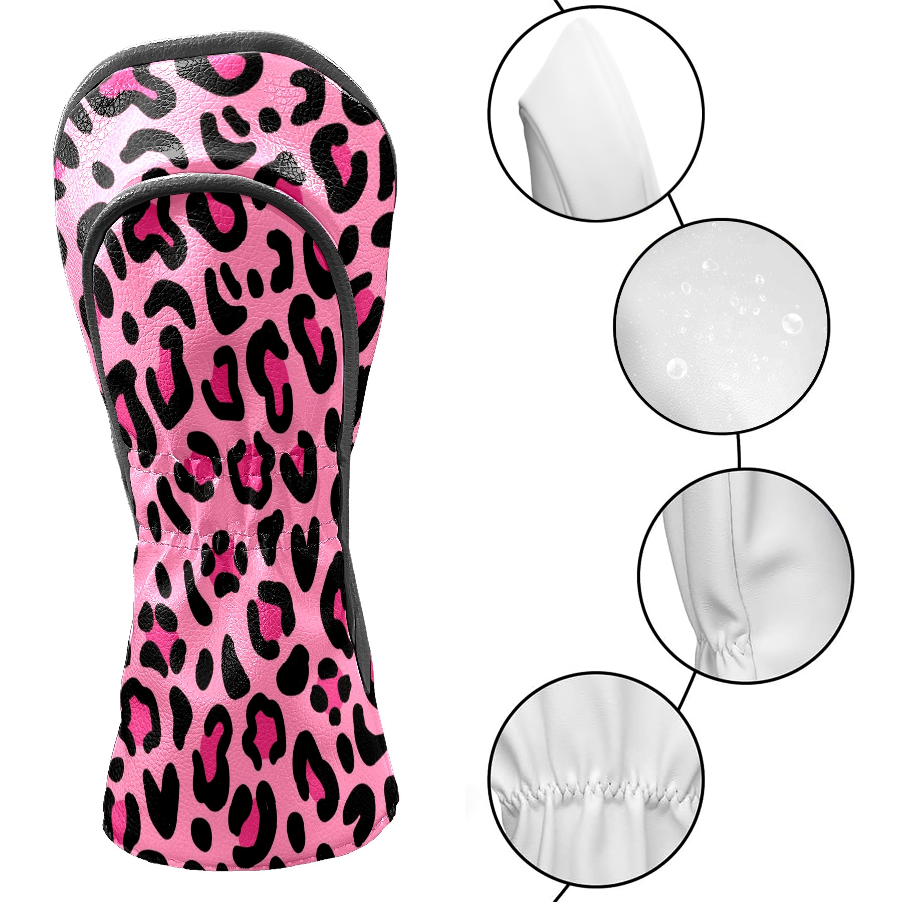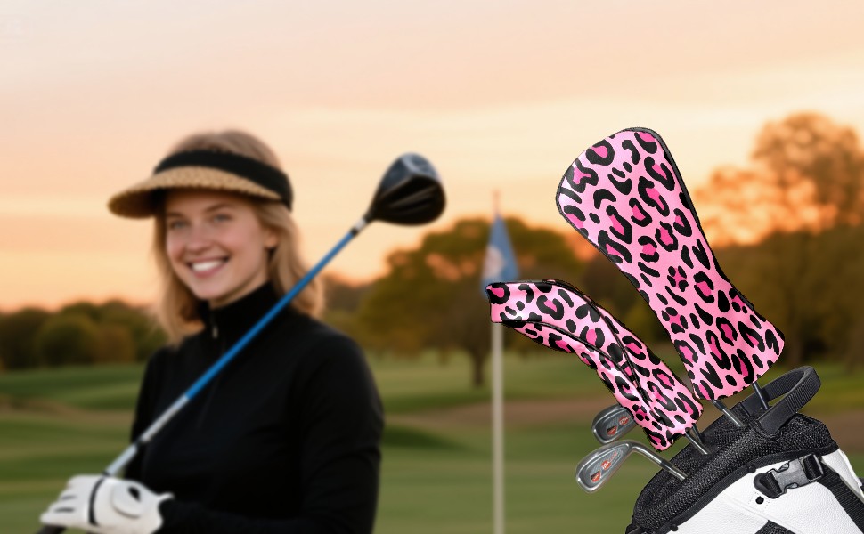 Golf Club Head Cover Waterproof Leather for Driver & Fairway Wood, Driver Headcovers, Golf Accessories for Men Women, Anti-Scratch, Golf Gift for Golfers, 1/3/5 Wood Cover Pink Leopard