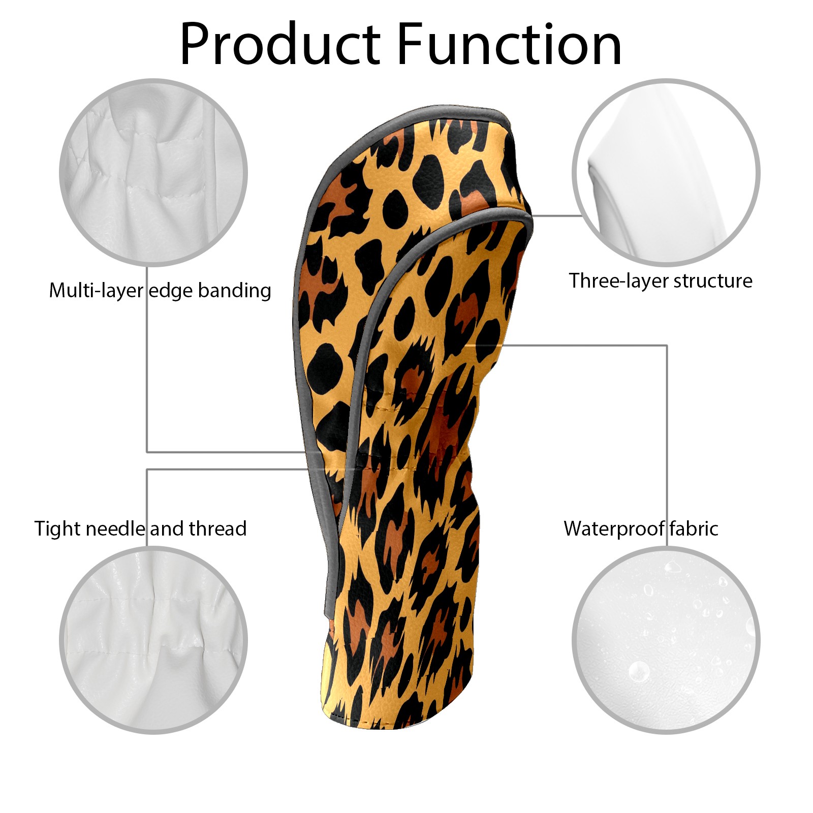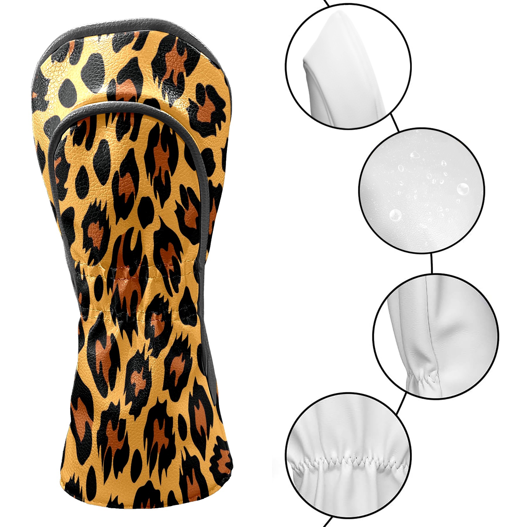 Golf Club Head Cover Waterproof Leather for Driver & Fairway Wood, Driver Headcovers, Golf Accessories for Men Women, Anti-Scratch, Golf Gift for Golfers, 1/3/5 Wood Cover Khaki Leopard Animal