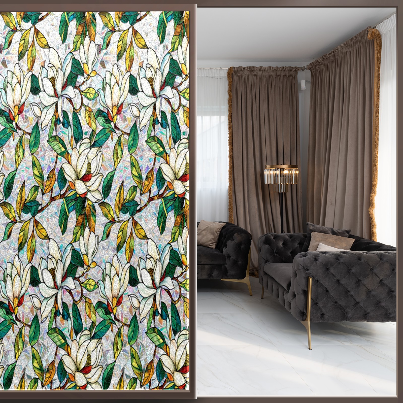 <p>Our film is made of food-grade PET material, safe and odorless, mother and baby families can rest assured that the use of explosion-proof impact resistance more peace of mind. High-definition full-sheet printing, delicate pattern does not fade, easy to enhance the tone of the home, suitable for a variety of decorative styles. Single-sided frosted design, effective protection of privacy, clear view during the day, night anti-peeping without embarrassment. Electrostatic adsorption installation, glue-free without leaving marks, can be repeatedly adjusted for use. It can also block ultraviolet rays, sunscreen insulation, protect furniture from fading, energy saving and more comfortable!&nbsp;&nbsp;</p>