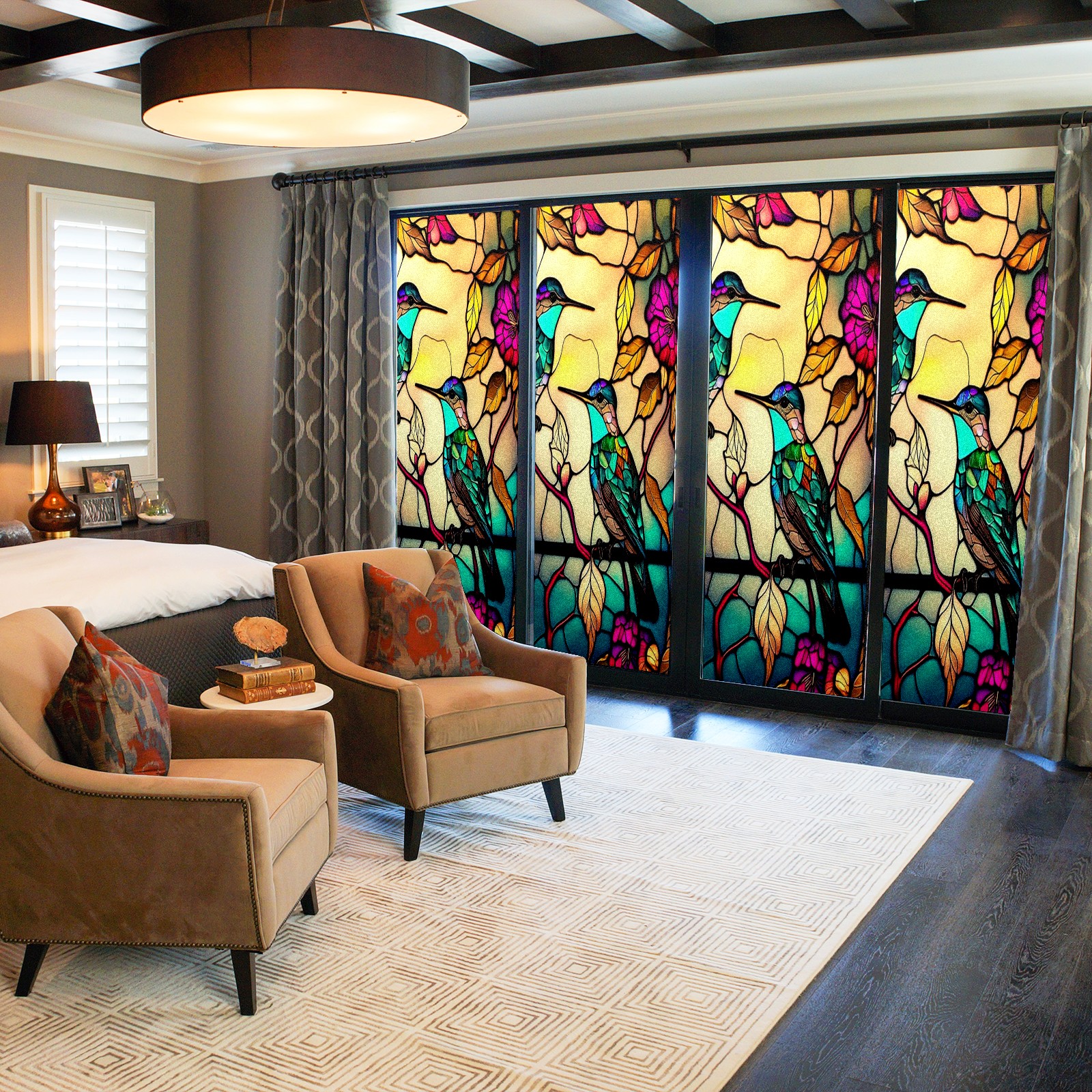 <p>Our film is made of food-grade PET material, safe and odorless, mother and baby families can rest assured that the use of explosion-proof impact resistance more peace of mind. High-definition full-sheet printing, delicate pattern does not fade, easy to enhance the tone of the home, suitable for a variety of decorative styles. Single-sided frosted design, effective protection of privacy, clear view during the day, night anti-peeping without embarrassment. Electrostatic adsorption installation, glue-free without leaving marks, can be repeatedly adjusted for use. It can also block ultraviolet rays, sunscreen insulation, protect furniture from fading, energy saving and more comfortable!&nbsp;&nbsp;</p>