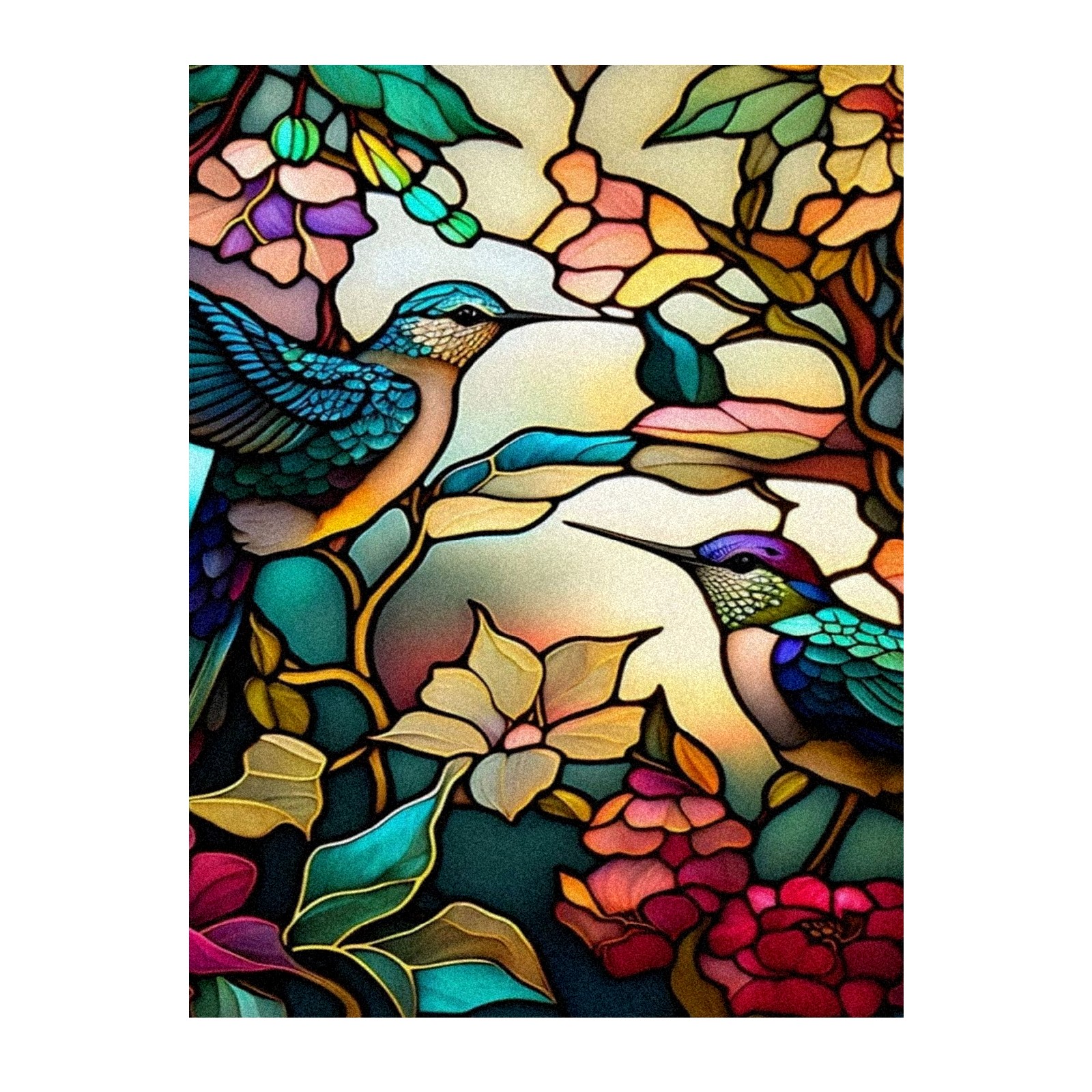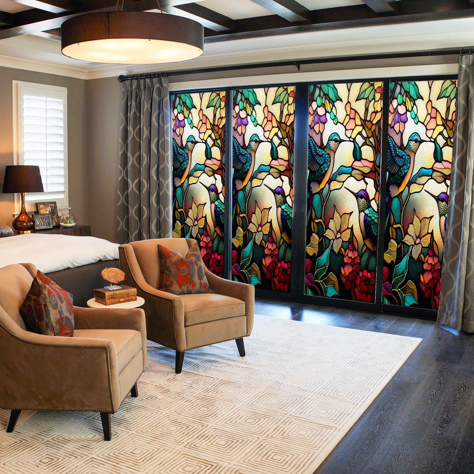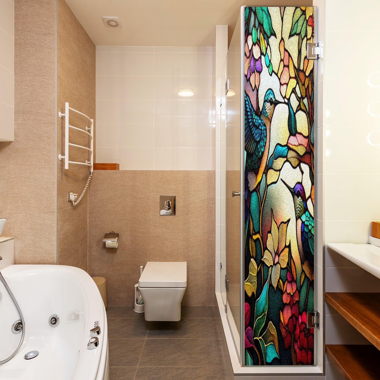 Frosted Glass Window Film Privacy Film Decorative Static Cling Window Film Stained Glass Decals for Bathroom Shower Door Non Adhesive Colorful Birds Floral (17.7x23.6in)