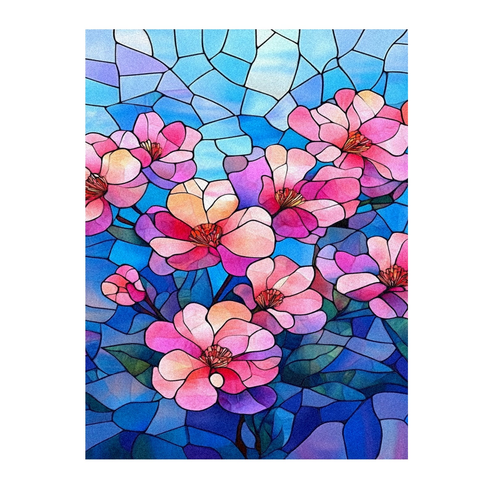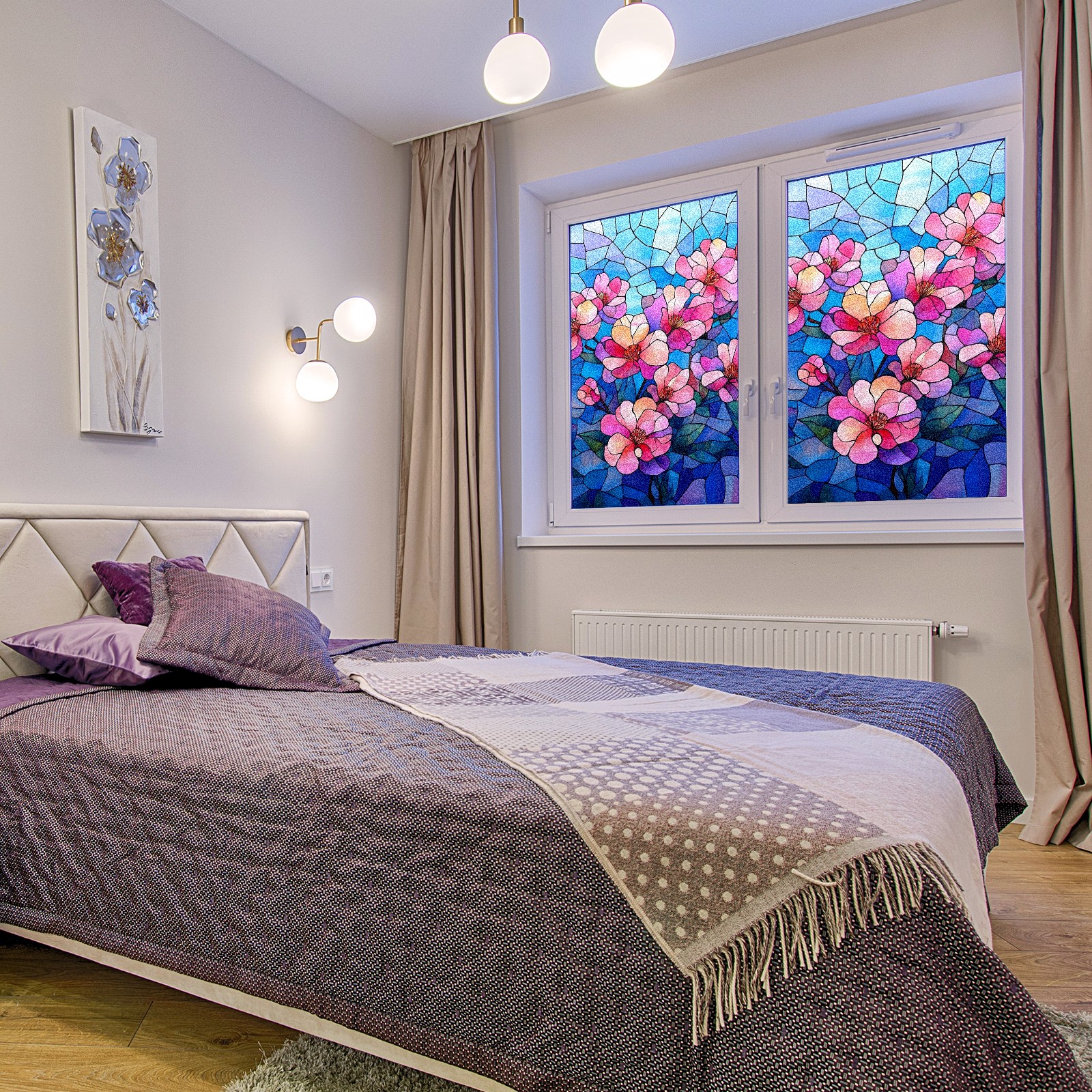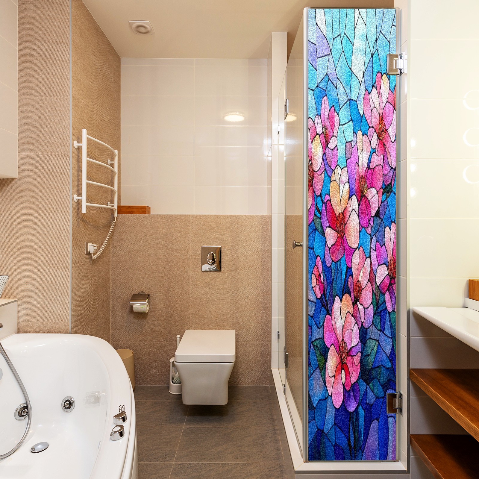 Frosted Glass Window Film Privacy Film Decorative Static Cling Window Film Stained Glass Decals for Bathroom Shower Door Non Adhesive Pink Flowers (17.7x23.6in)