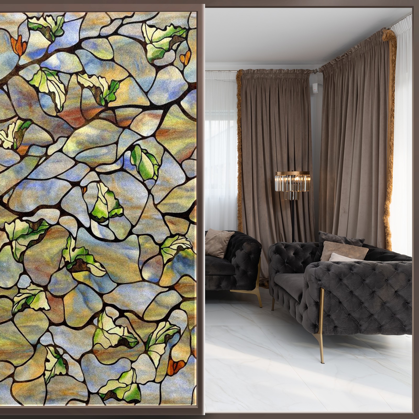 <p>Our film is made of food-grade PET material, safe and odorless, mother and baby families can rest assured that the use of explosion-proof impact resistance more peace of mind. High-definition full-sheet printing, delicate pattern does not fade, easy to enhance the tone of the home, suitable for a variety of decorative styles. Single-sided frosted design, effective protection of privacy, clear view during the day, night anti-peeping without embarrassment. Electrostatic adsorption installation, glue-free without leaving marks, can be repeatedly adjusted for use. It can also block ultraviolet rays, sunscreen insulation, protect furniture from fading, energy saving and more comfortable!&nbsp;&nbsp;</p>