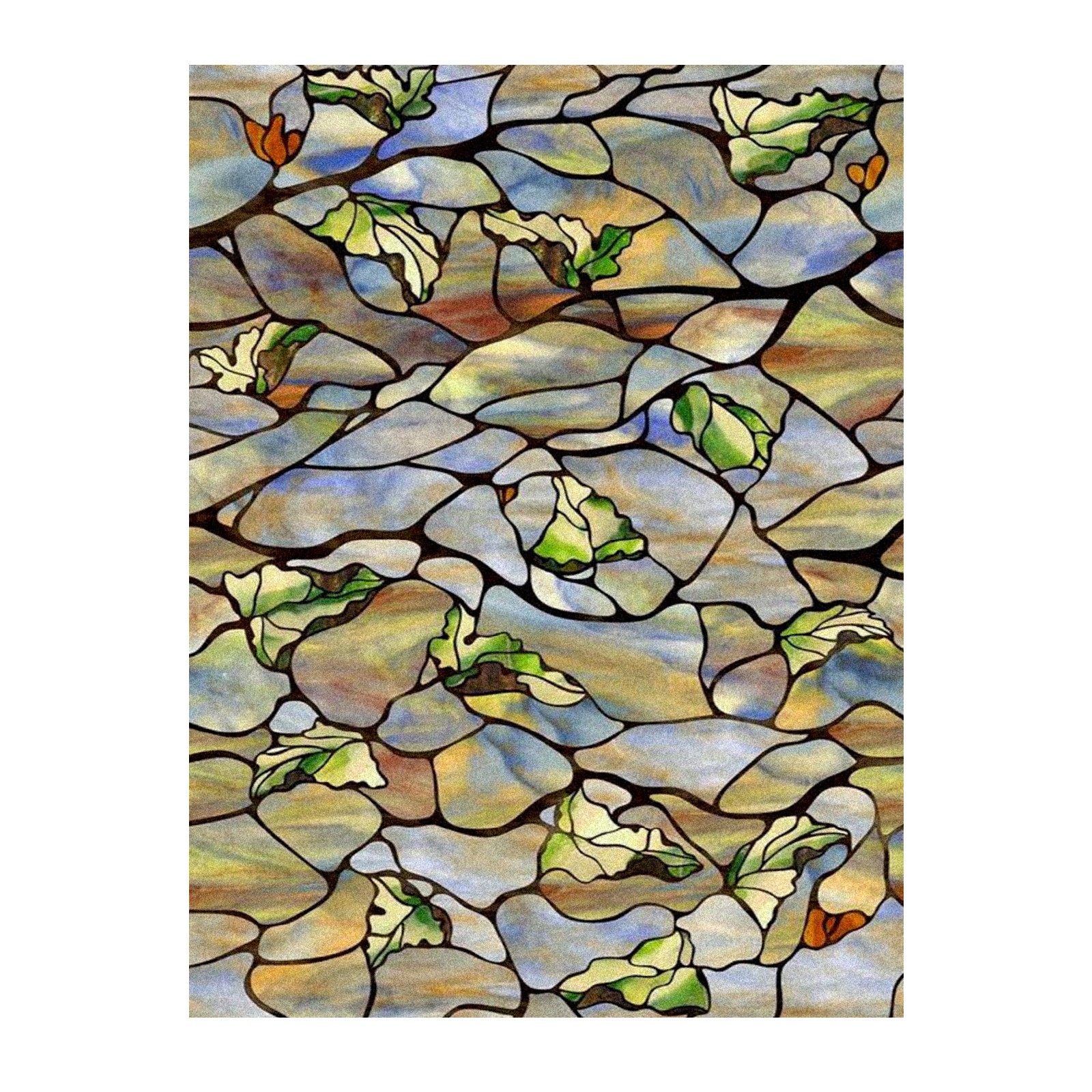 Frosted Glass Window Film Privacy Film Decorative Static Cling Window Film Stained Glass Decals for Bathroom Shower Door Non Adhesive Vintage Leaf Print (17.7x23.6in)