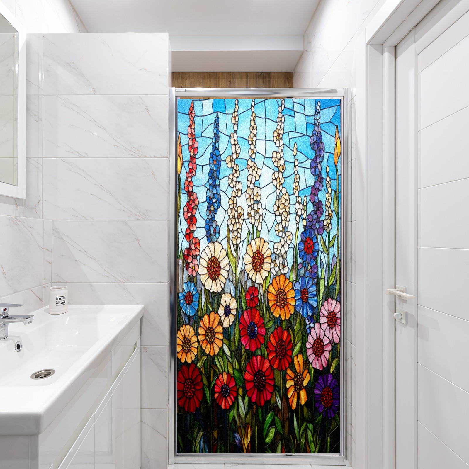 Frosted Glass Window Film Privacy Film Decorative Static Cling Window Film Stained Glass Decals for Bathroom Shower Door Non Adhesive Colorful Wildflowers (17.7x23.6in)