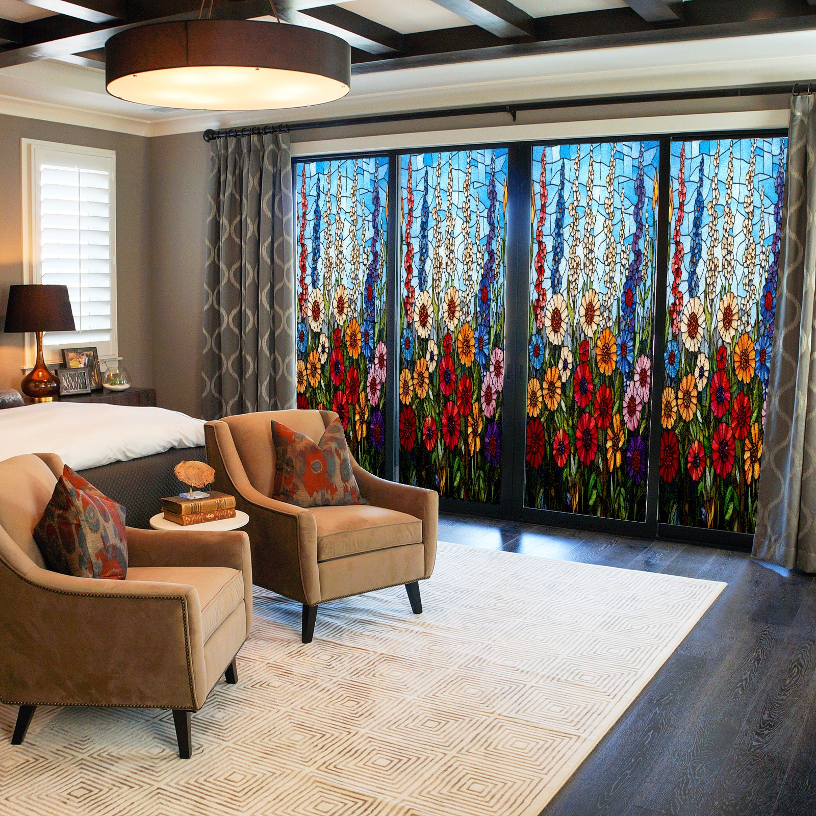 • <p>Our film is made of food-grade PET material, safe and odorless, mother and baby families can rest assured that the use of explosion-proof impact resistance more peace of mind. High-definition full-sheet printing, delicate pattern does not fade, easy to enhance the tone of the home, suitable for a variety of decorative styles. Single-sided frosted design, effective protection of privacy, clear view during the day, night anti-peeping without embarrassment. Electrostatic adsorption installation, glue-free without leaving marks, can be repeatedly adjusted for use. It can also block ultraviolet rays, sunscreen insulation, protect furniture from fading, energy saving and more comfortable!&nbsp;&nbsp;</p>