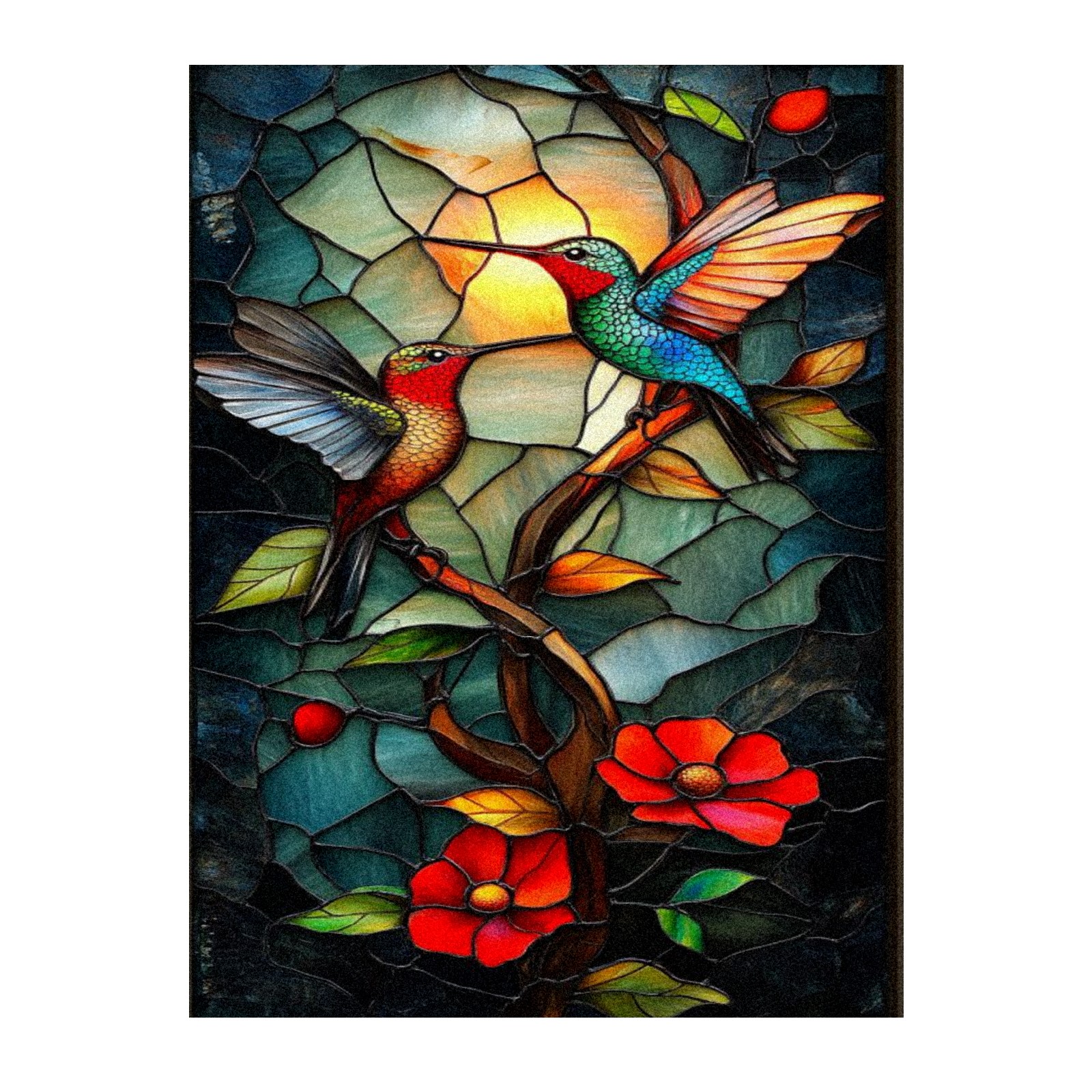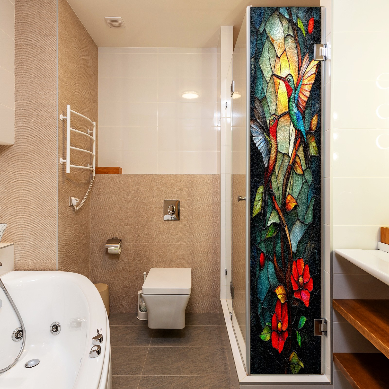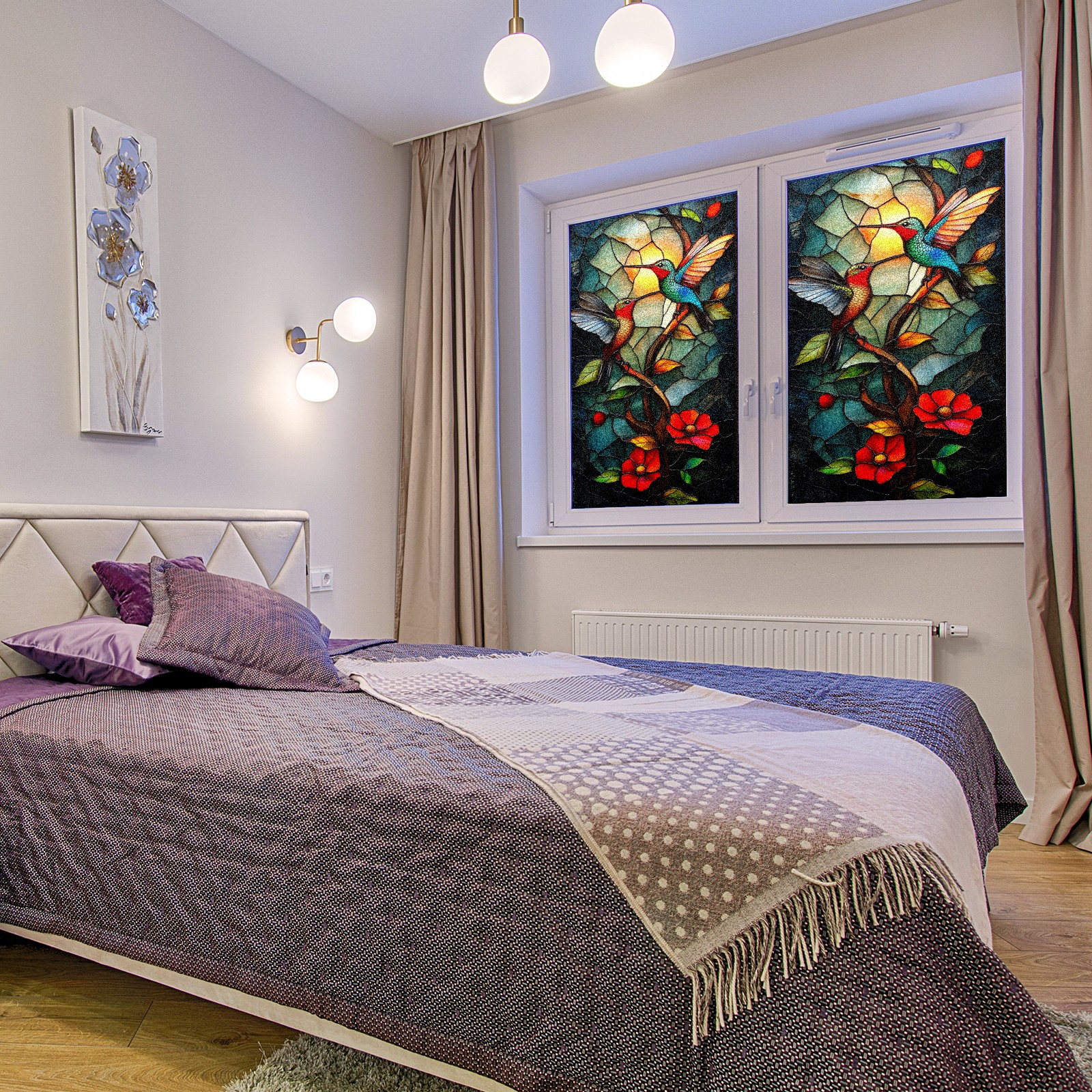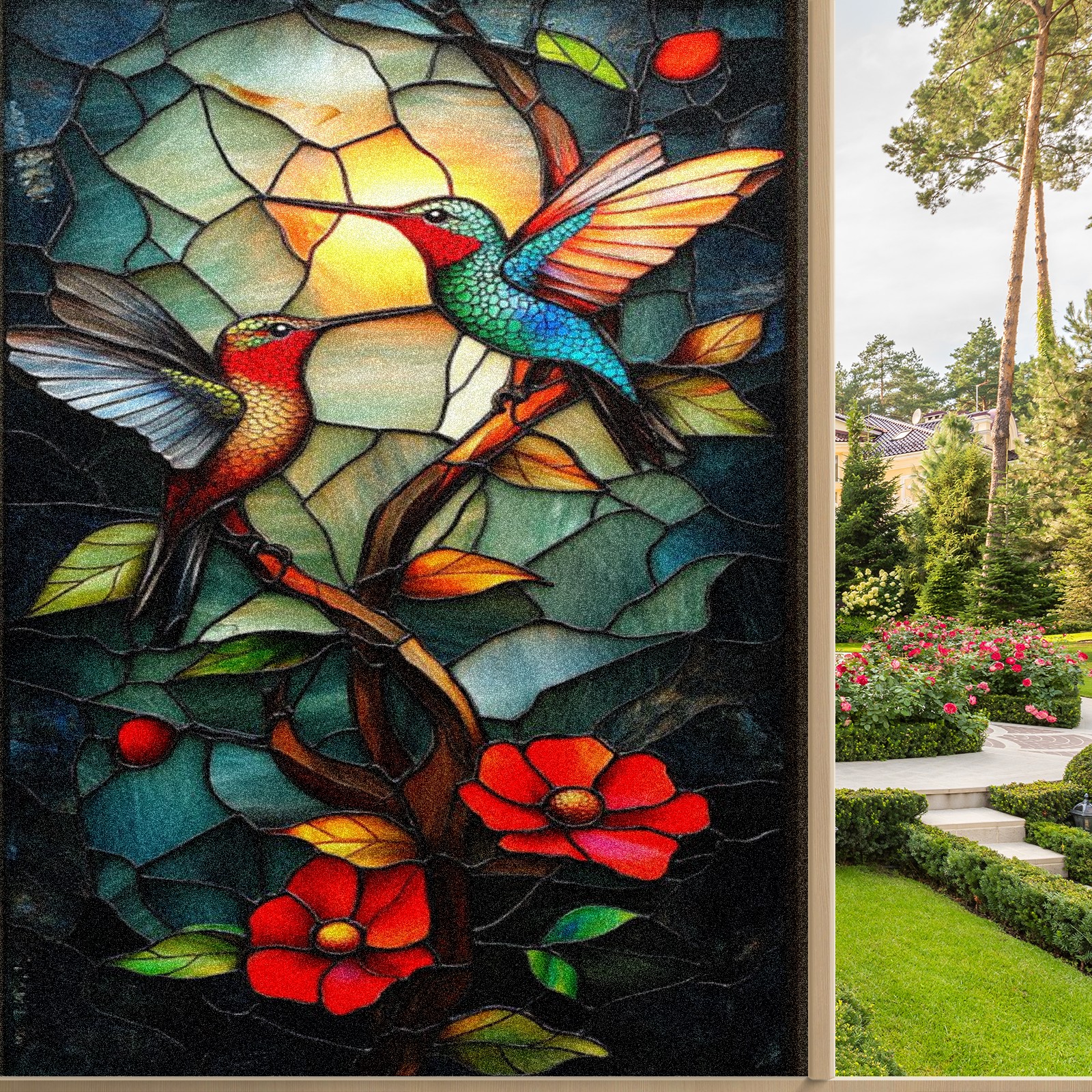 Frosted Glass Window Film Privacy Film Decorative Static Cling Window Film Stained Glass Decals for Bathroom Shower Door Non Adhesive Hummingbird Stained Glass (17.7x23.6in)