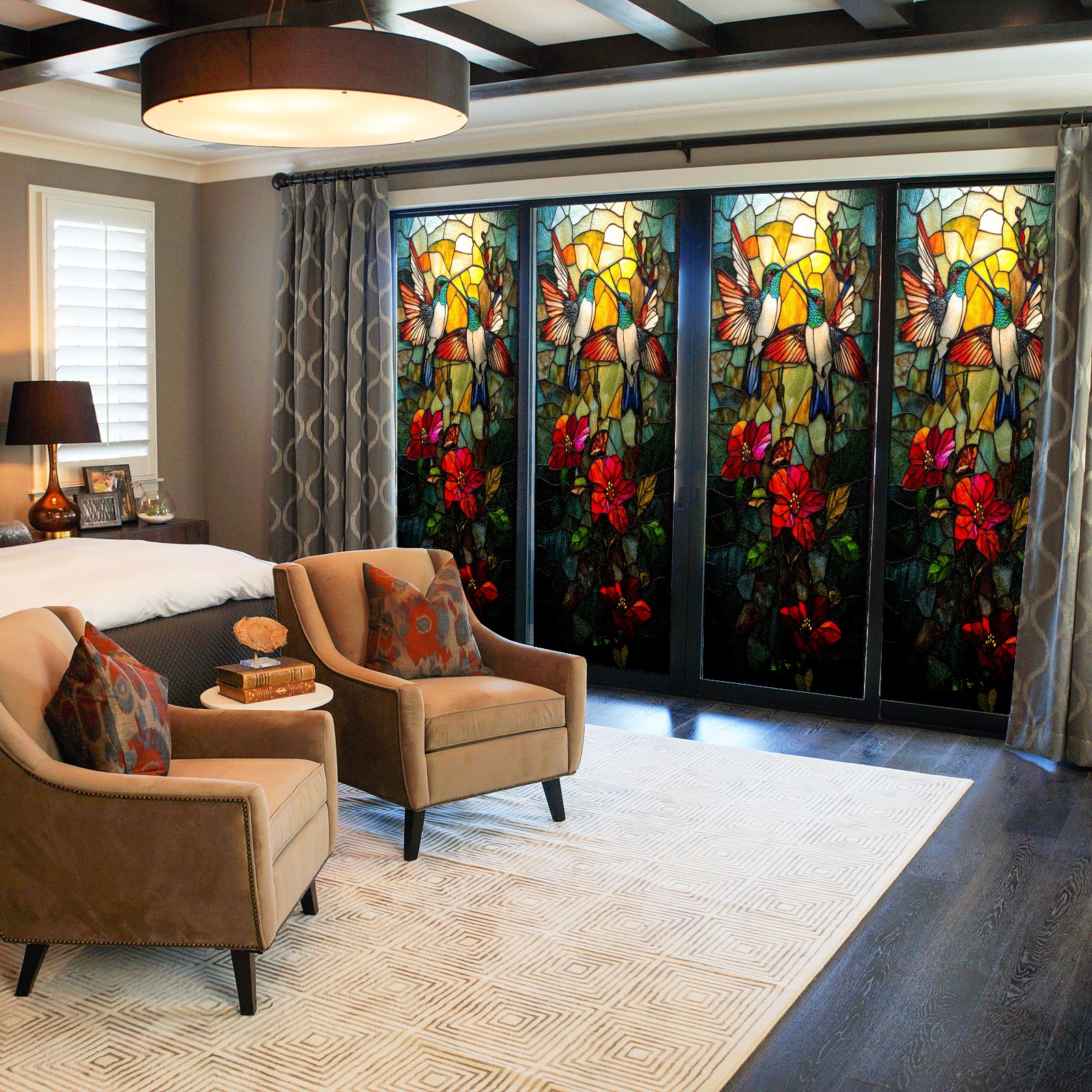 <p>Our film is made of food-grade PET material, safe and odorless, mother and baby families can rest assured that the use of explosion-proof impact resistance more peace of mind. High-definition full-sheet printing, delicate pattern does not fade, easy to enhance the tone of the home, suitable for a variety of decorative styles. Single-sided frosted design, effective protection of privacy, clear view during the day, night anti-peeping without embarrassment. Electrostatic adsorption installation, glue-free without leaving marks, can be repeatedly adjusted for use. It can also block ultraviolet rays, sunscreen insulation, protect furniture from fading, energy saving and more comfortable!&nbsp;&nbsp;</p>