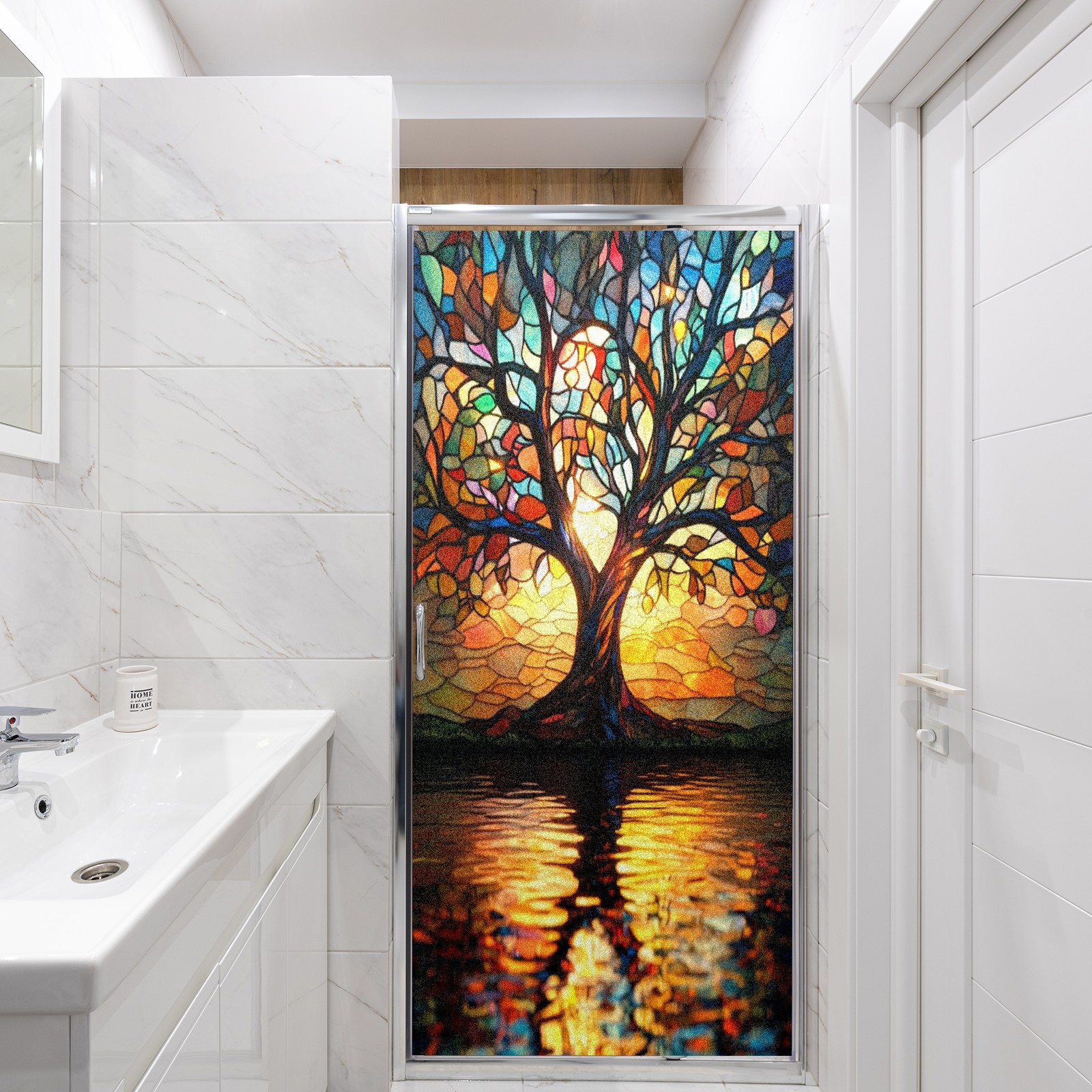 Frosted Glass Window Film Privacy Film Decorative Static Cling Window Film Stained Glass Decals for Bathroom Shower Door Non Adhesive Stained Glass Tree (17.7x23.6in)