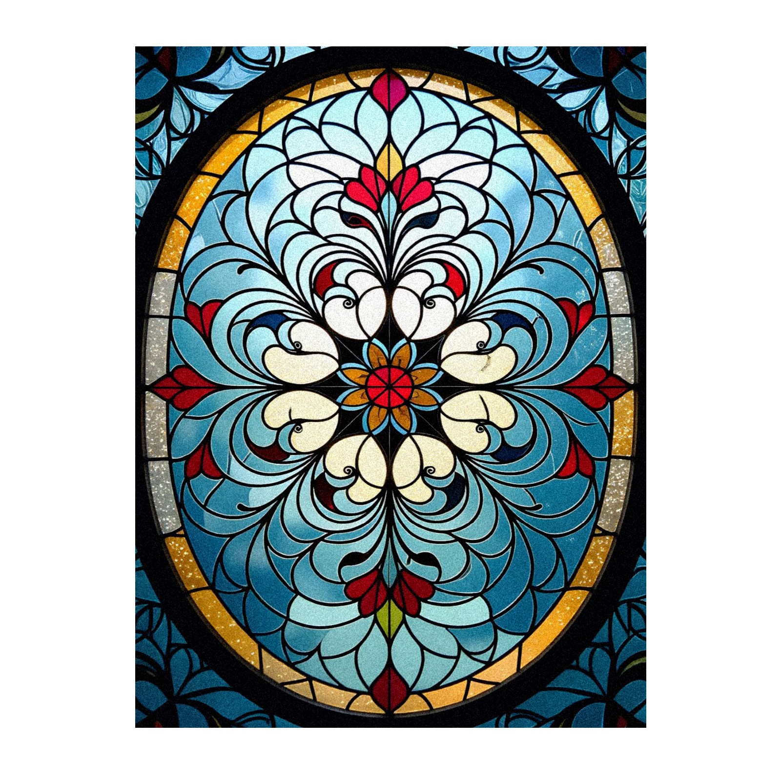 Frosted Glass Window Film Privacy Film Decorative Static Cling Window Film Stained Glass Decals for Bathroom Shower Door Non Adhesive Vintage Blue Colorful Flower (17.7x23.6in)