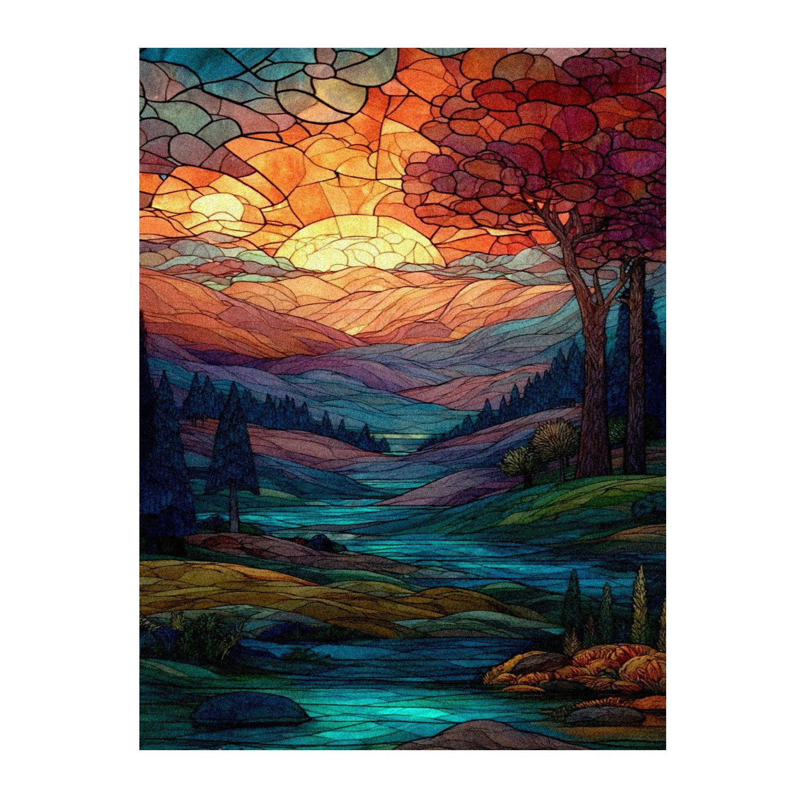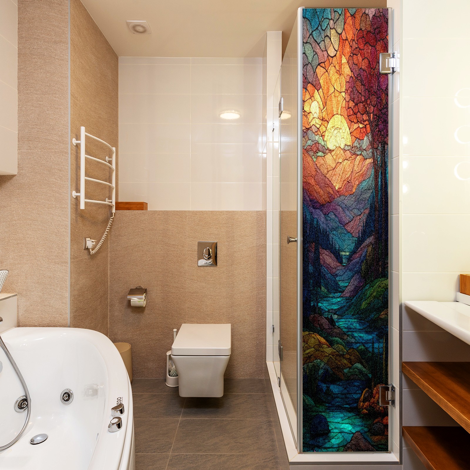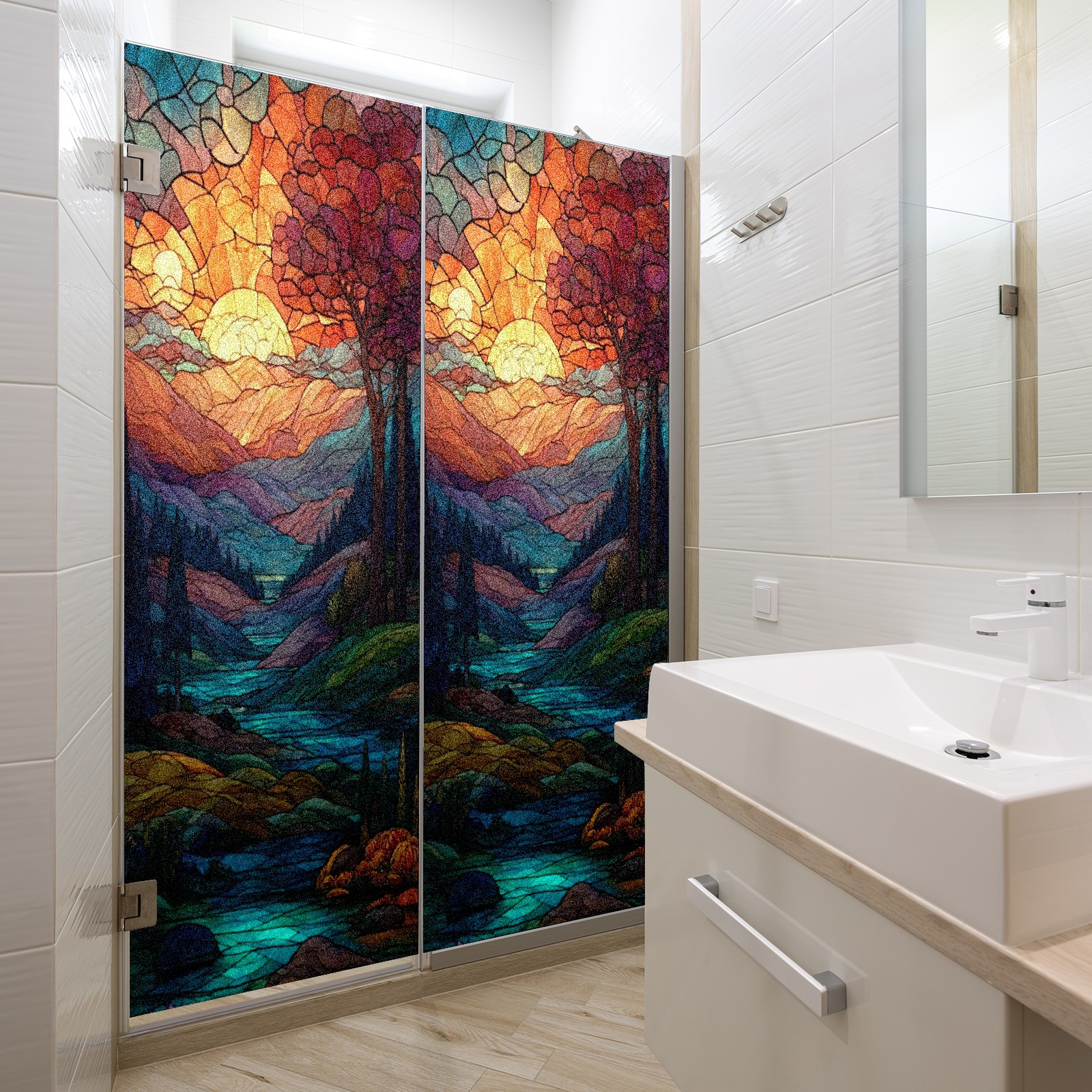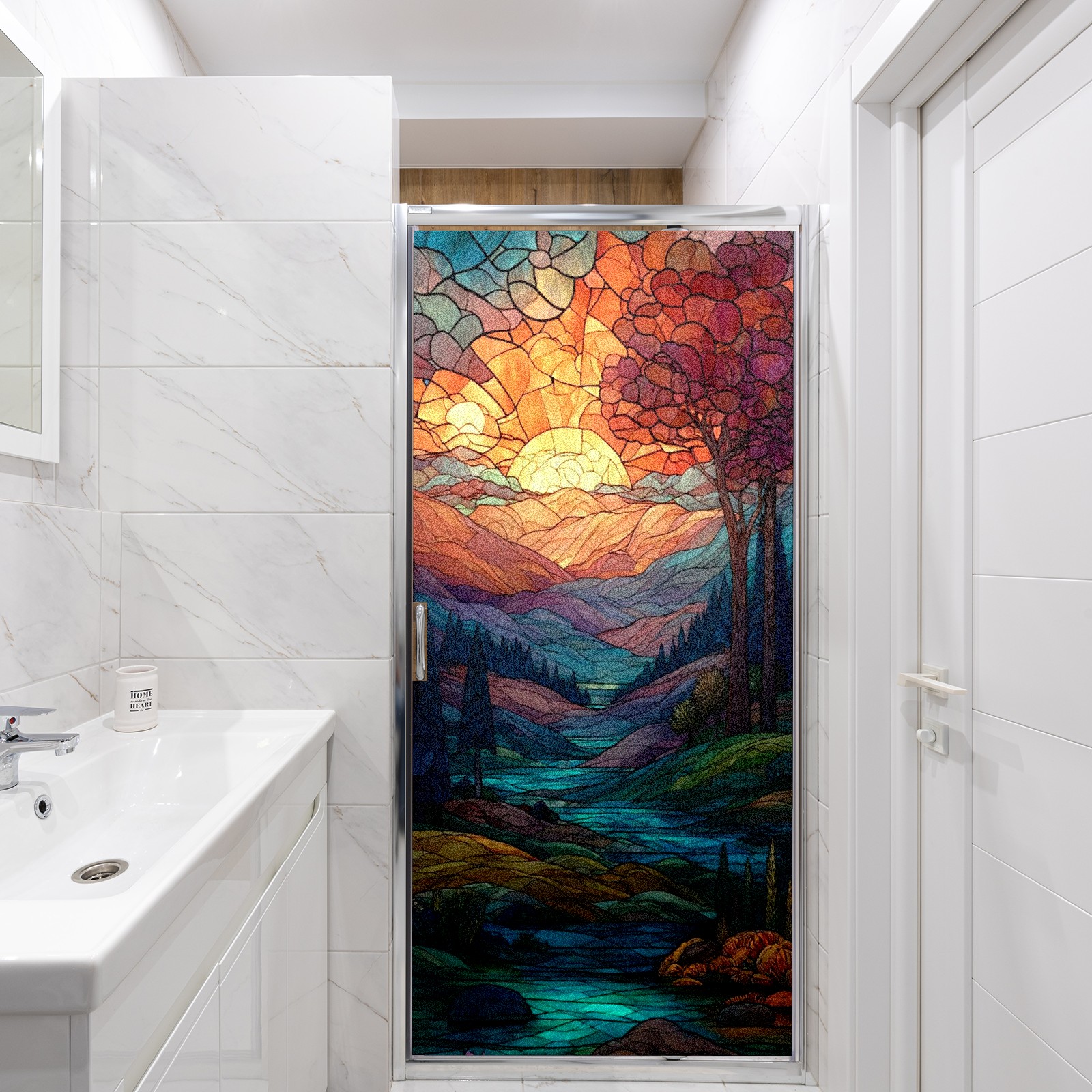 Frosted Glass Window Film Privacy Film Decorative Static Cling Window Film Stained Glass Decals for Bathroom Shower Door Non Adhesive Sunset Mountain (17.7x23.6in)