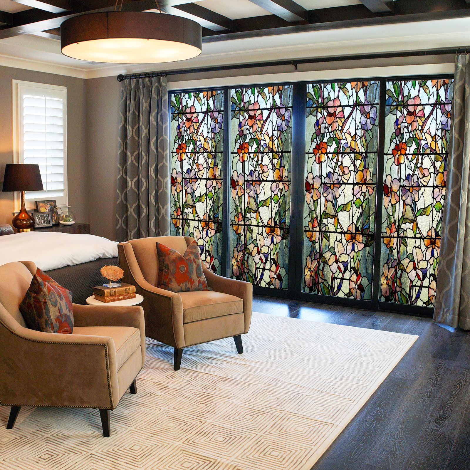 • <p>Our film is made of food-grade PET material, safe and odorless, mother and baby families can rest assured that the use of explosion-proof impact resistance more peace of mind. High-definition full-sheet printing, delicate pattern does not fade, easy to enhance the tone of the home, suitable for a variety of decorative styles. Single-sided frosted design, effective protection of privacy, clear view during the day, night anti-peeping without embarrassment. Electrostatic adsorption installation, glue-free without leaving marks, can be repeatedly adjusted for use. It can also block ultraviolet rays, sunscreen insulation, protect furniture from fading, energy saving and more comfortable!&nbsp;&nbsp;</p>