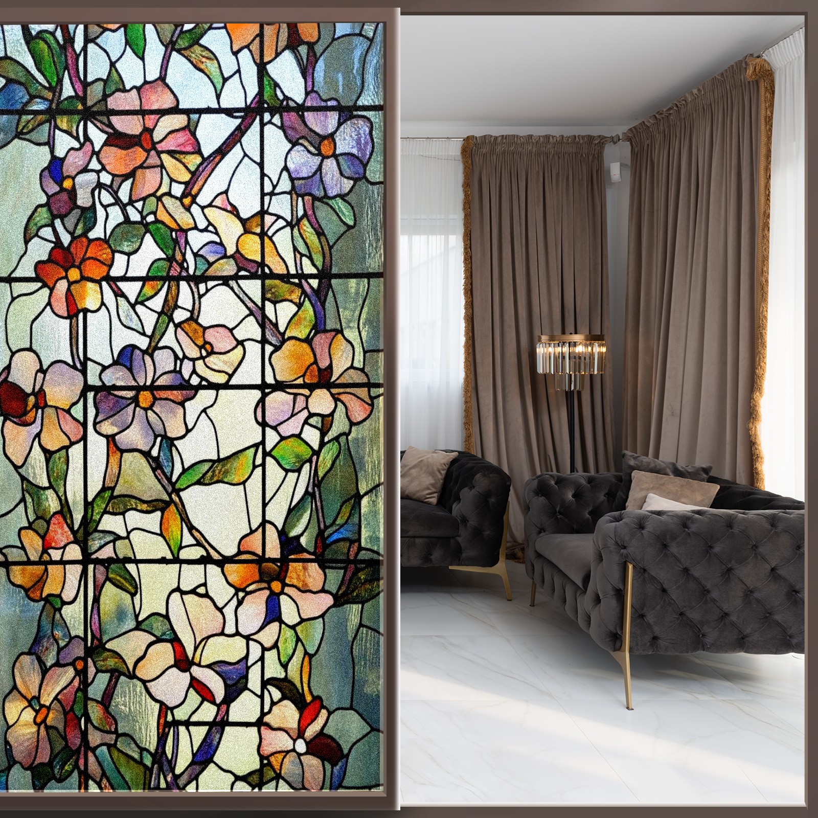<p>Our film is made of food-grade PET material, safe and odorless, mother and baby families can rest assured that the use of explosion-proof impact resistance more peace of mind. High-definition full-sheet printing, delicate pattern does not fade, easy to enhance the tone of the home, suitable for a variety of decorative styles. Single-sided frosted design, effective protection of privacy, clear view during the day, night anti-peeping without embarrassment. Electrostatic adsorption installation, glue-free without leaving marks, can be repeatedly adjusted for use. It can also block ultraviolet rays, sunscreen insulation, protect furniture from fading, energy saving and more comfortable!&nbsp;&nbsp;</p>
