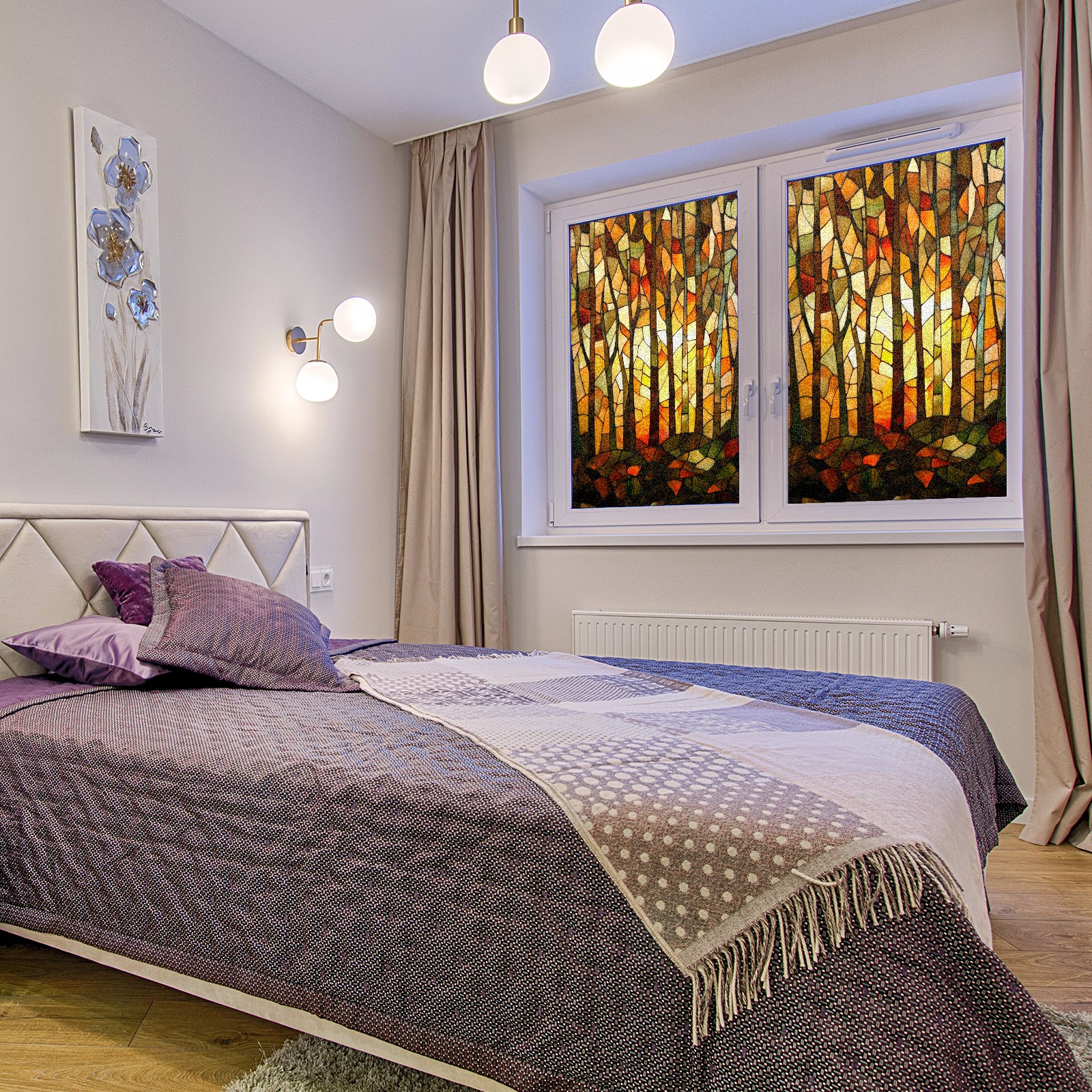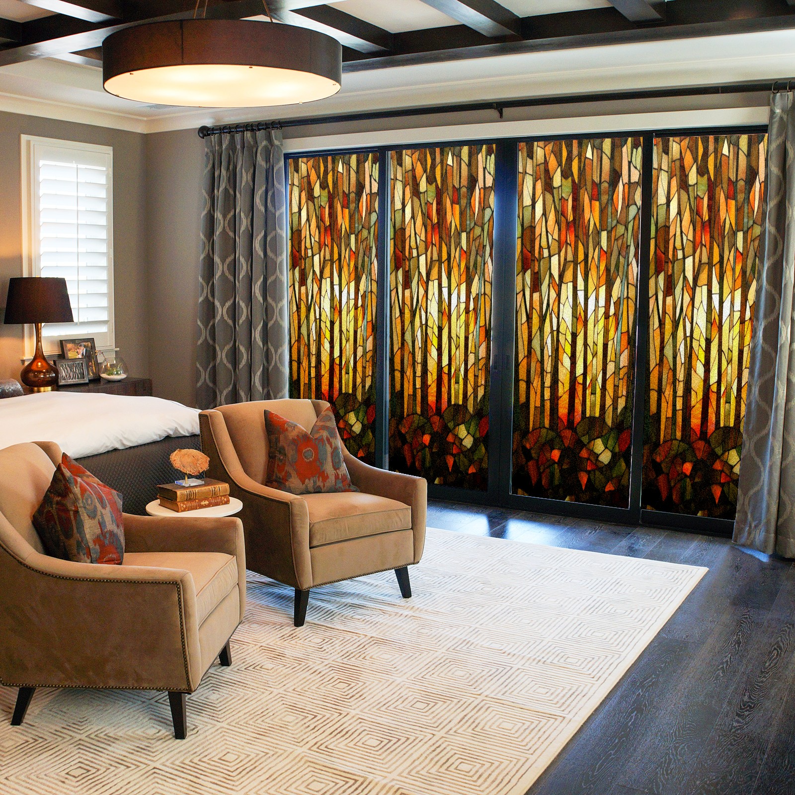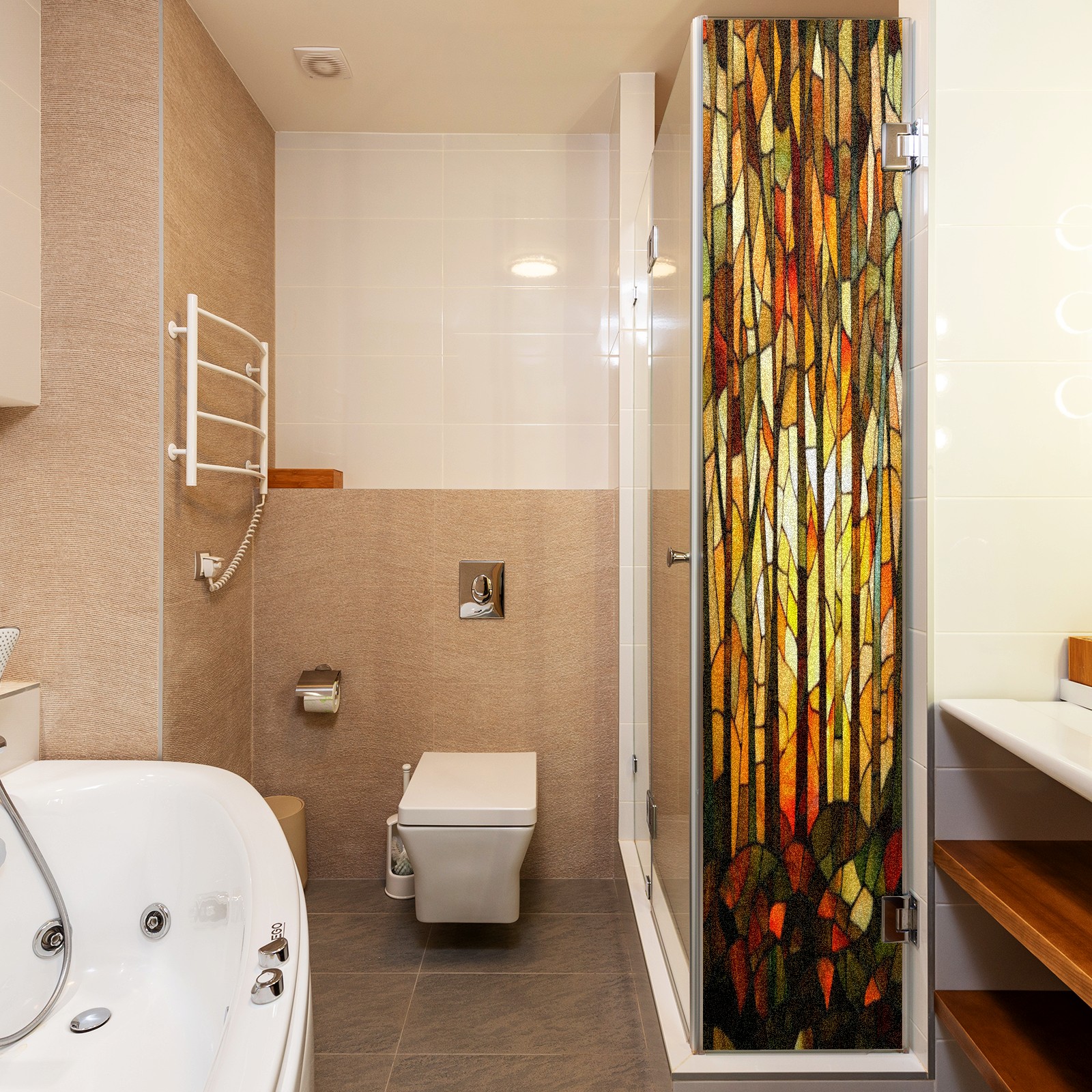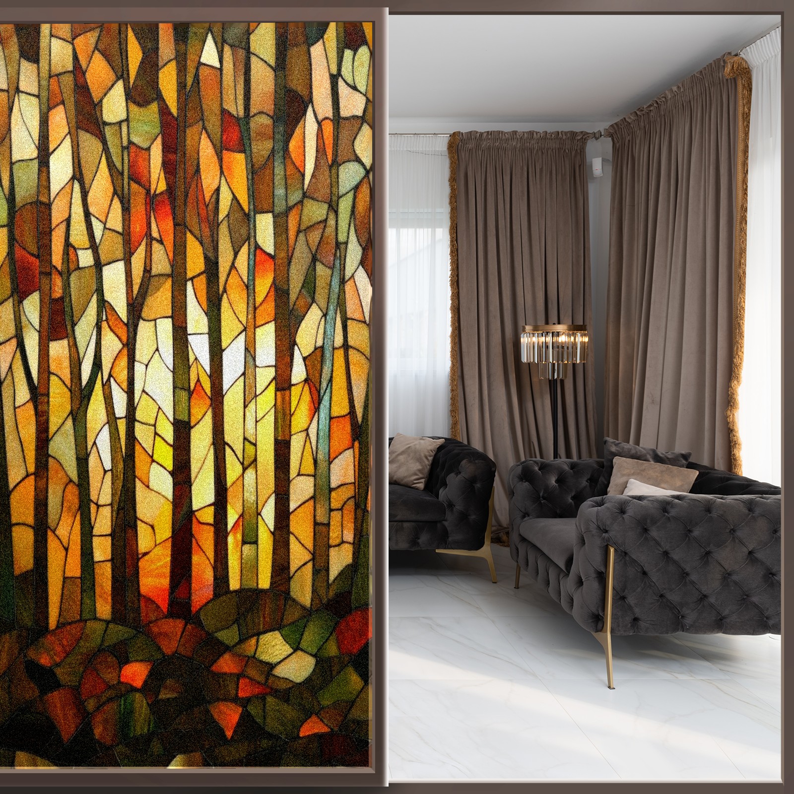 Frosted Glass Window Film Privacy Film Decorative Static Cling Window Film Stained Glass Decals for Bathroom Shower Door Non Adhesive Sunset Forest (17.7x23.6in)