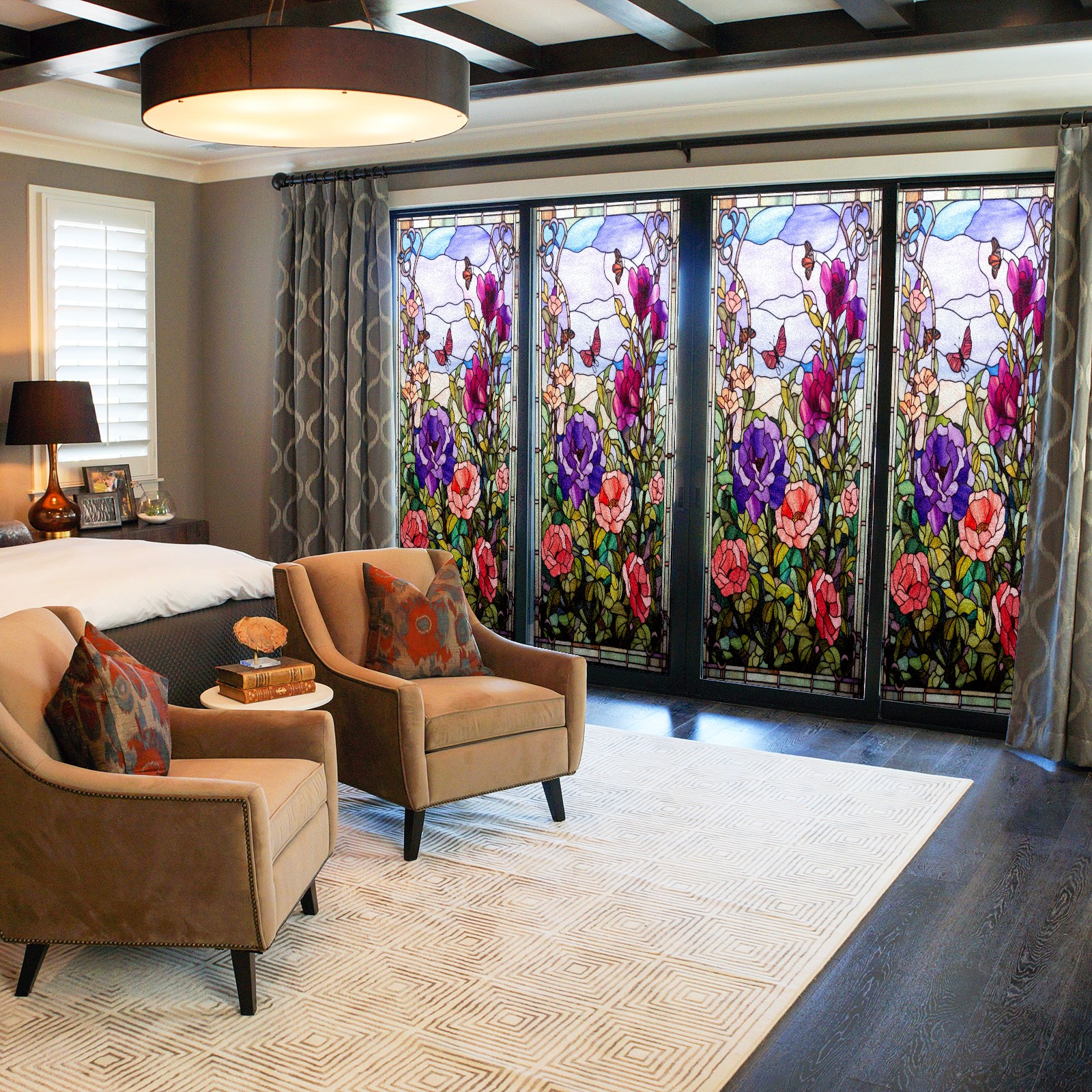 • <p>Our film is made of food-grade PET material, safe and odorless, mother and baby families can rest assured that the use of explosion-proof impact resistance more peace of mind. High-definition full-sheet printing, delicate pattern does not fade, easy to enhance the tone of the home, suitable for a variety of decorative styles. Single-sided frosted design, effective protection of privacy, clear view during the day, night anti-peeping without embarrassment. Electrostatic adsorption installation, glue-free without leaving marks, can be repeatedly adjusted for use. It can also block ultraviolet rays, sunscreen insulation, protect furniture from fading, energy saving and more comfortable!&nbsp;&nbsp;</p>