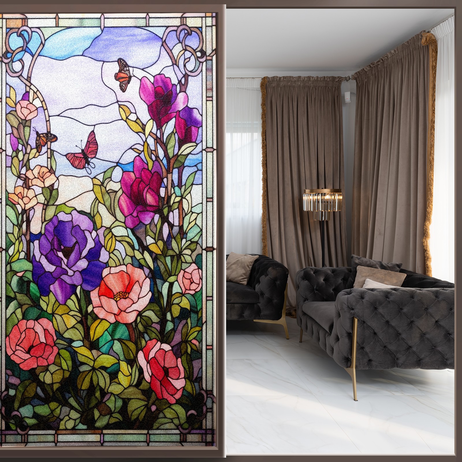 <p>Our film is made of food-grade PET material, safe and odorless, mother and baby families can rest assured that the use of explosion-proof impact resistance more peace of mind. High-definition full-sheet printing, delicate pattern does not fade, easy to enhance the tone of the home, suitable for a variety of decorative styles. Single-sided frosted design, effective protection of privacy, clear view during the day, night anti-peeping without embarrassment. Electrostatic adsorption installation, glue-free without leaving marks, can be repeatedly adjusted for use. It can also block ultraviolet rays, sunscreen insulation, protect furniture from fading, energy saving and more comfortable!&nbsp;&nbsp;</p>
