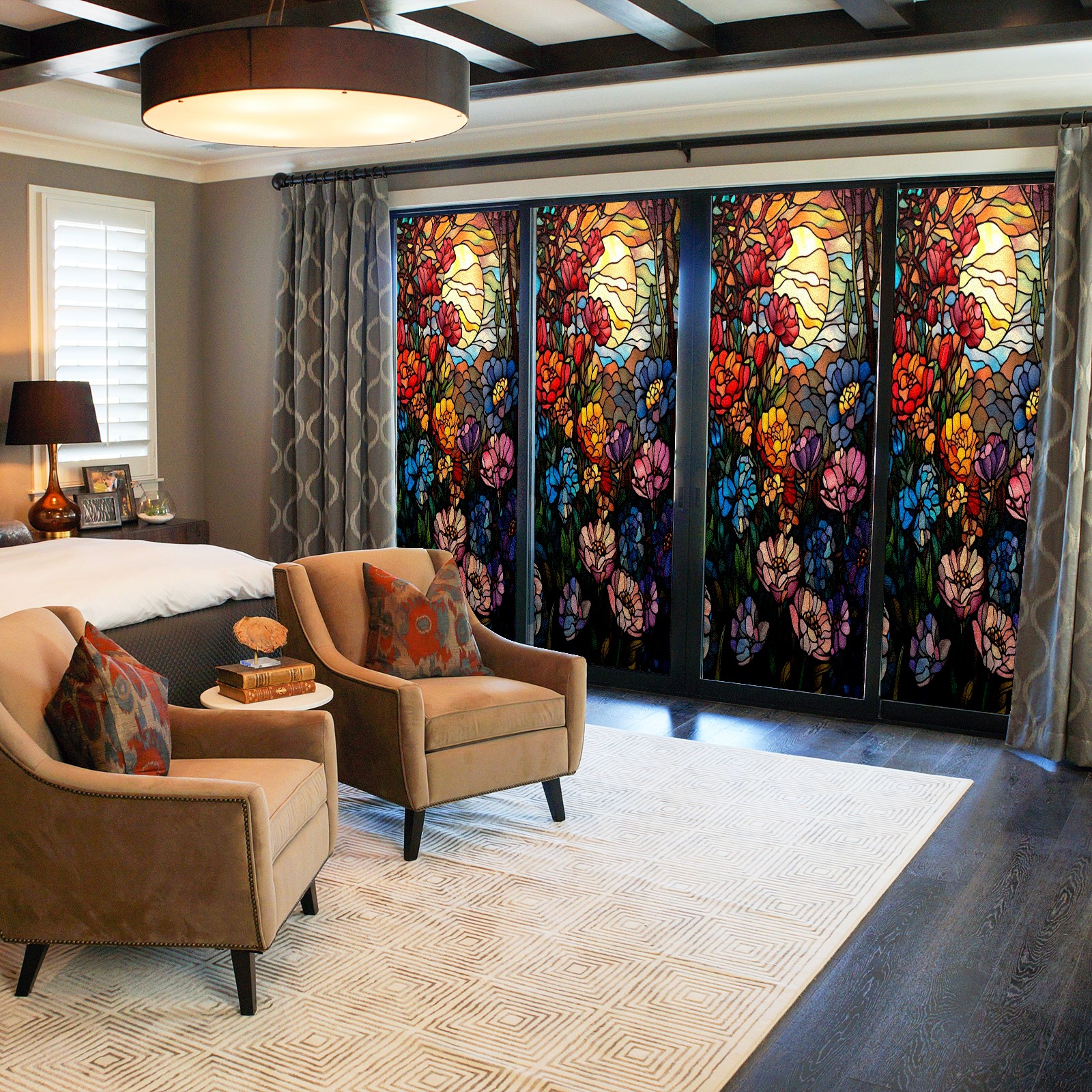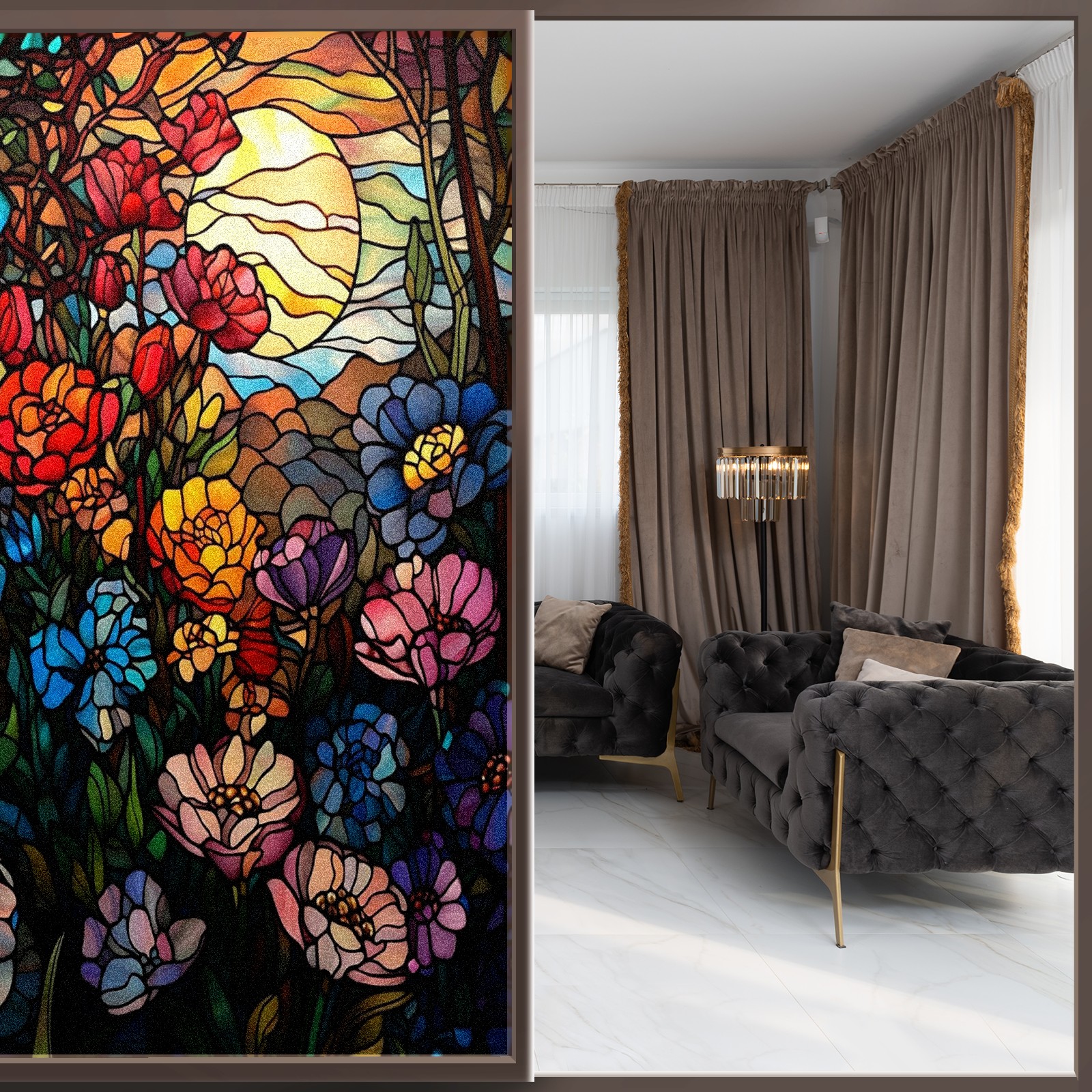 <p>Our film is made of food-grade PET material, safe and odorless, mother and baby families can rest assured that the use of explosion-proof impact resistance more peace of mind. High-definition full-sheet printing, delicate pattern does not fade, easy to enhance the tone of the home, suitable for a variety of decorative styles. Single-sided frosted design, effective protection of privacy, clear view during the day, night anti-peeping without embarrassment. Electrostatic adsorption installation, glue-free without leaving marks, can be repeatedly adjusted for use. It can also block ultraviolet rays, sunscreen insulation, protect furniture from fading, energy saving and more comfortable!&nbsp;&nbsp;</p>