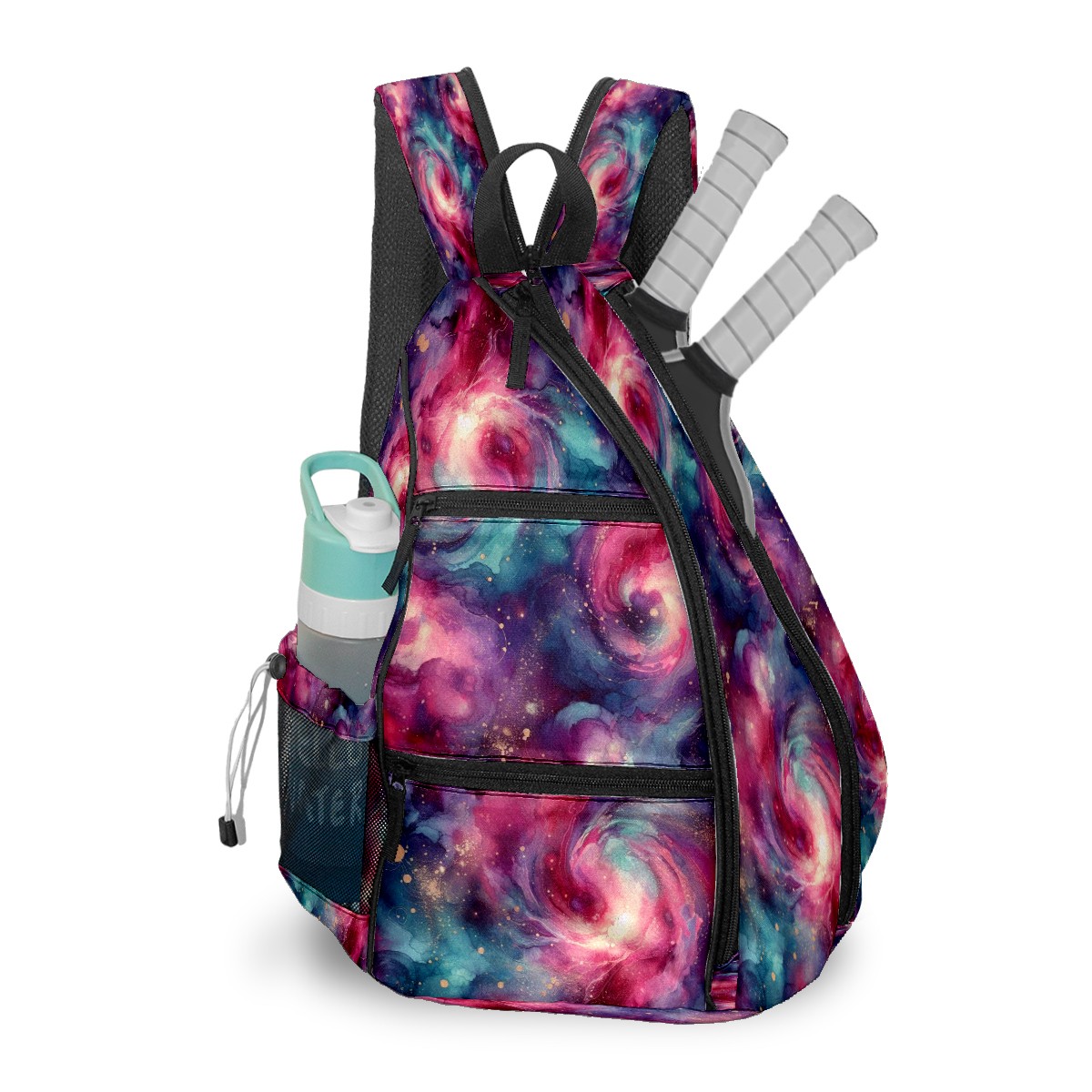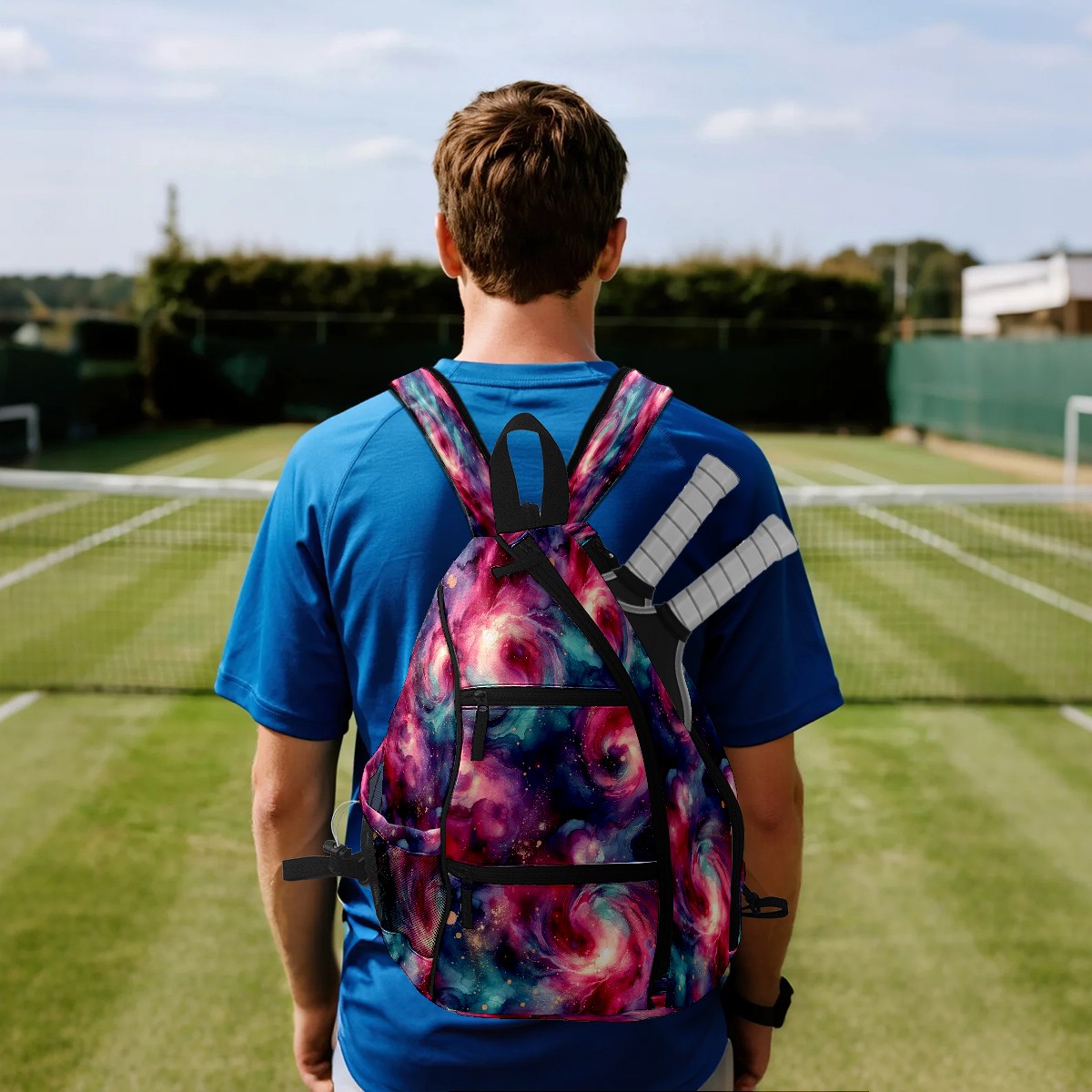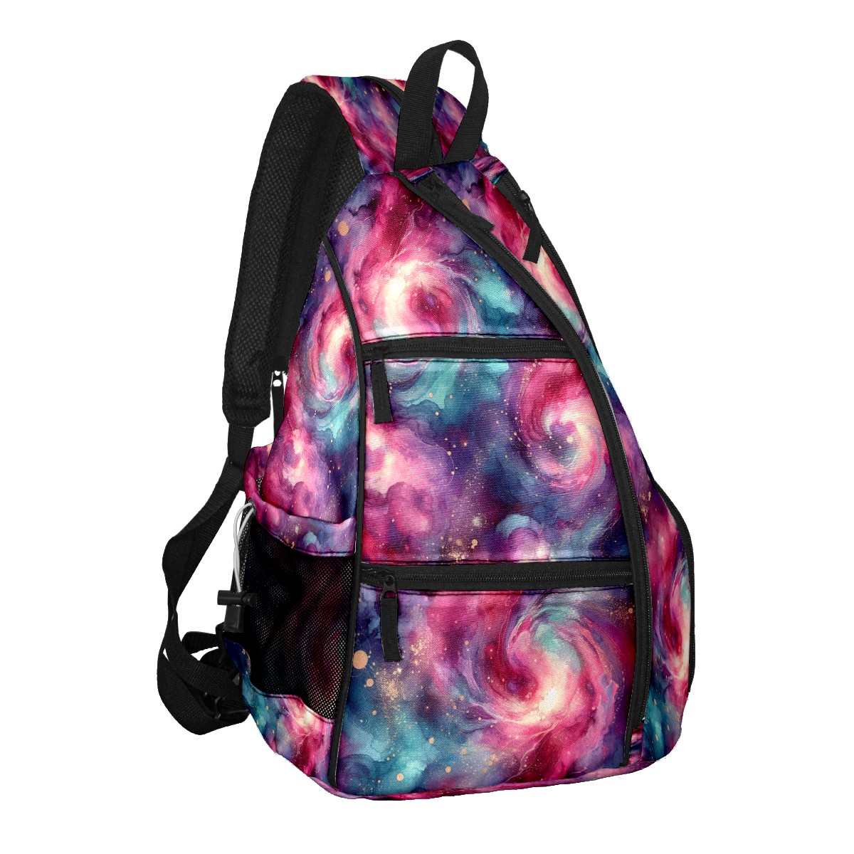 Pickleball Bag with Padded Back, Pink Nebula Multi-Compartment Paddle Backpack, Lightweight Nylon Sports Bag for Men & Women