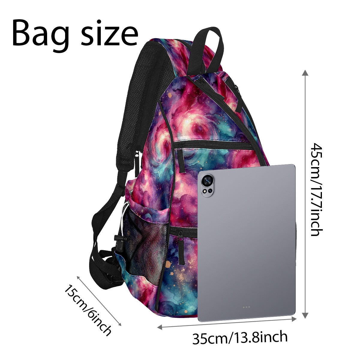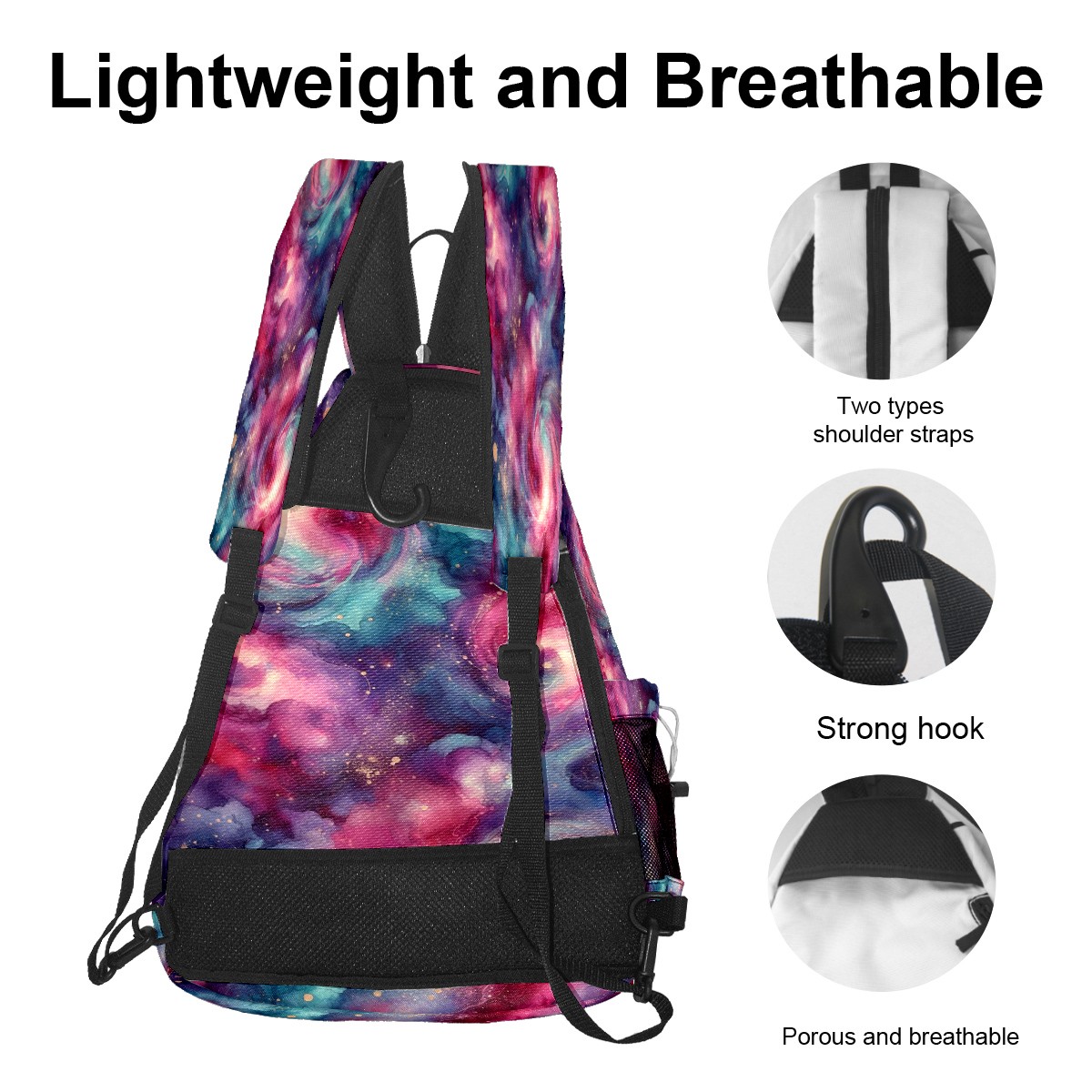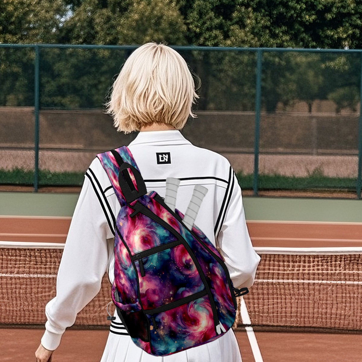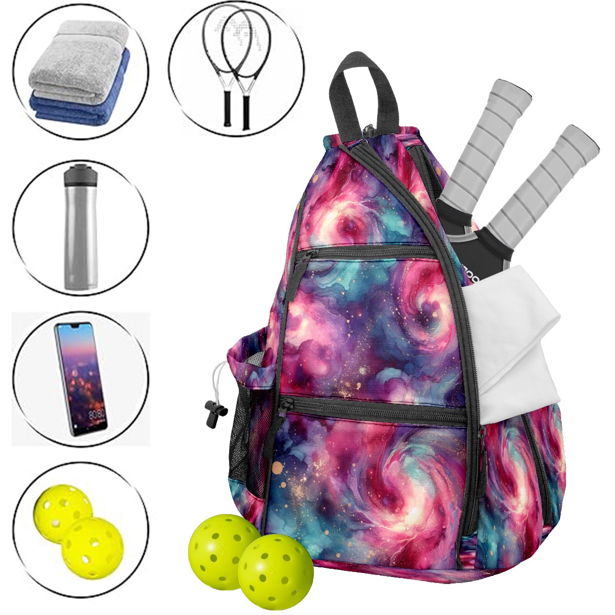 Pickleball Bag with Padded Back, Pink Nebula Multi-Compartment Paddle Backpack, Lightweight Nylon Sports Bag for Men & Women