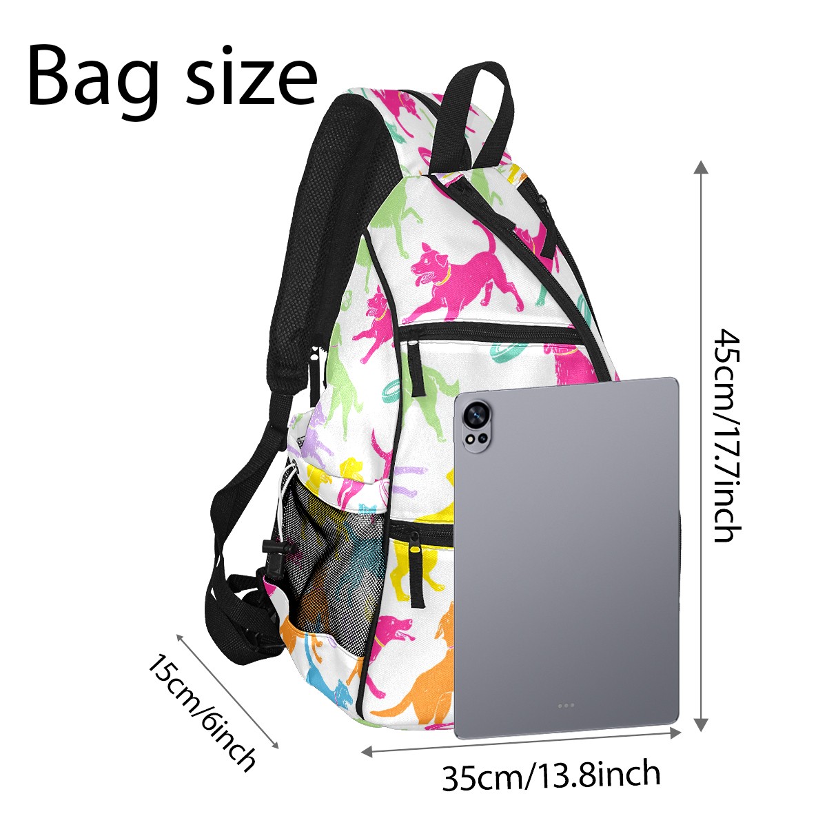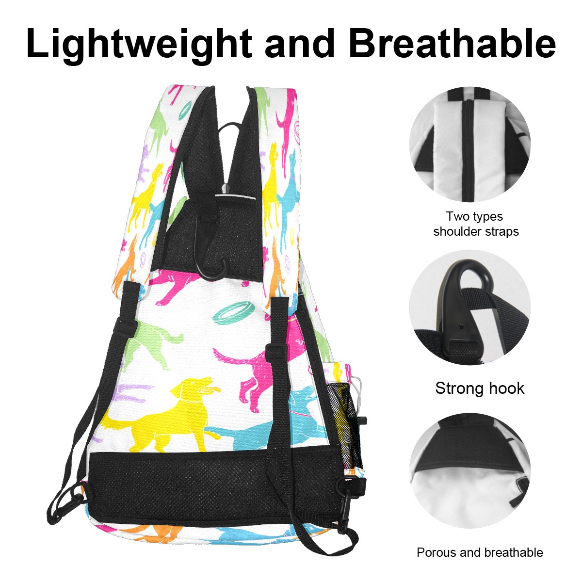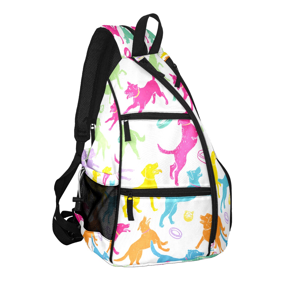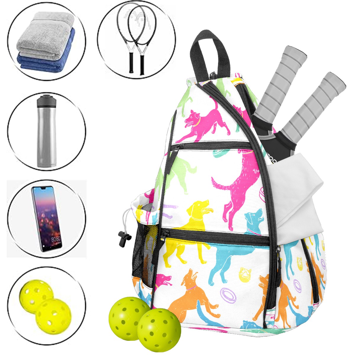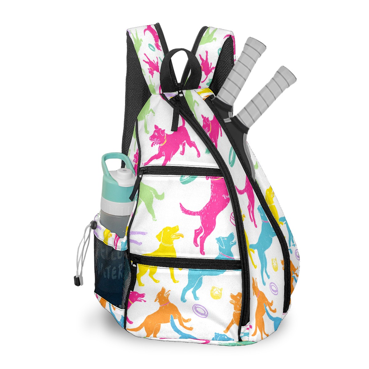 Pickleball Bag with Padded Back, Colorful Dogs Toys Multi-Compartment Paddle Backpack, Lightweight Nylon Sports Bag for Men & Women