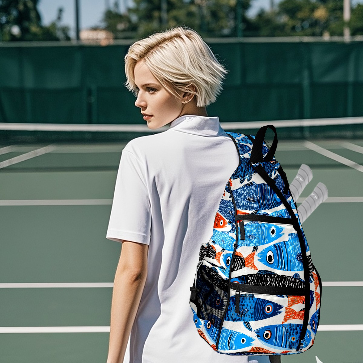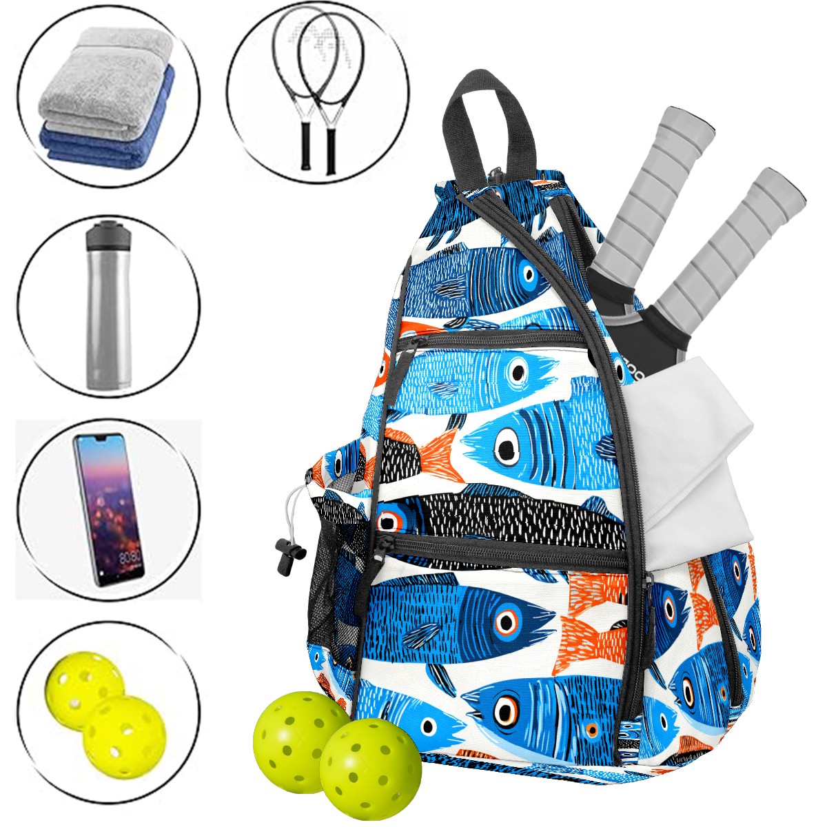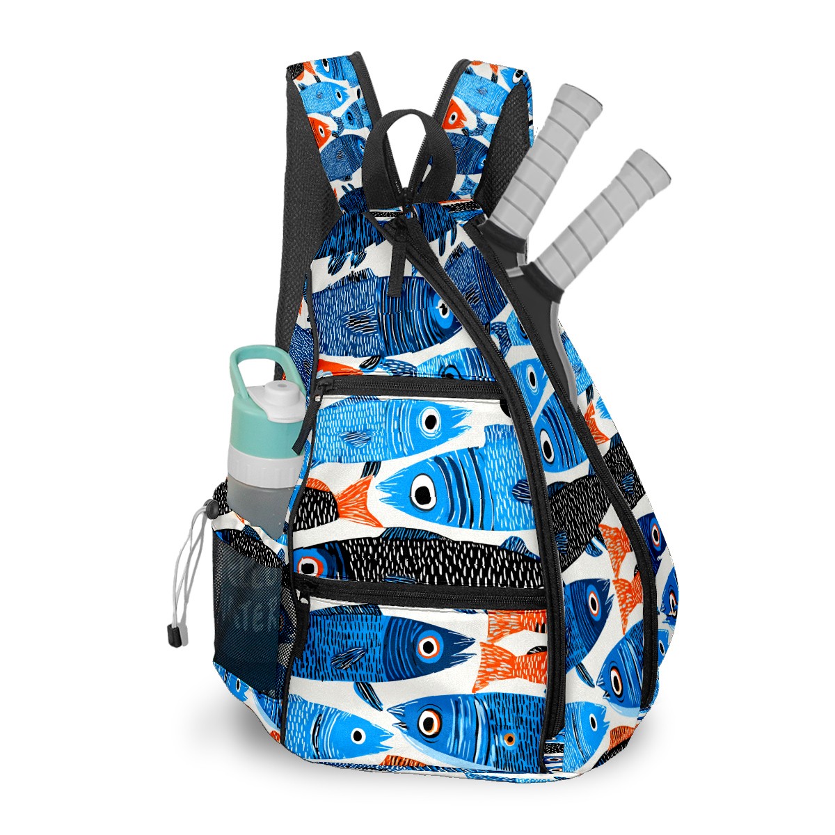 Pickleball Bag with Padded Back, Multicolor Fish School Multi-Compartment Paddle Backpack, Lightweight Nylon Sports Bag for Men & Women