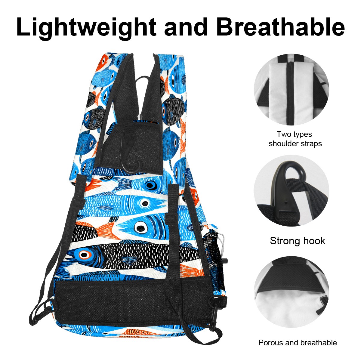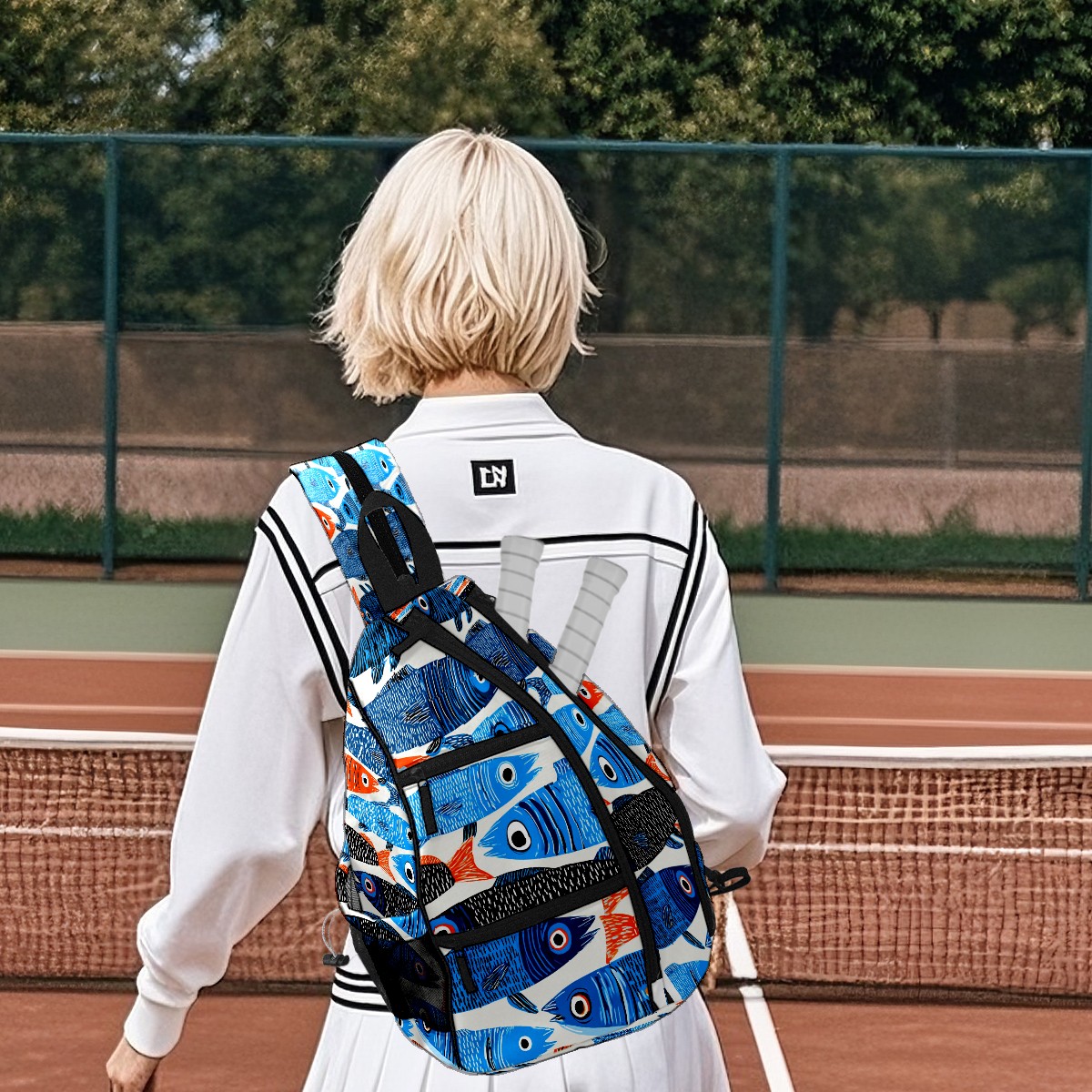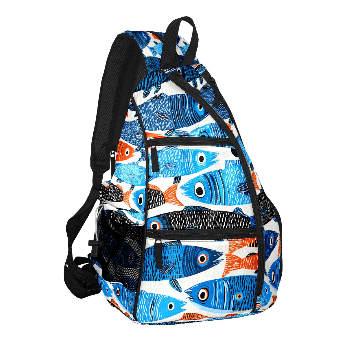Pickleball Bag with Padded Back, Multicolor Fish School Multi-Compartment Paddle Backpack, Lightweight Nylon Sports Bag for Men & Women
