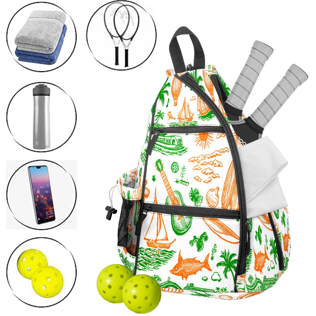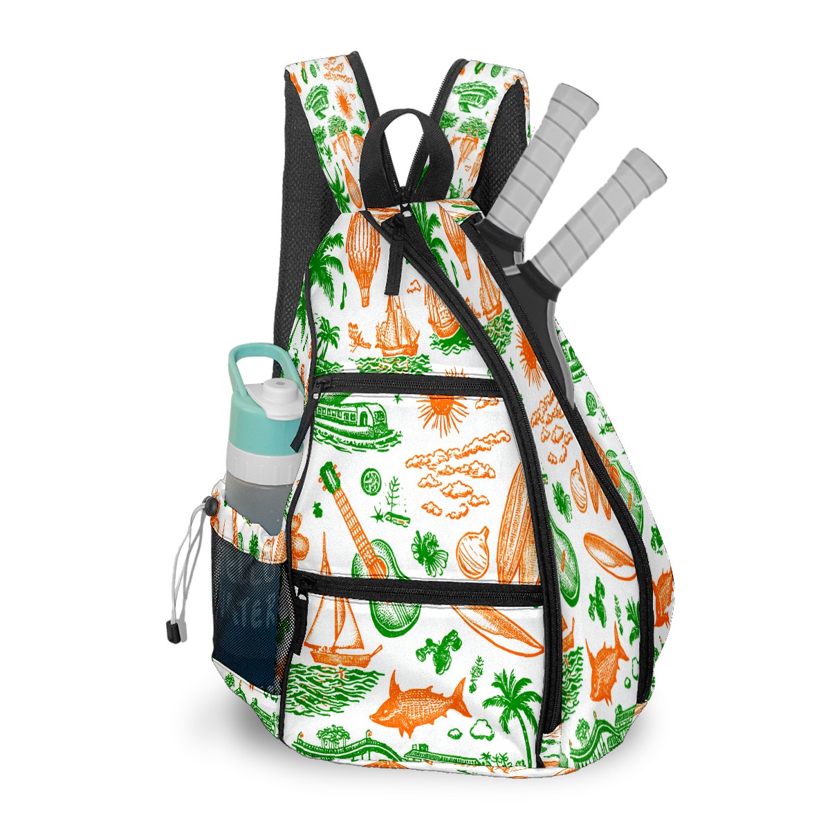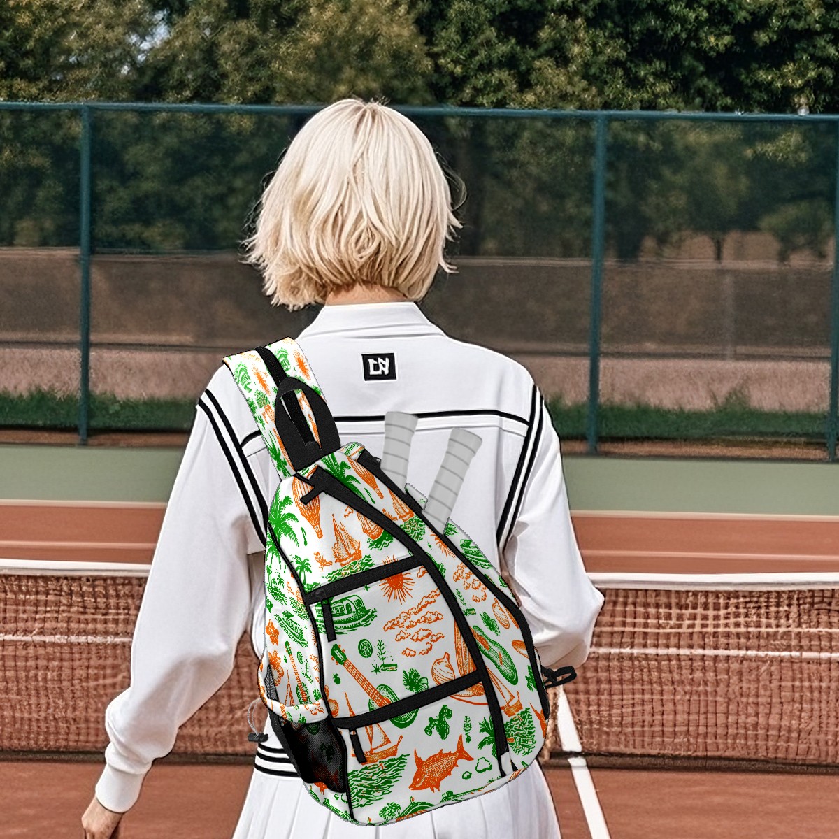 Pickleball Bag with Padded Back, Green Background Summer Elements Multi-Compartment Paddle Backpack, Lightweight Nylon Sports Bag for Men & Women