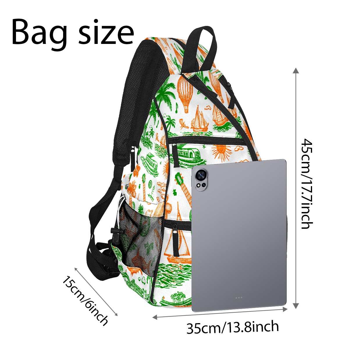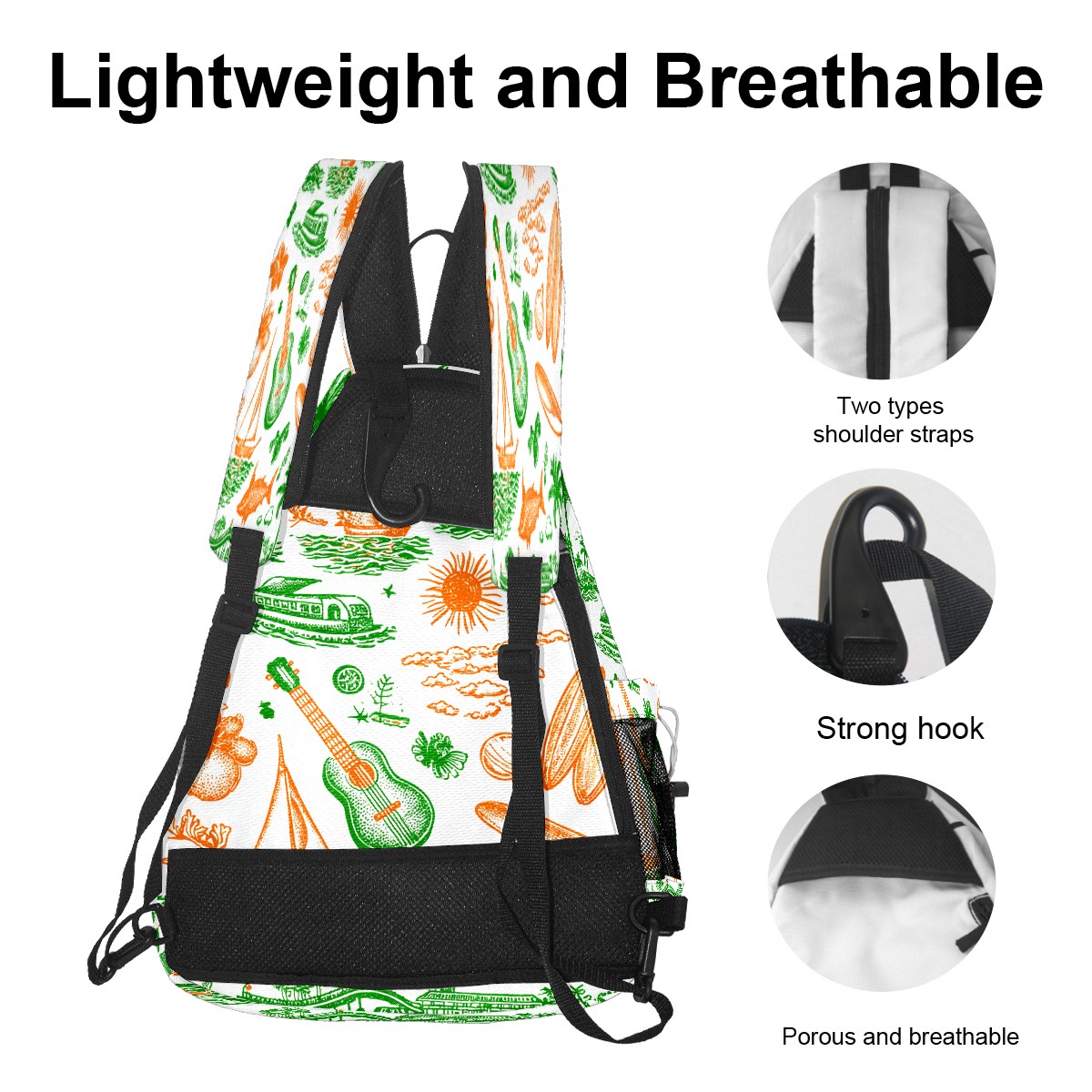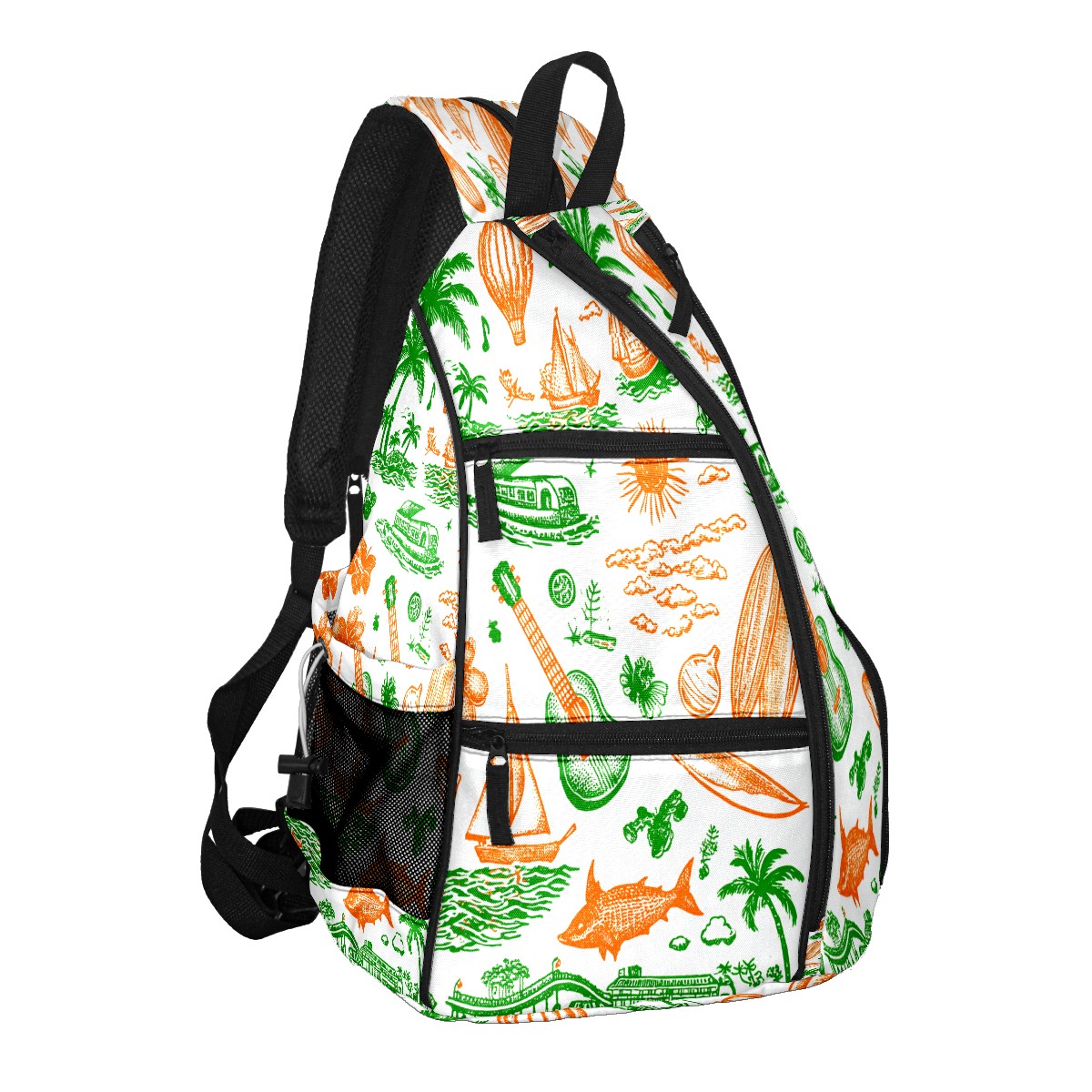Pickleball Bag with Padded Back, Green Background Summer Elements Multi-Compartment Paddle Backpack, Lightweight Nylon Sports Bag for Men & Women