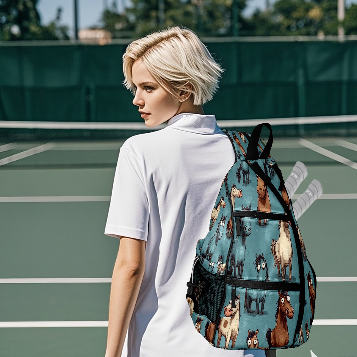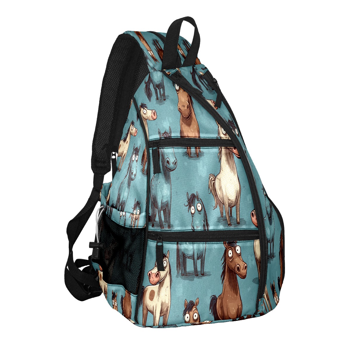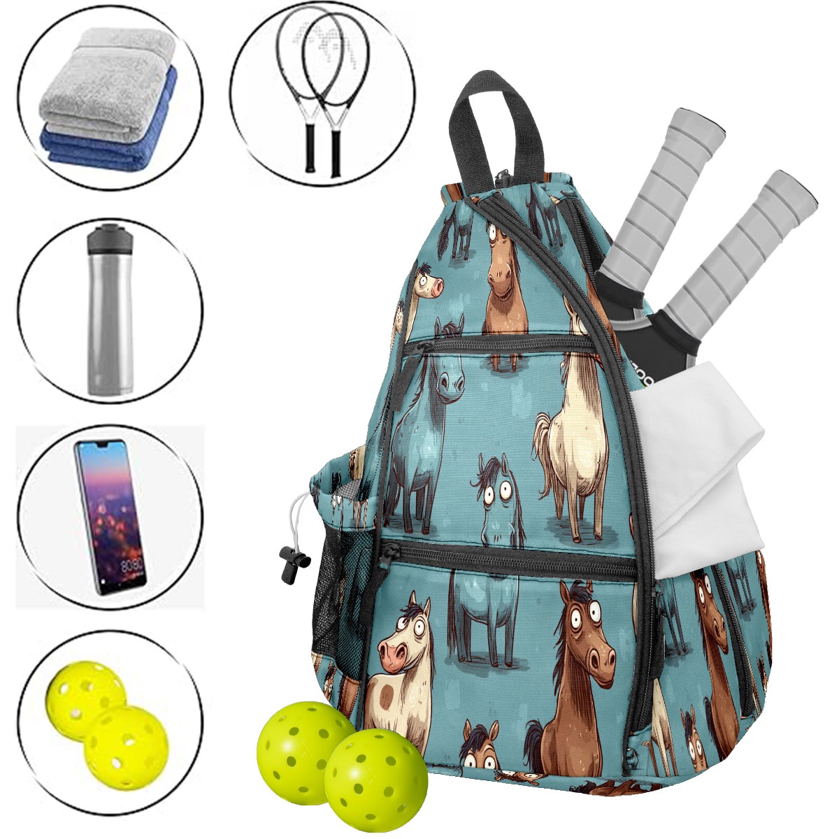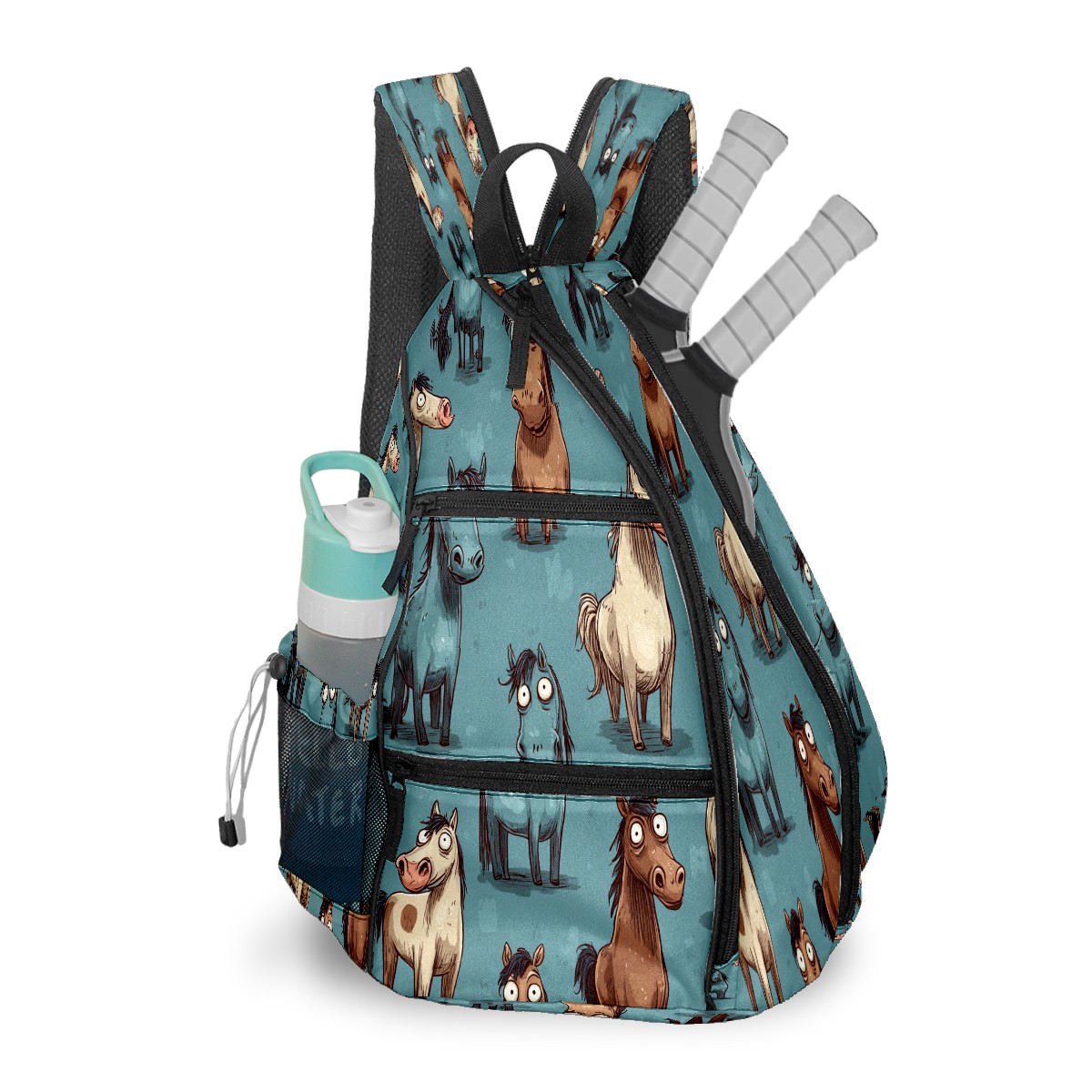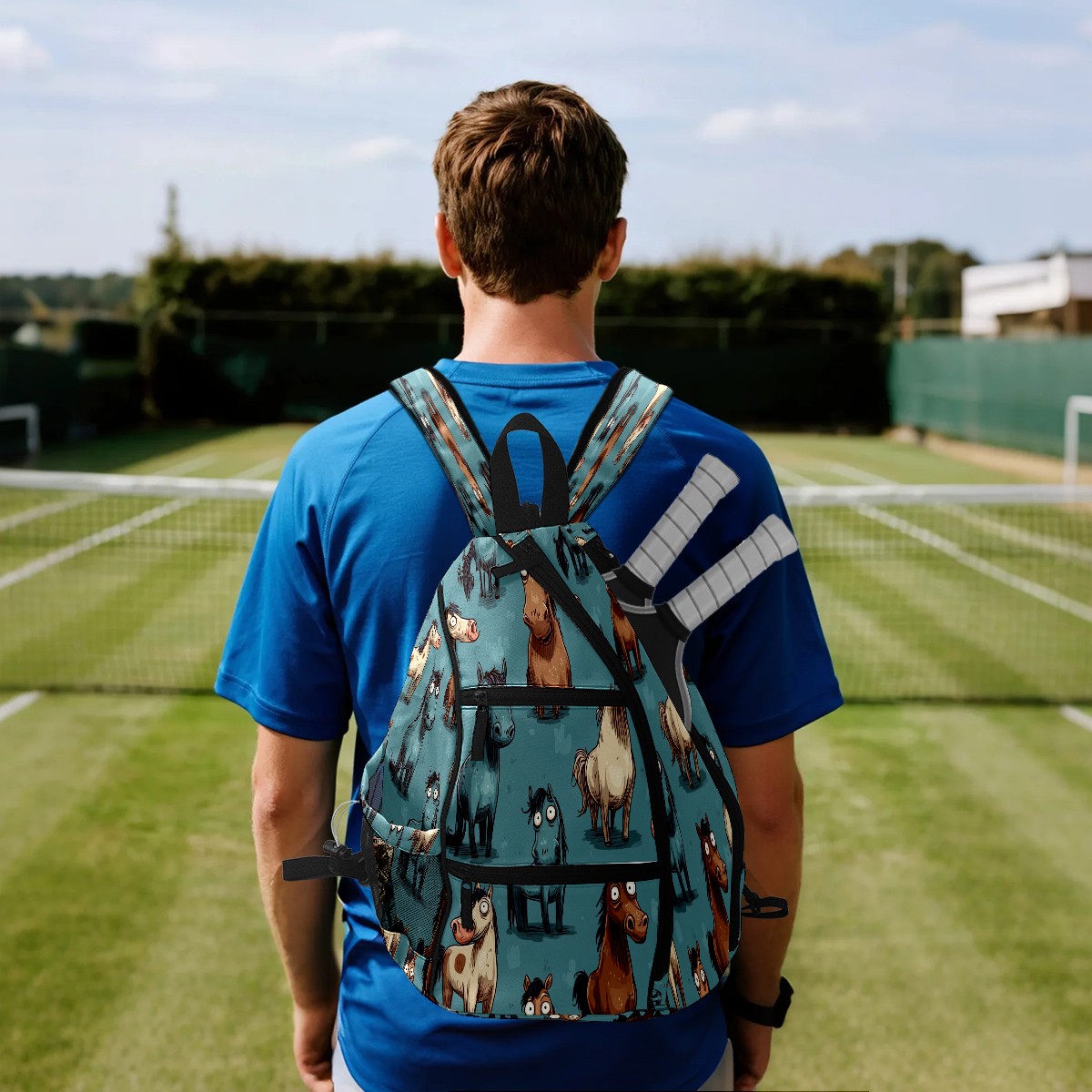 Pickleball Bag with Padded Back, Blue Pony Multi-Compartment Paddle Backpack, Lightweight Nylon Sports Bag for Men & Women