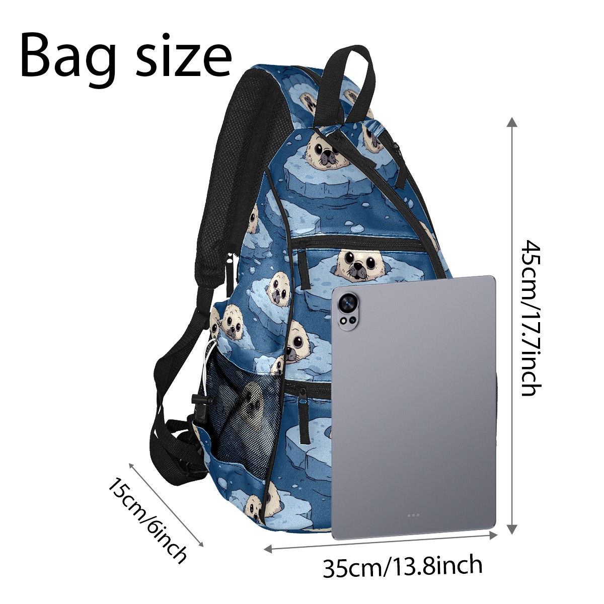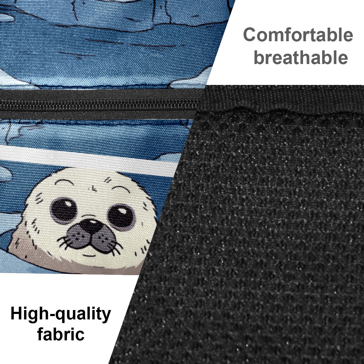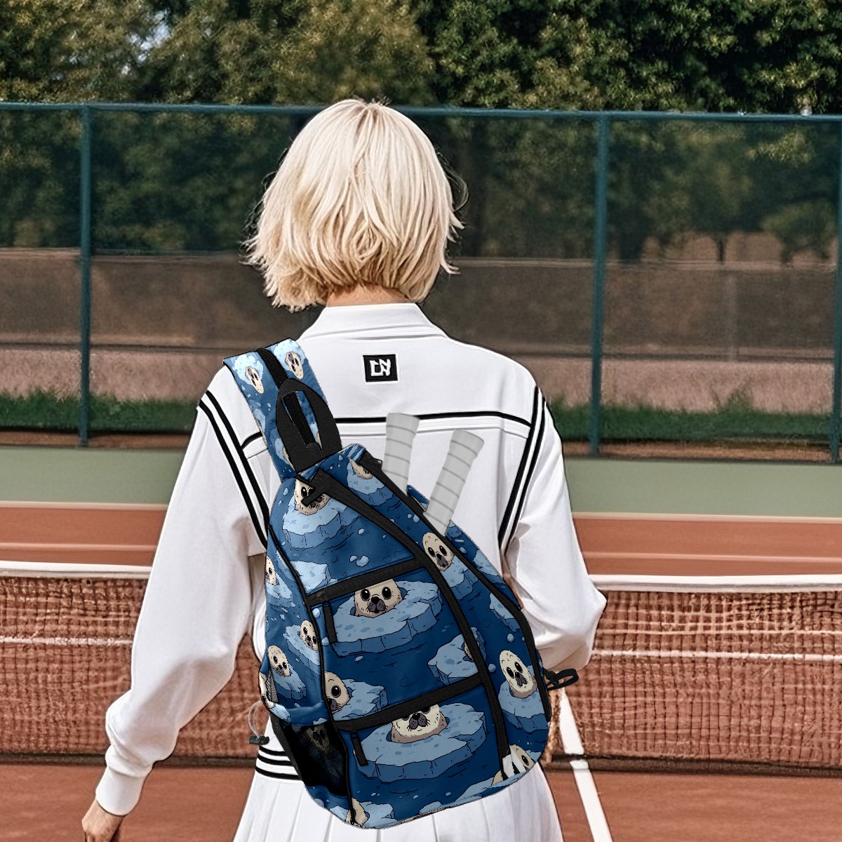 Pickleball Bag with Padded Back, Blue Cute Seal Multi-Compartment Paddle Backpack, Lightweight Nylon Sports Bag for Men & Women