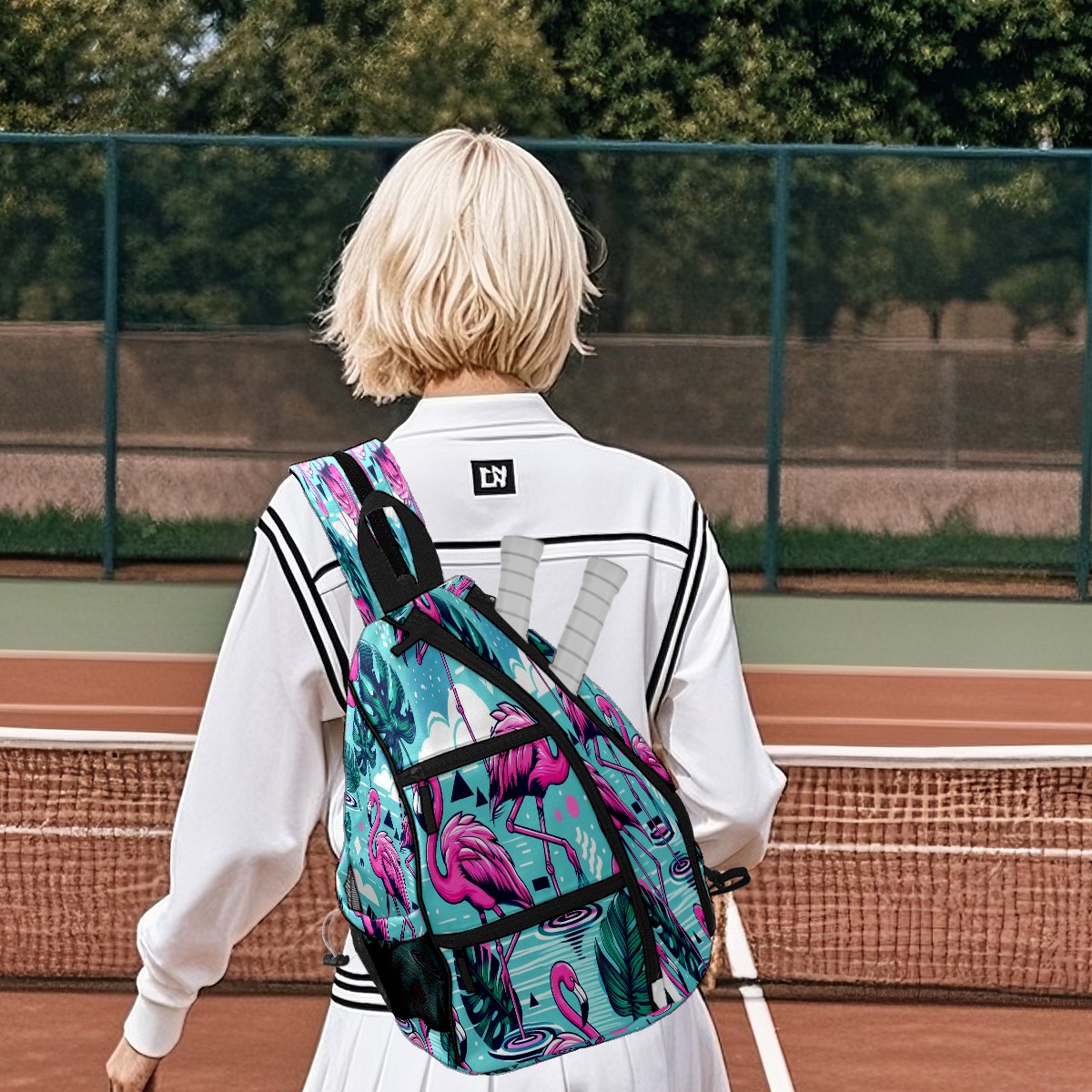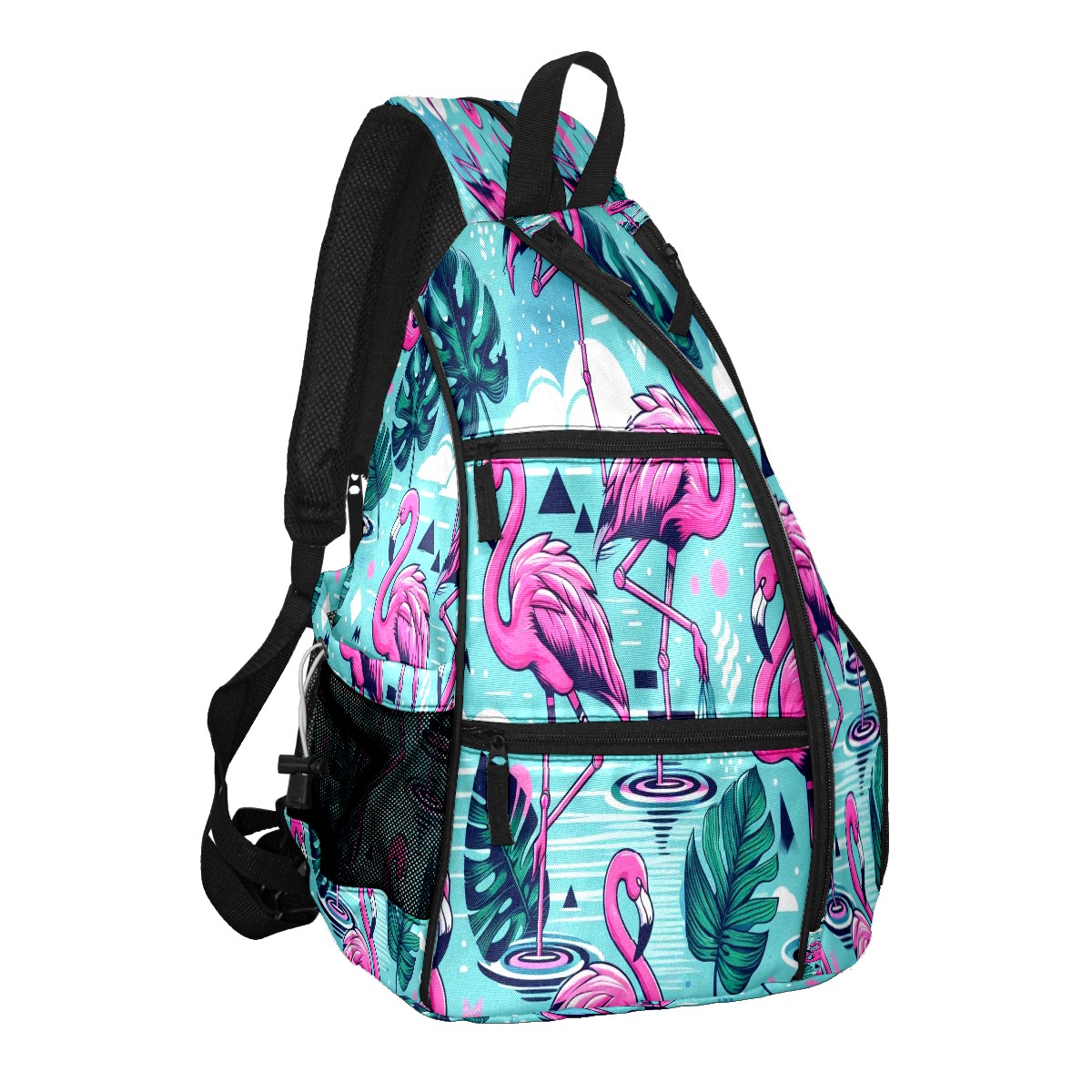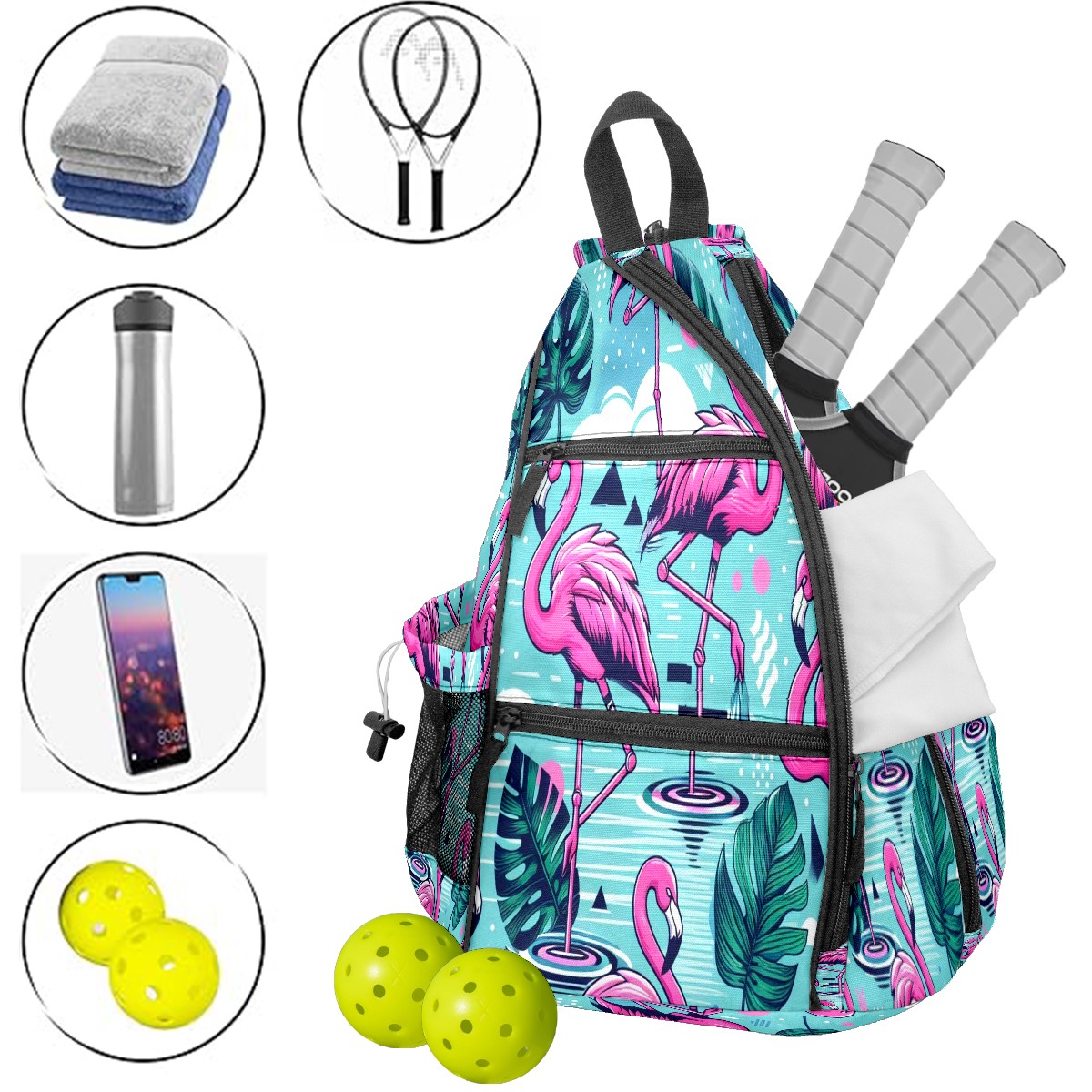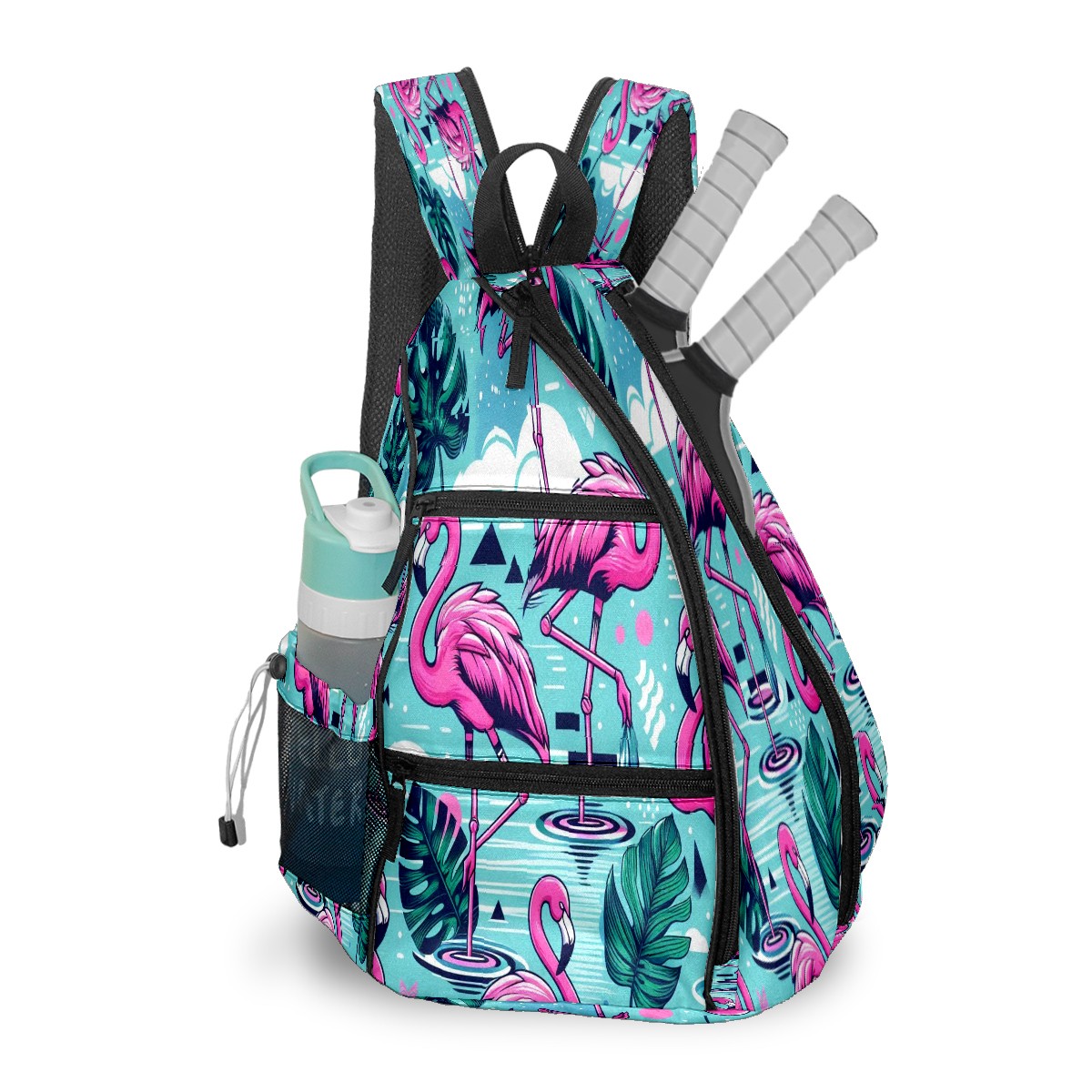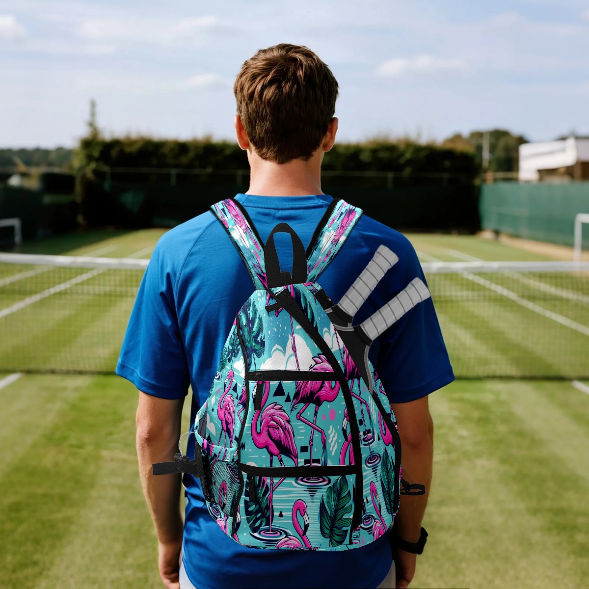Pickleball Bag with Padded Back, Blue Flamingo Multi-Compartment Paddle Backpack, Lightweight Nylon Sports Bag for Men & Women