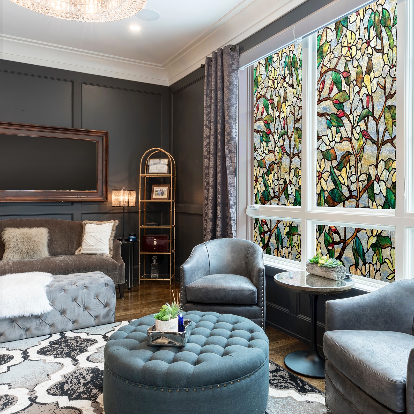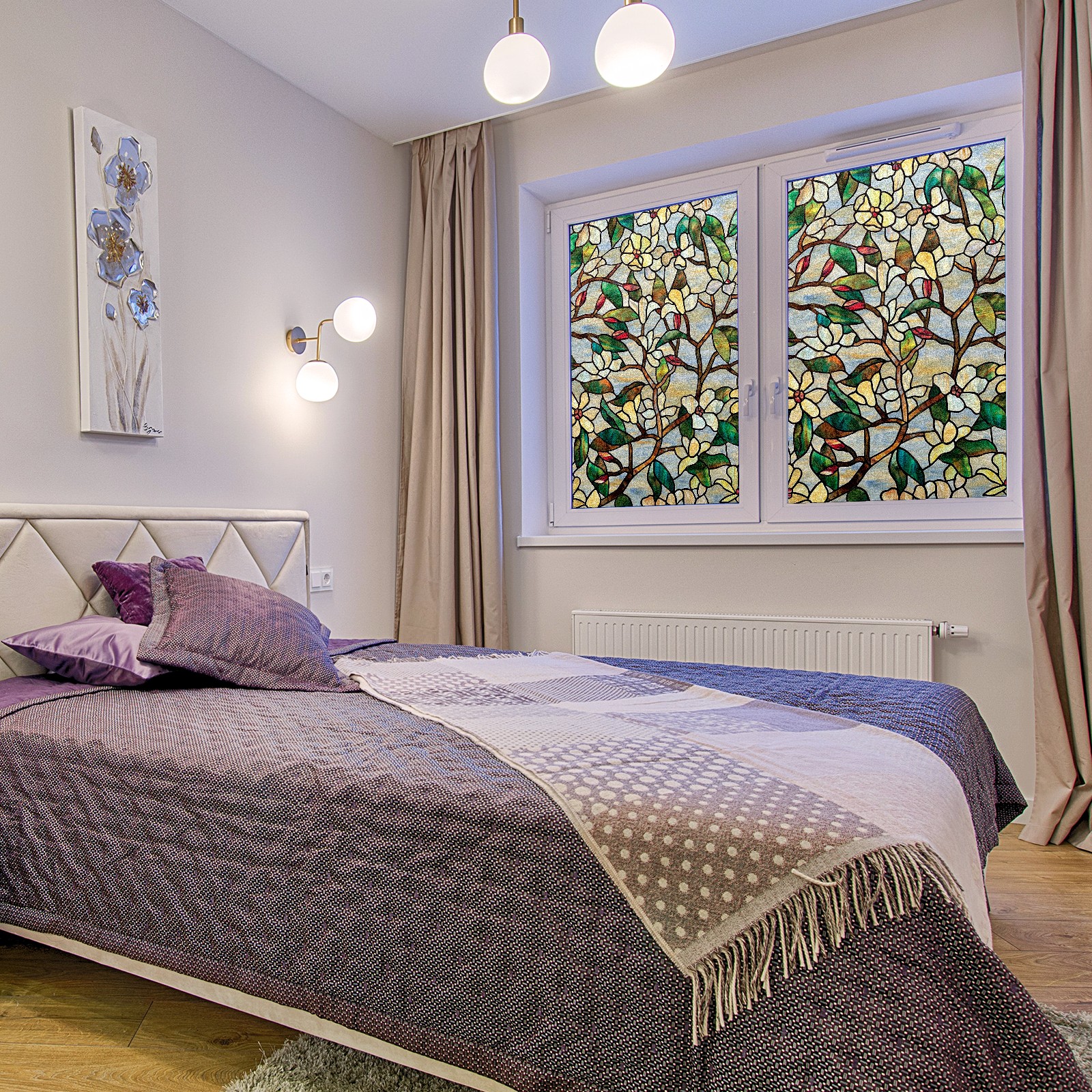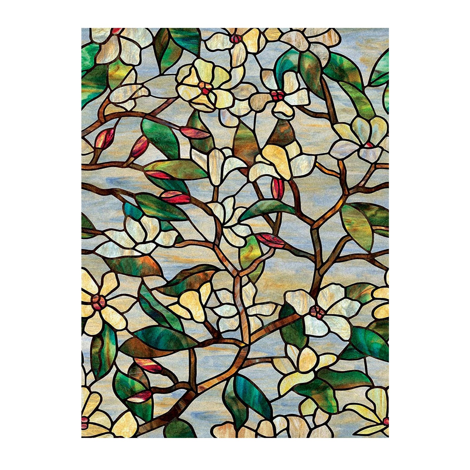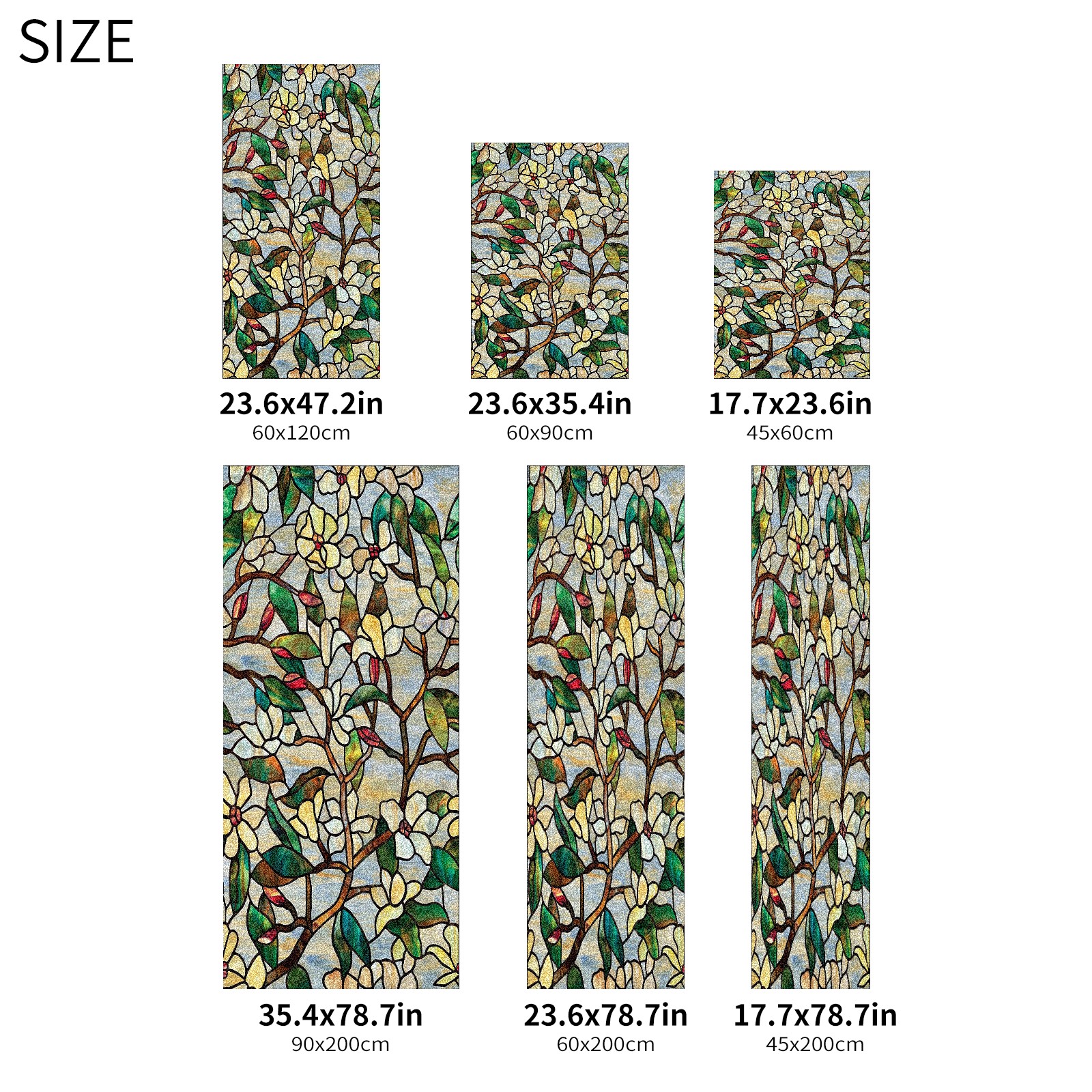 Frosted Glass Window Film Privacy Film Decorative Static Cling Window Film Stained Glass Decals for Bathroom Shower Door Non Adhesive Colored Flowers (17.7x23.6in)