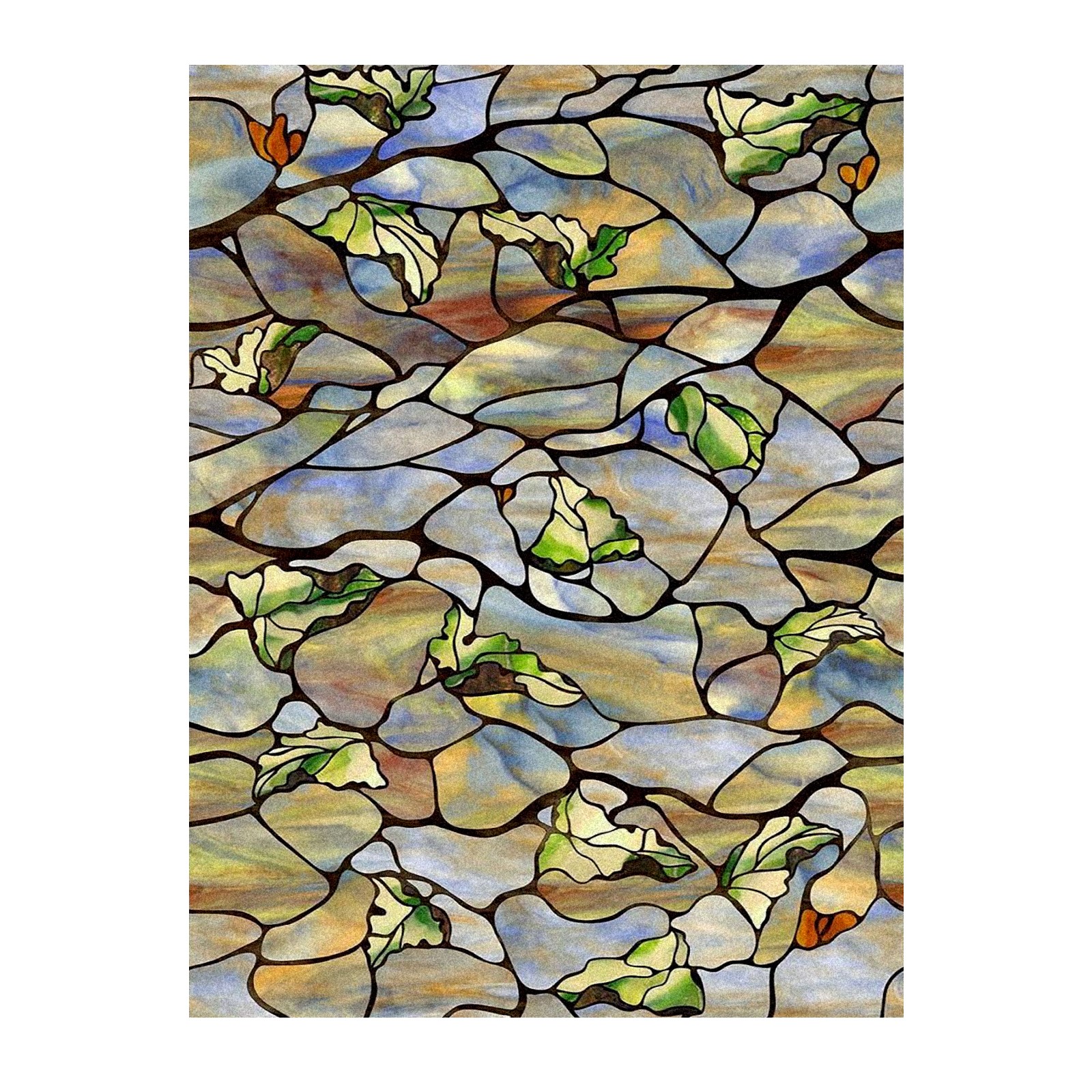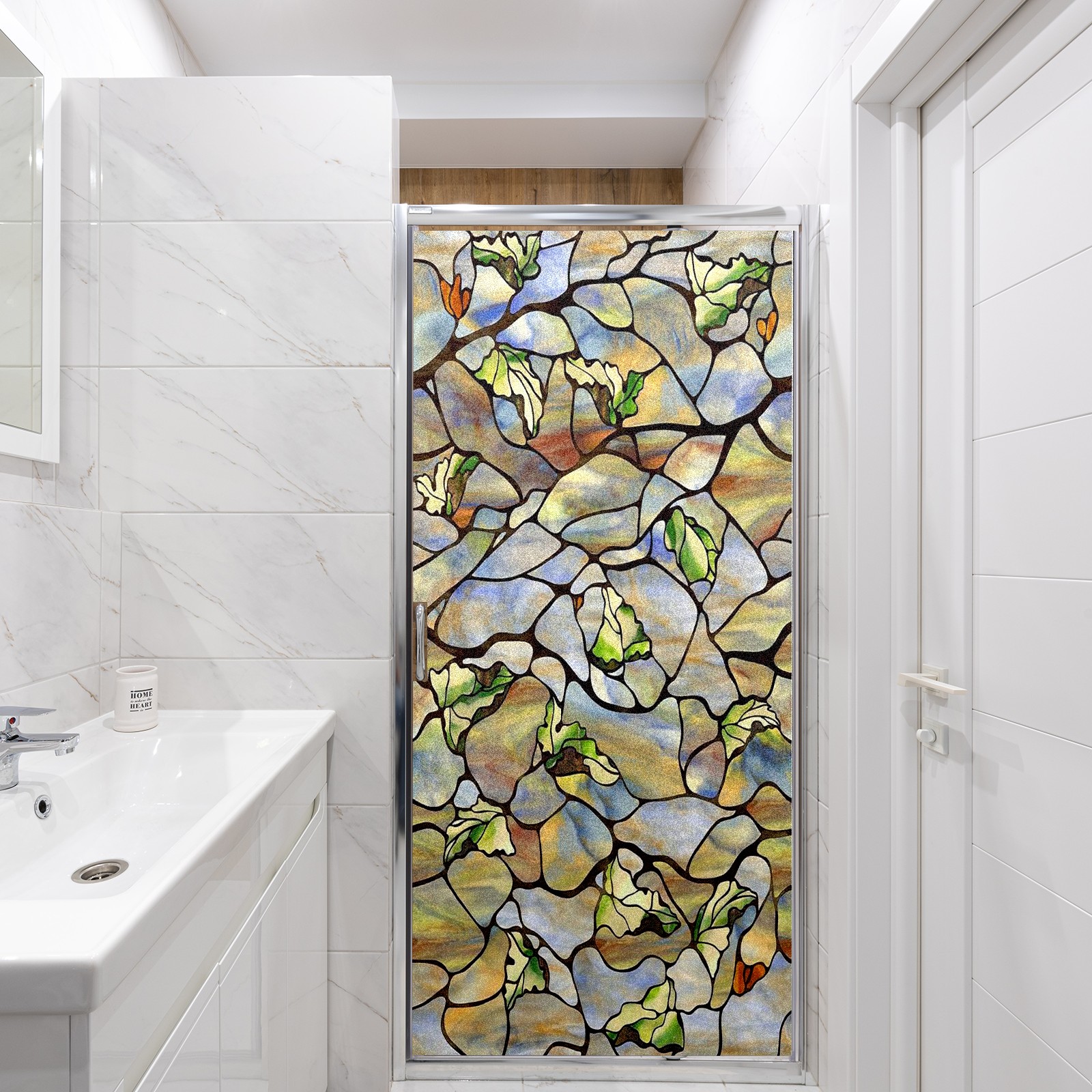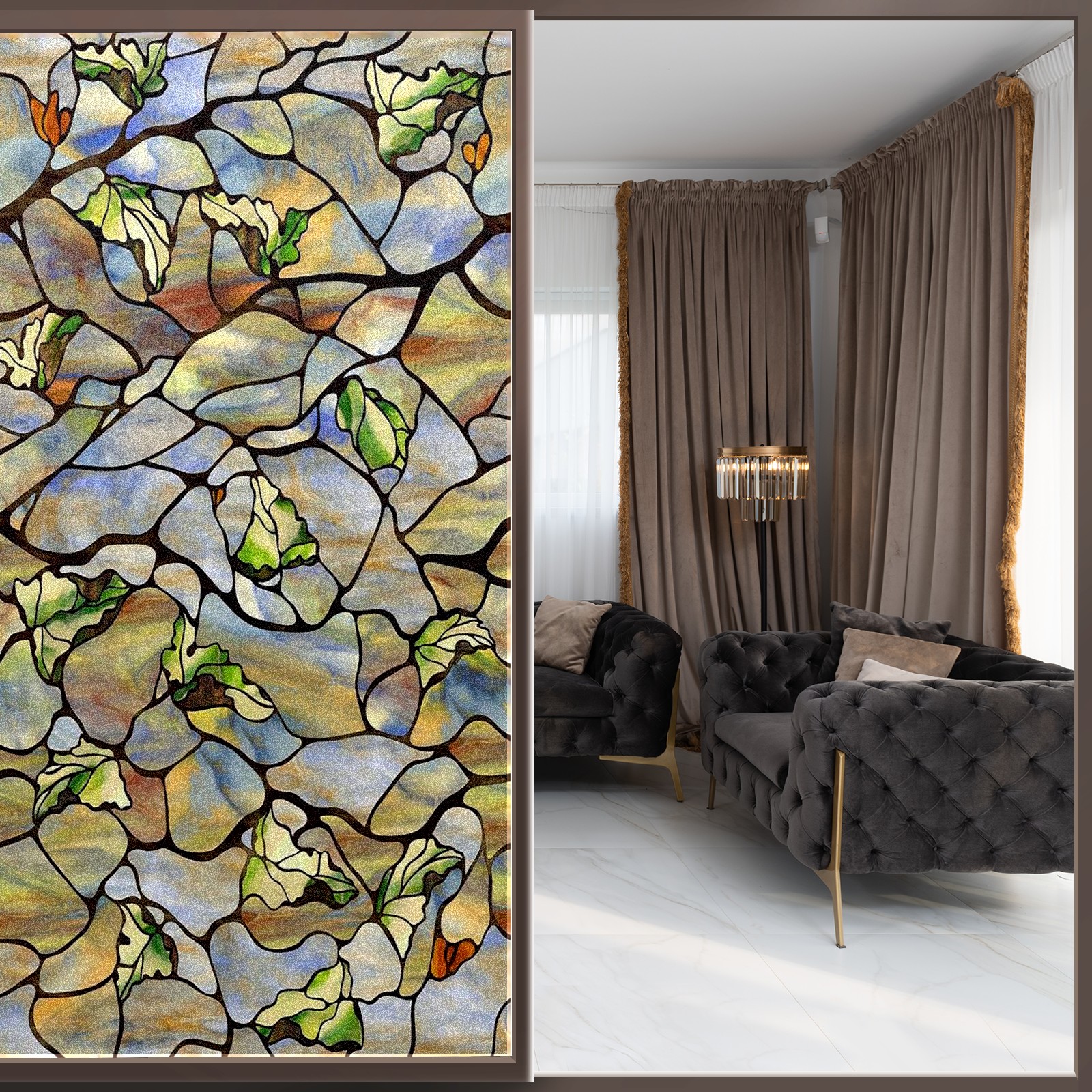 Frosted Glass Window Film Privacy Film Decorative Static Cling Window Film Stained Glass Decals for Bathroom Shower Door Non Adhesive Colored Leaf (17.7x23.6in)