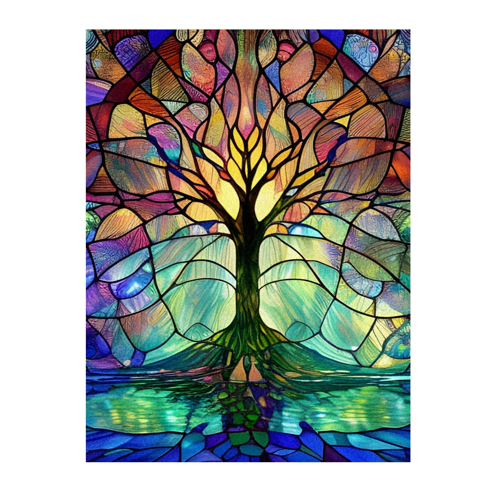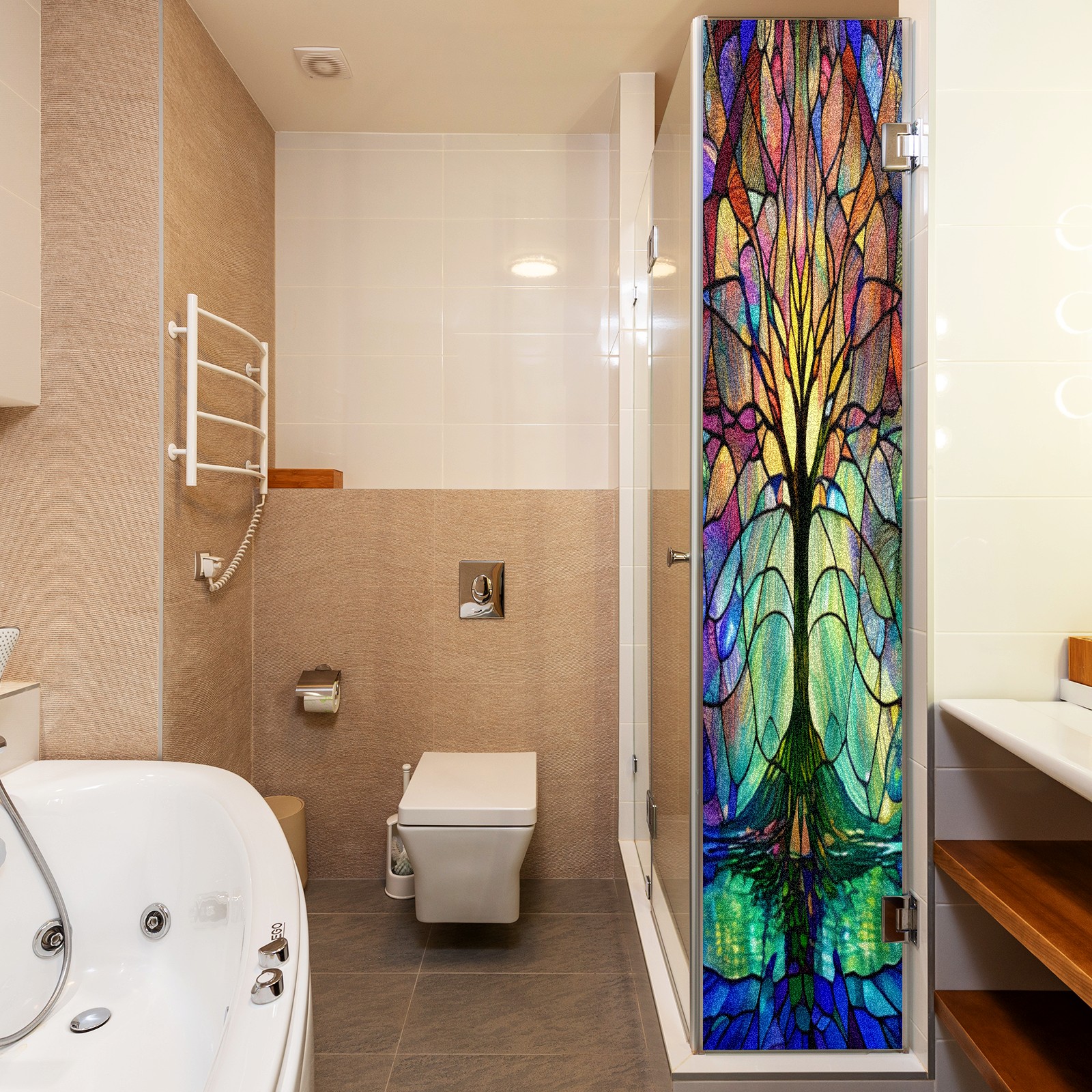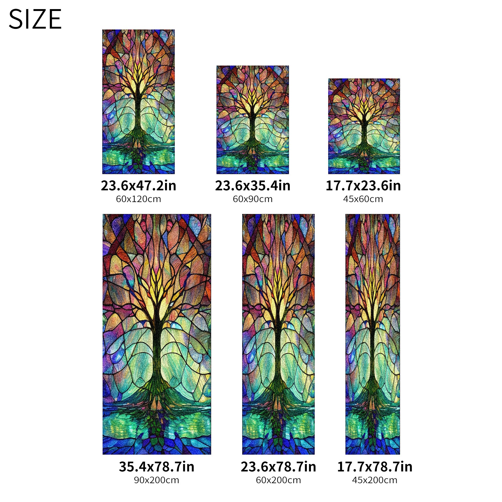 Frosted Glass Window Film Privacy Film Decorative Static Cling Window Film Stained Glass Decals for Bathroom Shower Door Non Adhesive Colored Tree (17.7x23.6in)