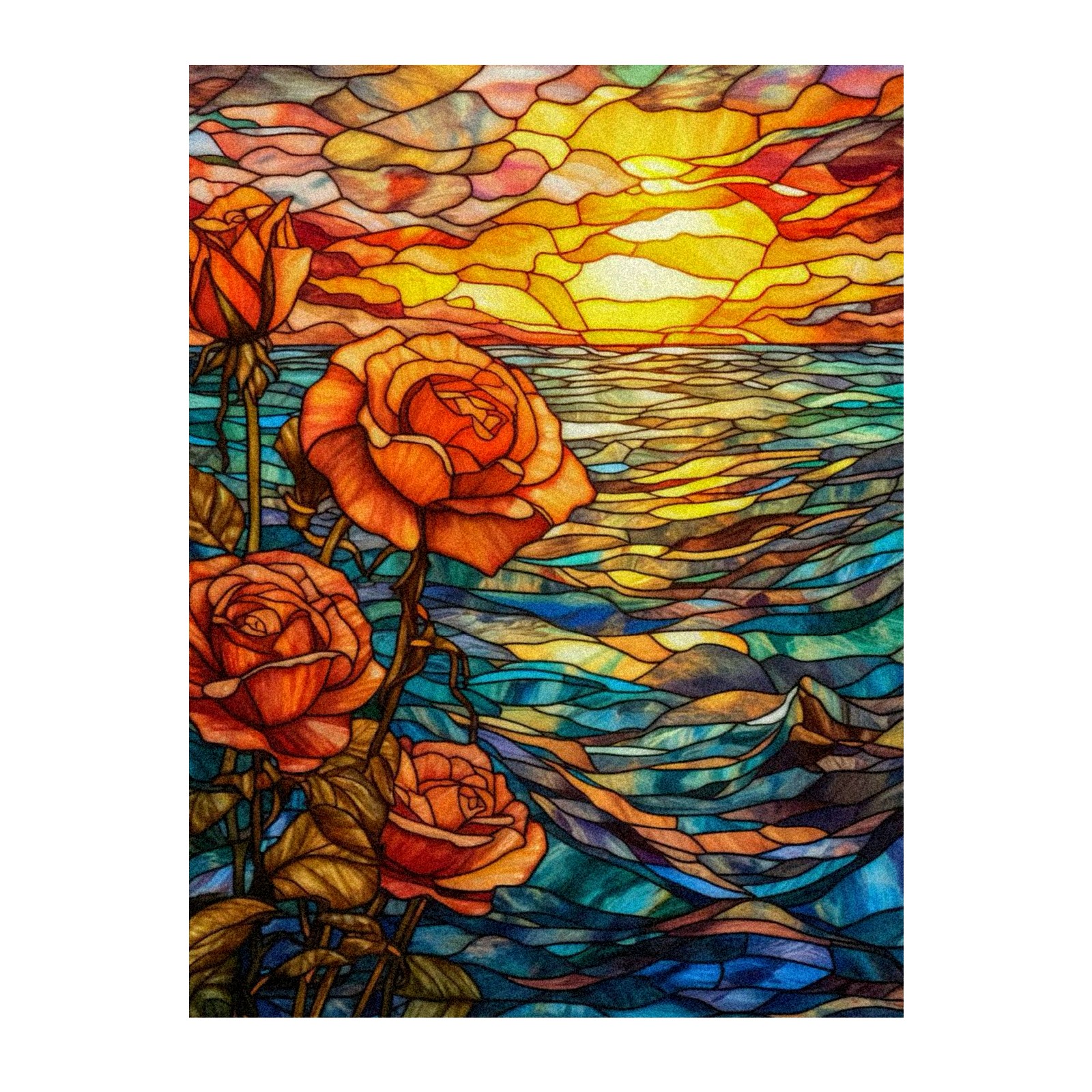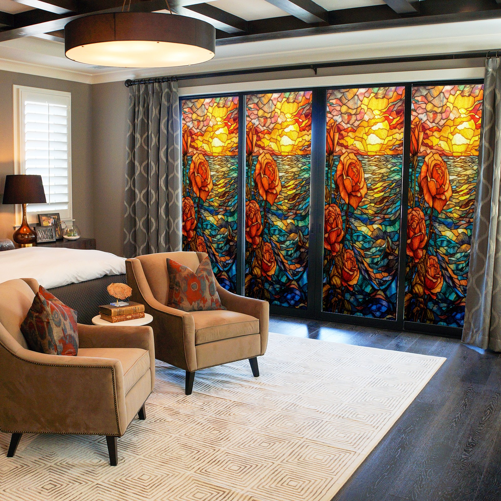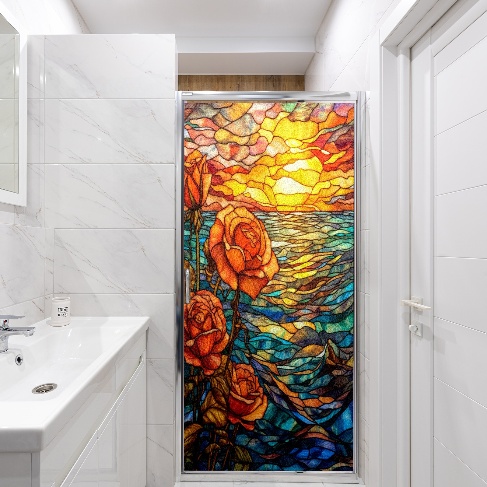 Frosted Glass Window Film Privacy Film Decorative Static Cling Window Film Stained Glass Decals for Bathroom Shower Door Non Adhesive Orange Rose Flower (17.7x23.6in)