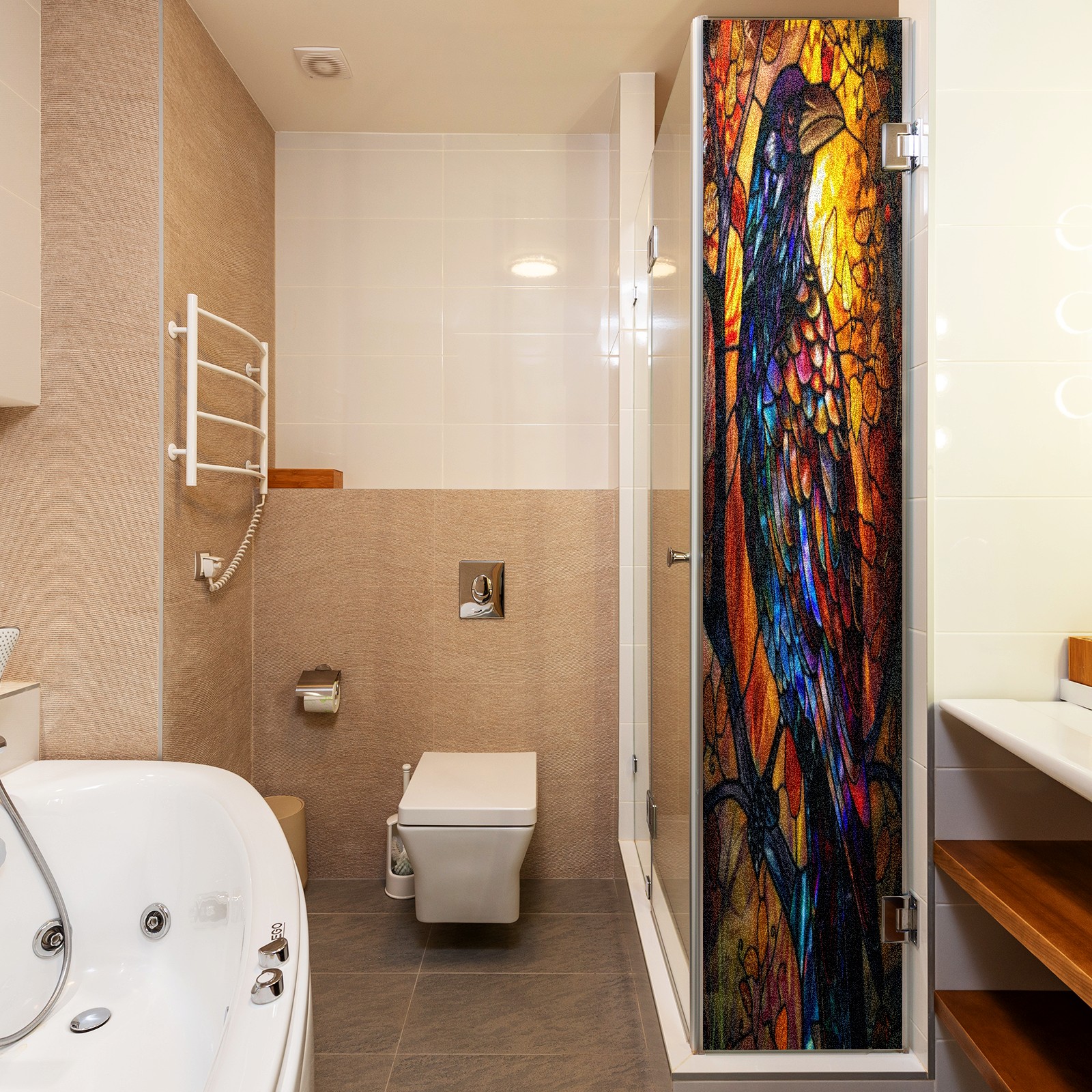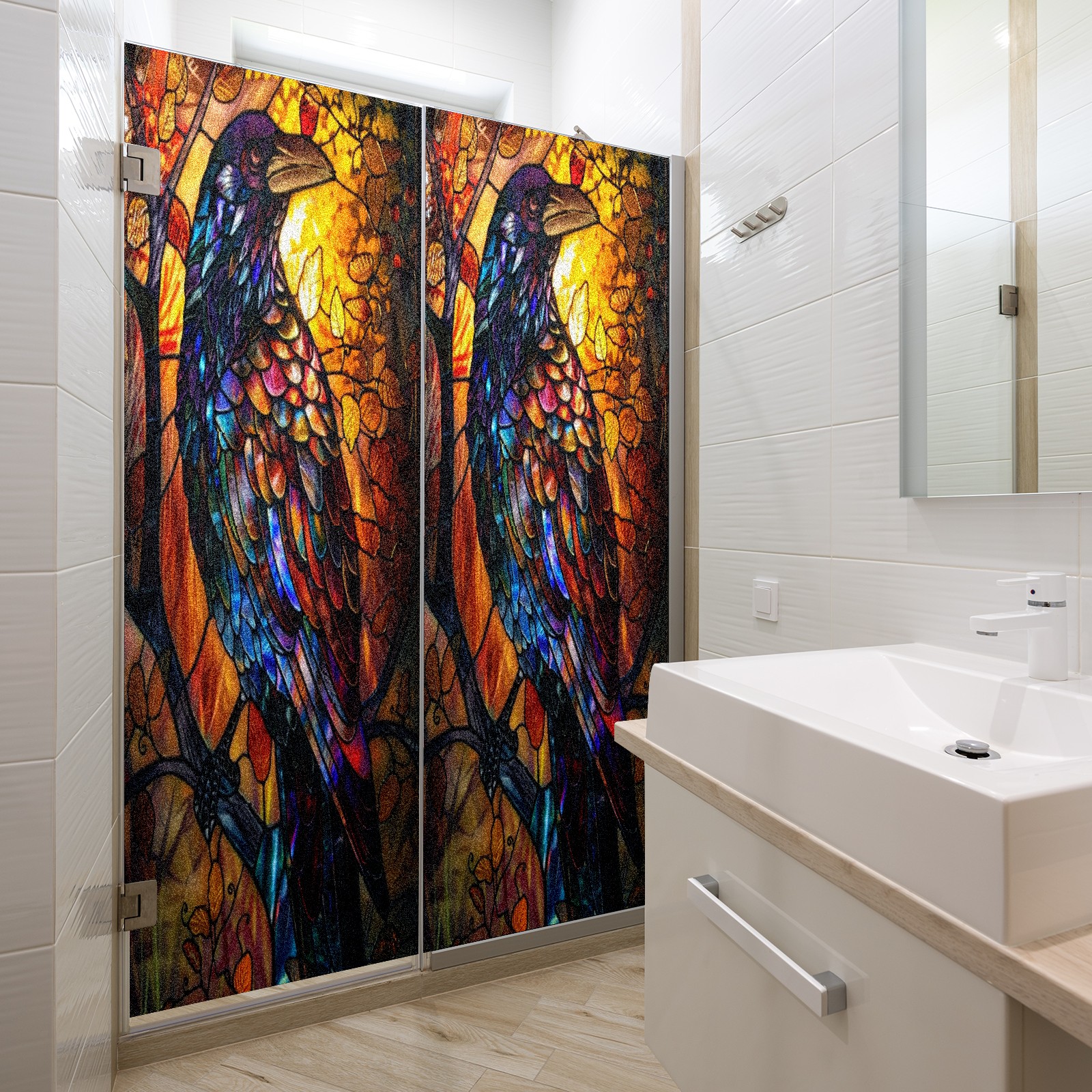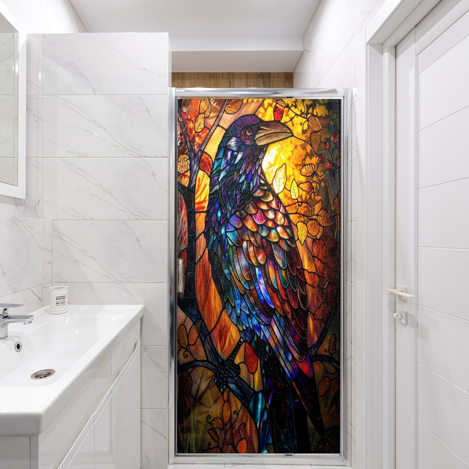 Frosted Glass Window Film Privacy Film Decorative Static Cling Window Film Stained Glass Decals for Bathroom Shower Door Non Adhesive Colorful Bird (17.7x23.6in)