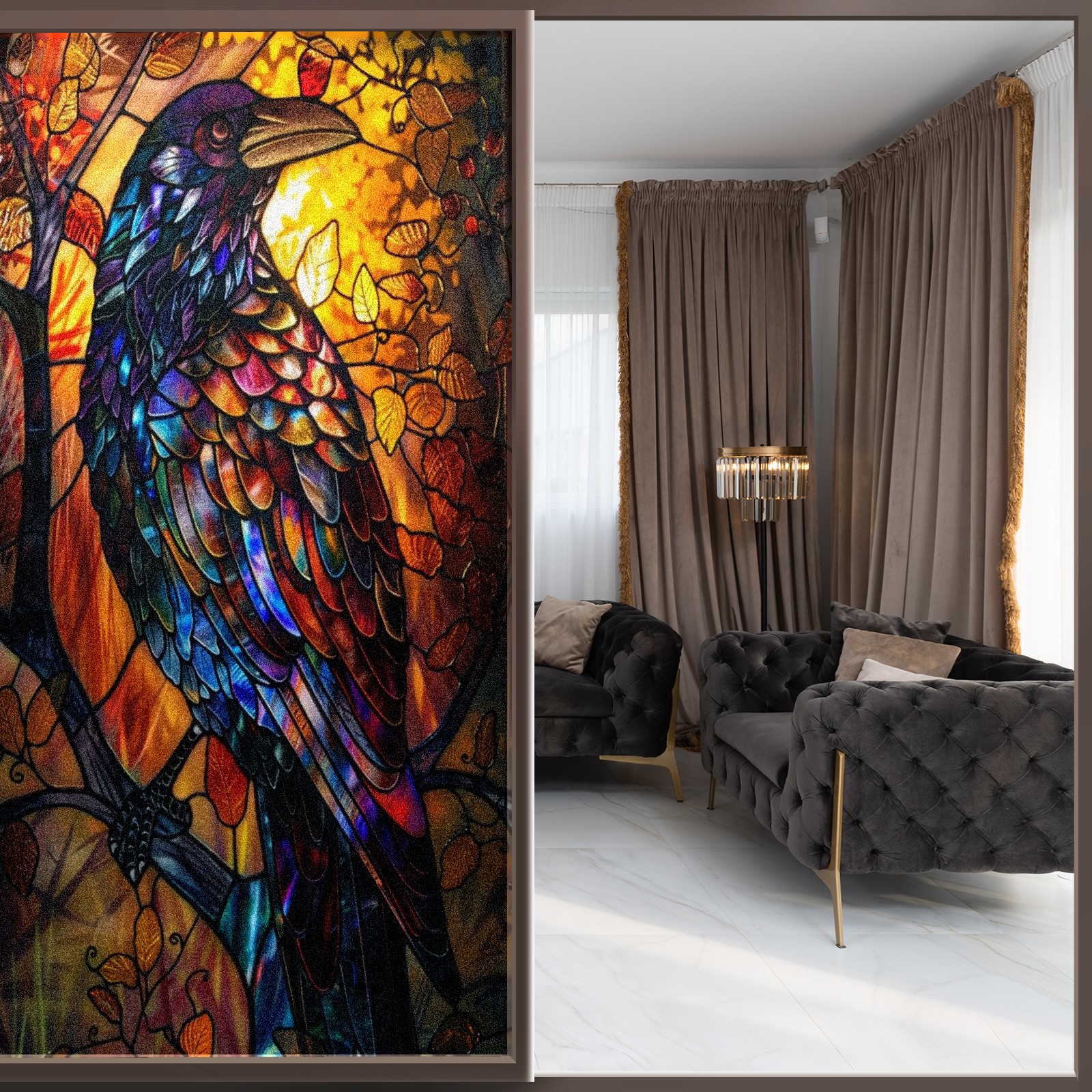 <p>Our film is made of food-grade PET material, safe and odorless, mother and baby families can rest assured that the use of explosion-proof impact resistance more peace of mind. High-definition full-sheet printing, delicate pattern does not fade, easy to enhance the tone of the home, suitable for a variety of decorative styles. Single-sided frosted design, effective protection of privacy, clear view during the day, night anti-peeping without embarrassment. Electrostatic adsorption installation, glue-free without leaving marks, can be repeatedly adjusted for use. It can also block ultraviolet rays, sunscreen insulation, protect furniture from fading, energy saving and more comfortable!&nbsp;&nbsp;</p>
