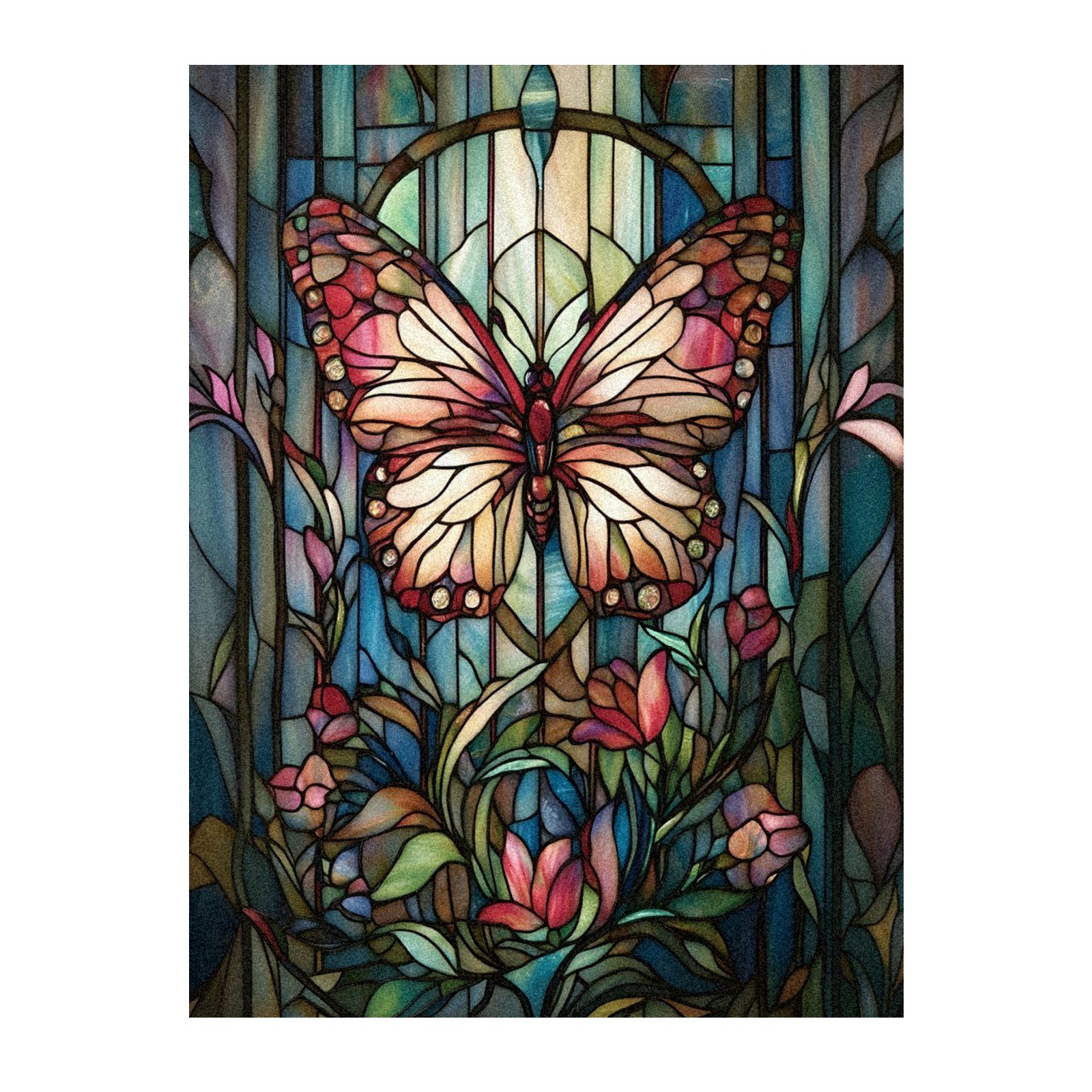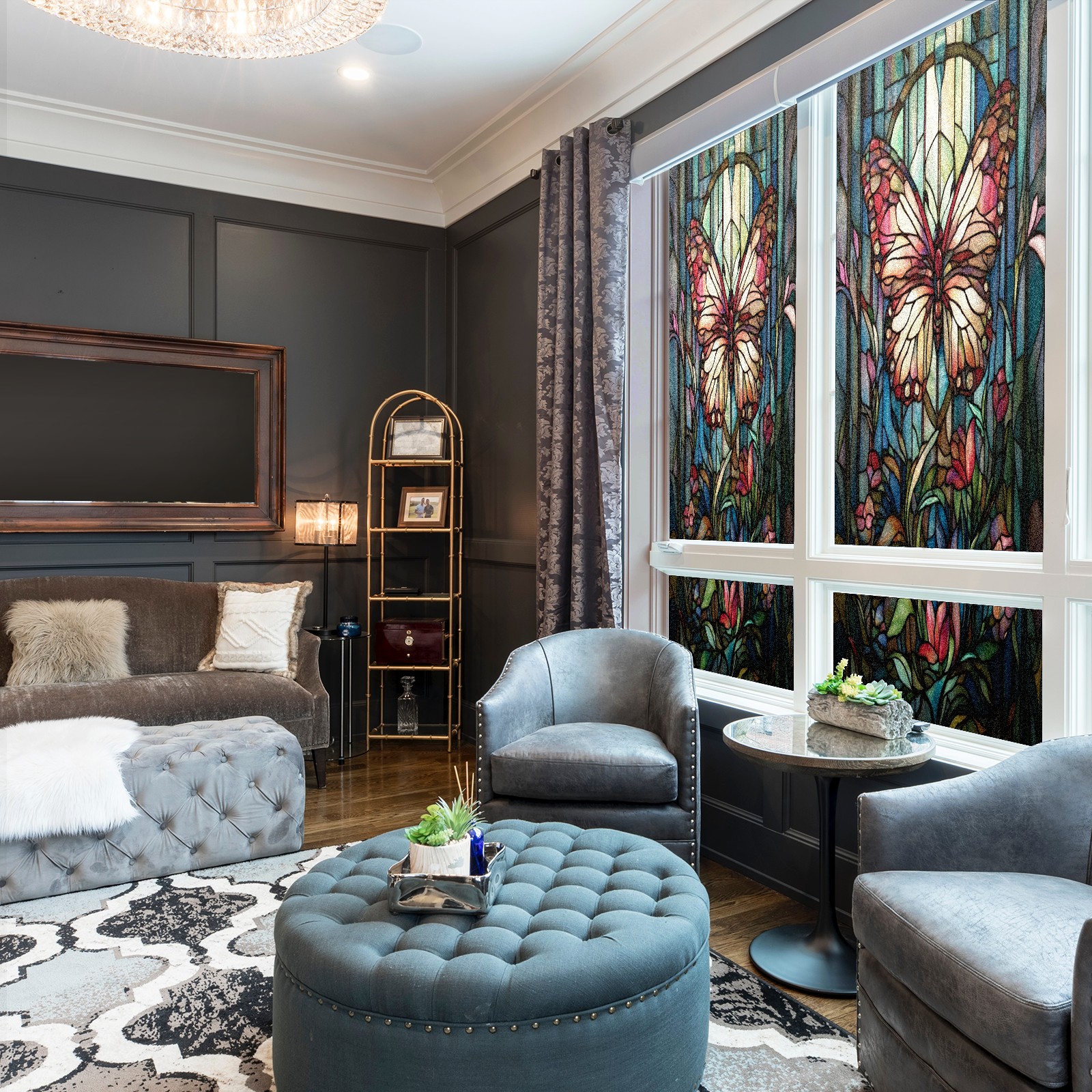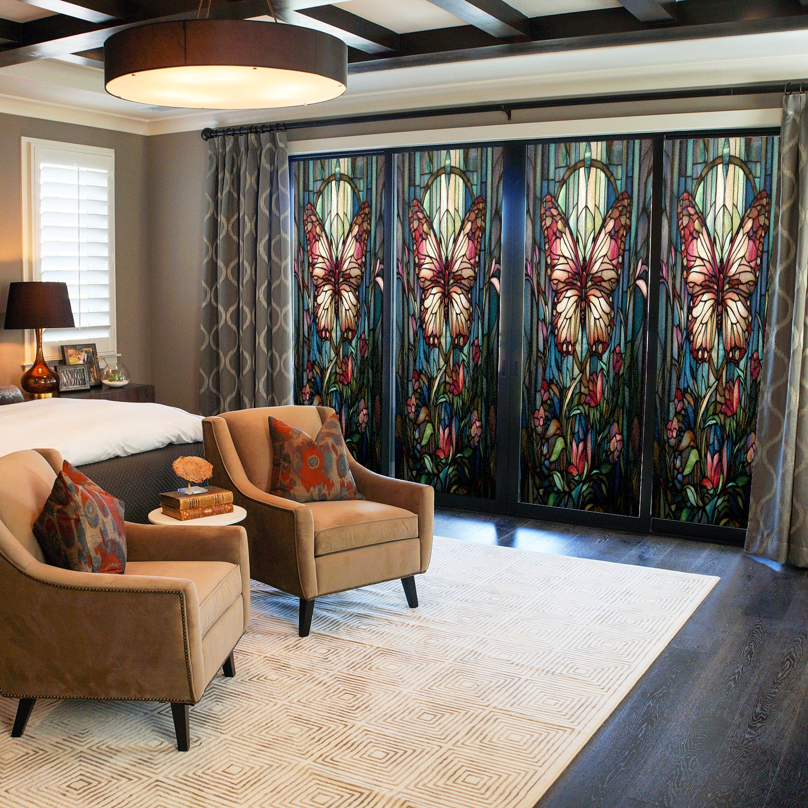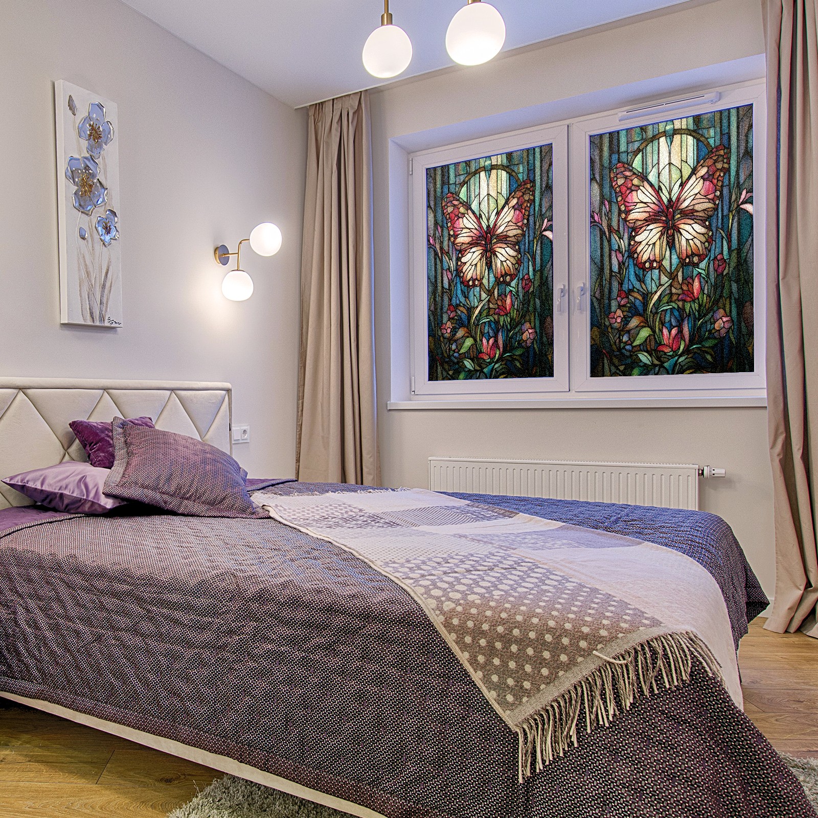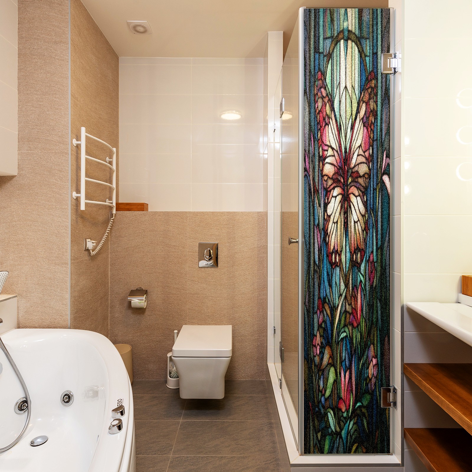 Frosted Glass Window Film Privacy Film Decorative Static Cling Window Film Stained Glass Decals for Bathroom Shower Door Non Adhesive Colored Butterfly Floral (17.7x23.6in)