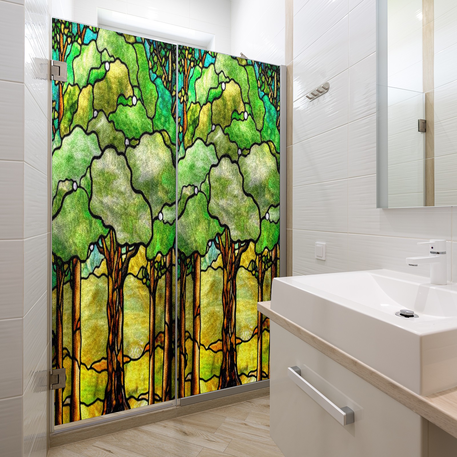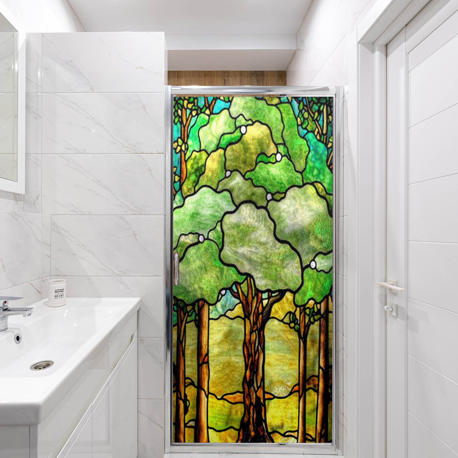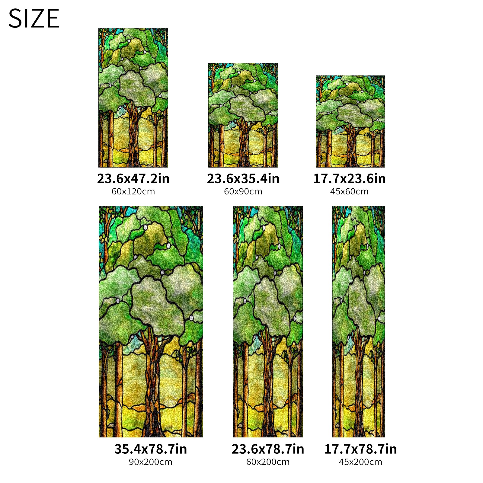 Window Privacy Film Frosted Stained Glass Film Decorative Static Cling for Bathroom Home Office Peel and Stick Window Film Green Trees(17.7x23.6in)
