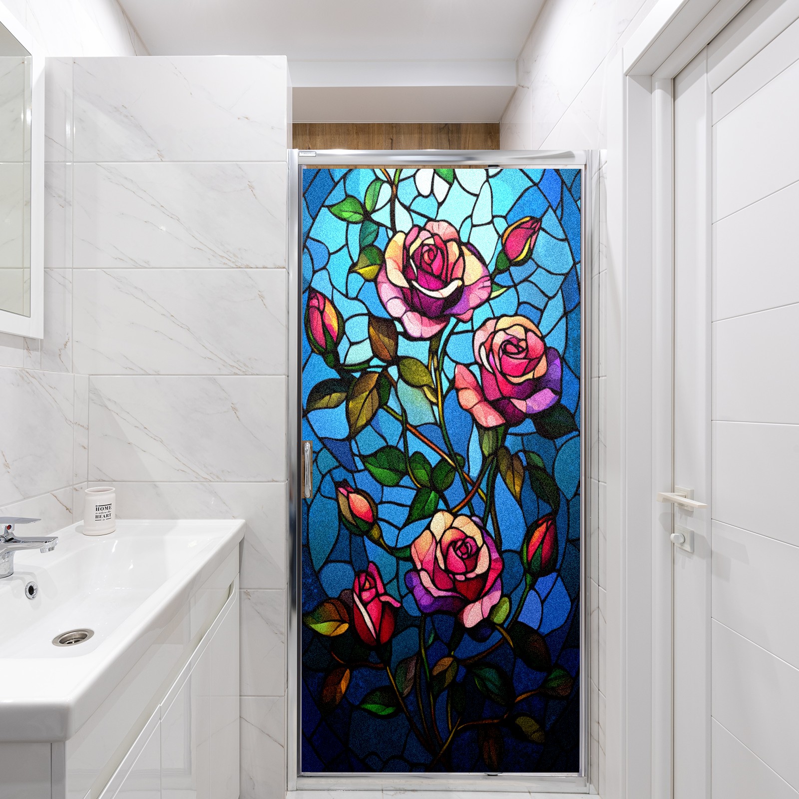 Window Privacy Film Frosted Stained Glass Film Decorative Static Cling for Bathroom Home Office Peel and Stick Window Film Glass Rose(17.7x23.6in)