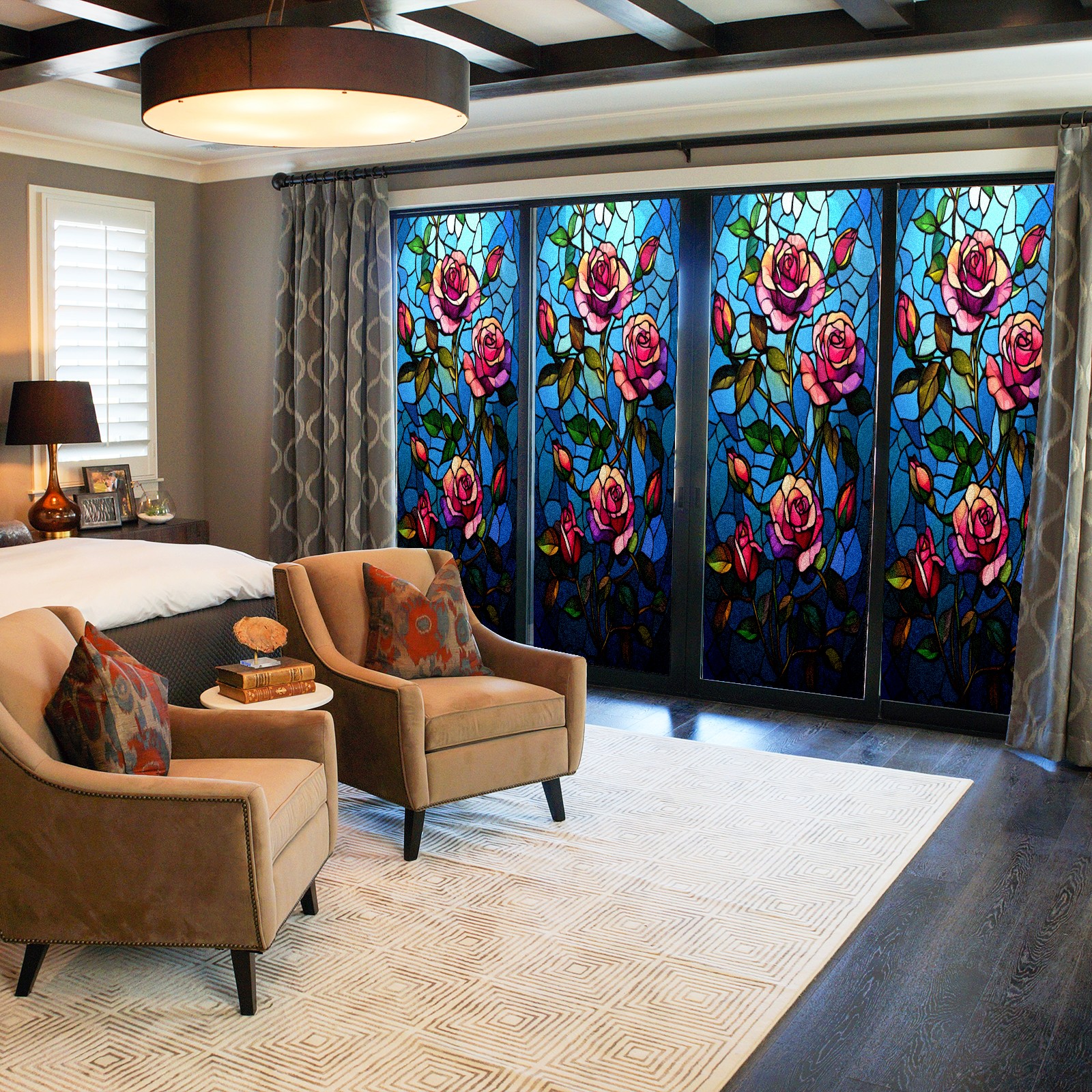 • <p><b>Privacy Protection with Aesthetic Design</b></p><p>The frosted privacy window film protection for bathrooms, bedrooms, offices, and storefronts. Its light-diffusing texture maintains natural daylight while blocking 95% of UV rays and external visibility. Our window glass films offers excellent sun blocking capabilities, effectively reducing heat and glare, give privacy while still allowing natural soft light in.This window glass films with graphic printings, bright and vivid color, long term non fading</p><p><b>Effortless Installation &amp; Versatile Application</b></p><p>This frosted window film works perfectly for bathroom glass partitions, bedroom bay windows, kitchen sliding doors, office dividers, and storefront windows. With a 3-step installation process (clean, spray, smooth), it takes just 10 minutes to transform any glass surface. The film is trimmable for custom sizes and shapes, compatible with curved or unique glass designs.&nbsp;</p><p><b>We have various sizes and patterns, and there is always one that meets your preferences. Welcome to purchase Counullo frosted glass sticker.</b></p>