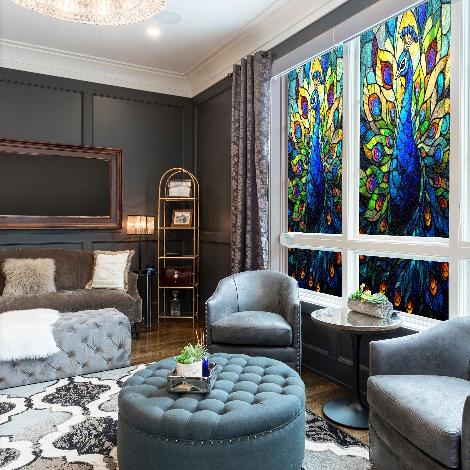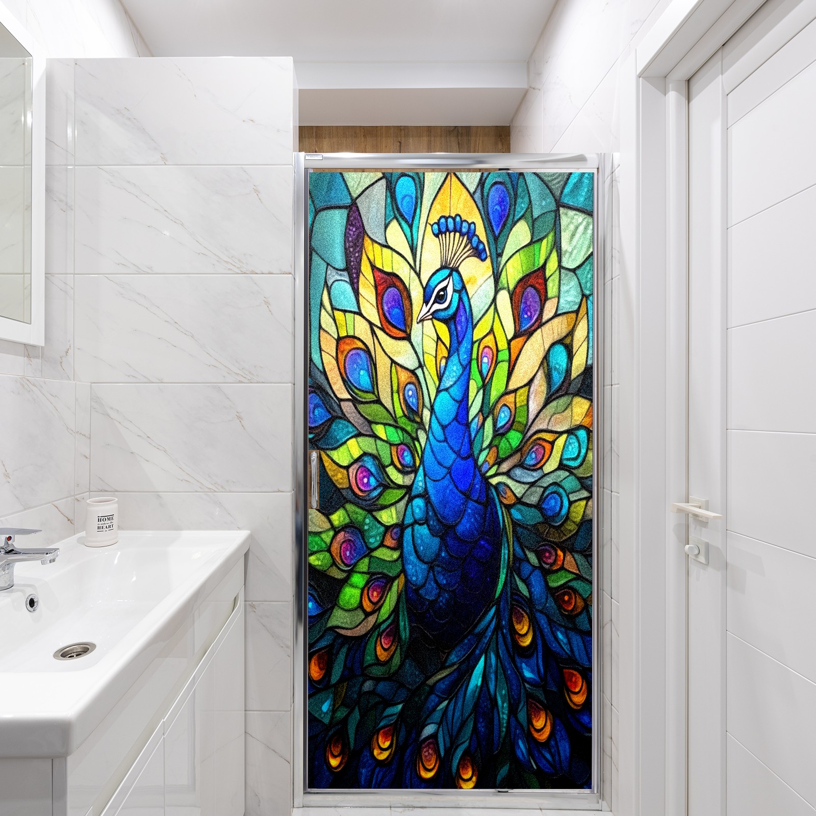 Window Privacy Film Frosted Stained Glass Film Decorative Static Cling for Bathroom Home Office Peel and Stick Window Film Peacock(17.7x23.6in)