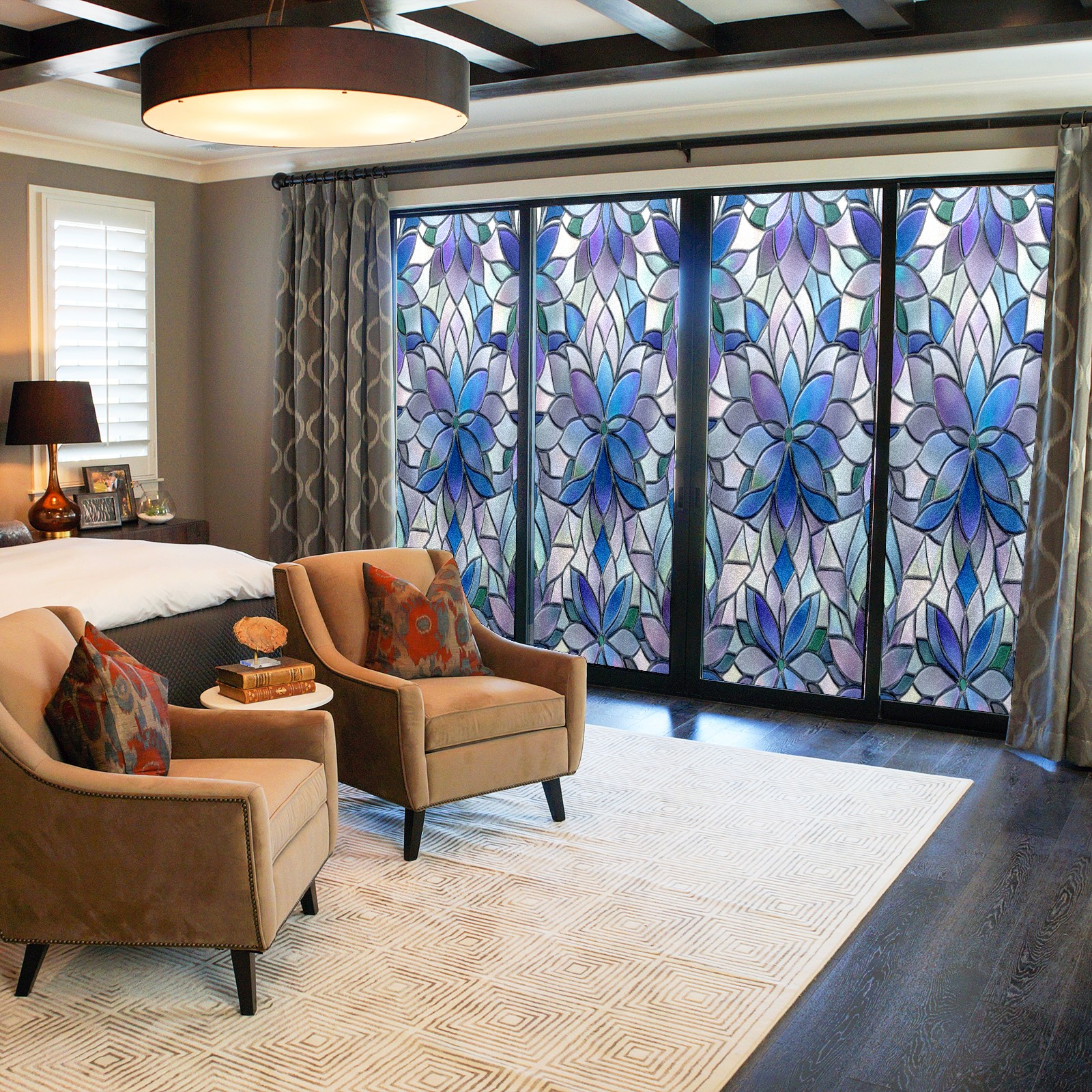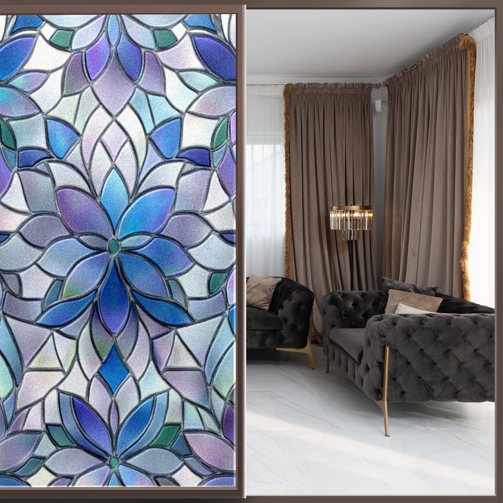 • <p><b>Privacy Protection with Aesthetic Design</b></p><p>The frosted privacy window film protection for bathrooms, bedrooms, offices, and storefronts. Its light-diffusing texture maintains natural daylight while blocking 95% of UV rays and external visibility. Our window glass films offers excellent sun blocking capabilities, effectively reducing heat and glare, give privacy while still allowing natural soft light in.This window glass films with graphic printings, bright and vivid color, long term non fading</p><p><b>Effortless Installation &amp; Versatile Application</b></p><p>This frosted window film works perfectly for bathroom glass partitions, bedroom bay windows, kitchen sliding doors, office dividers, and storefront windows. With a 3-step installation process (clean, spray, smooth), it takes just 10 minutes to transform any glass surface. The film is trimmable for custom sizes and shapes, compatible with curved or unique glass designs.&nbsp;</p><p><b>We have various sizes and patterns, and there is always one that meets your preferences. Welcome to purchase Counullo frosted glass sticker.</b></p>