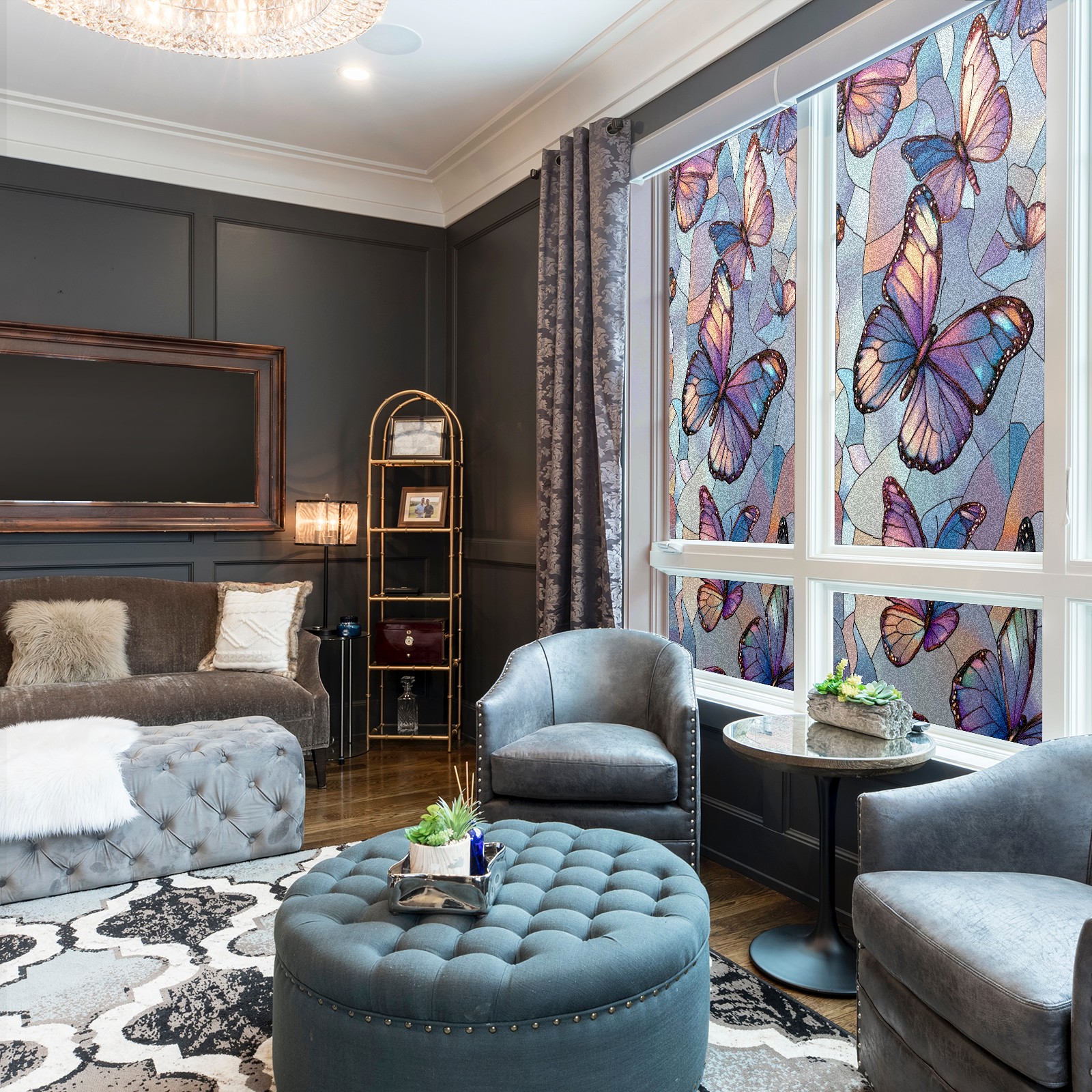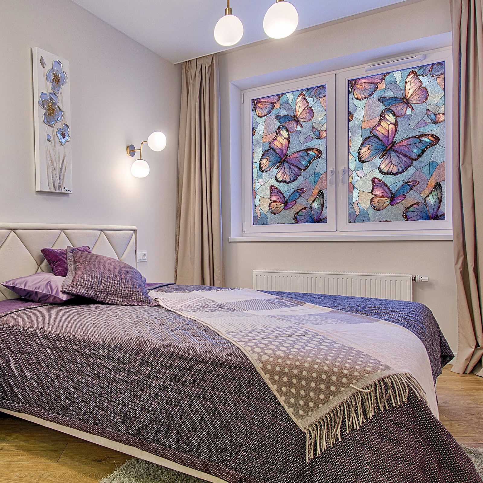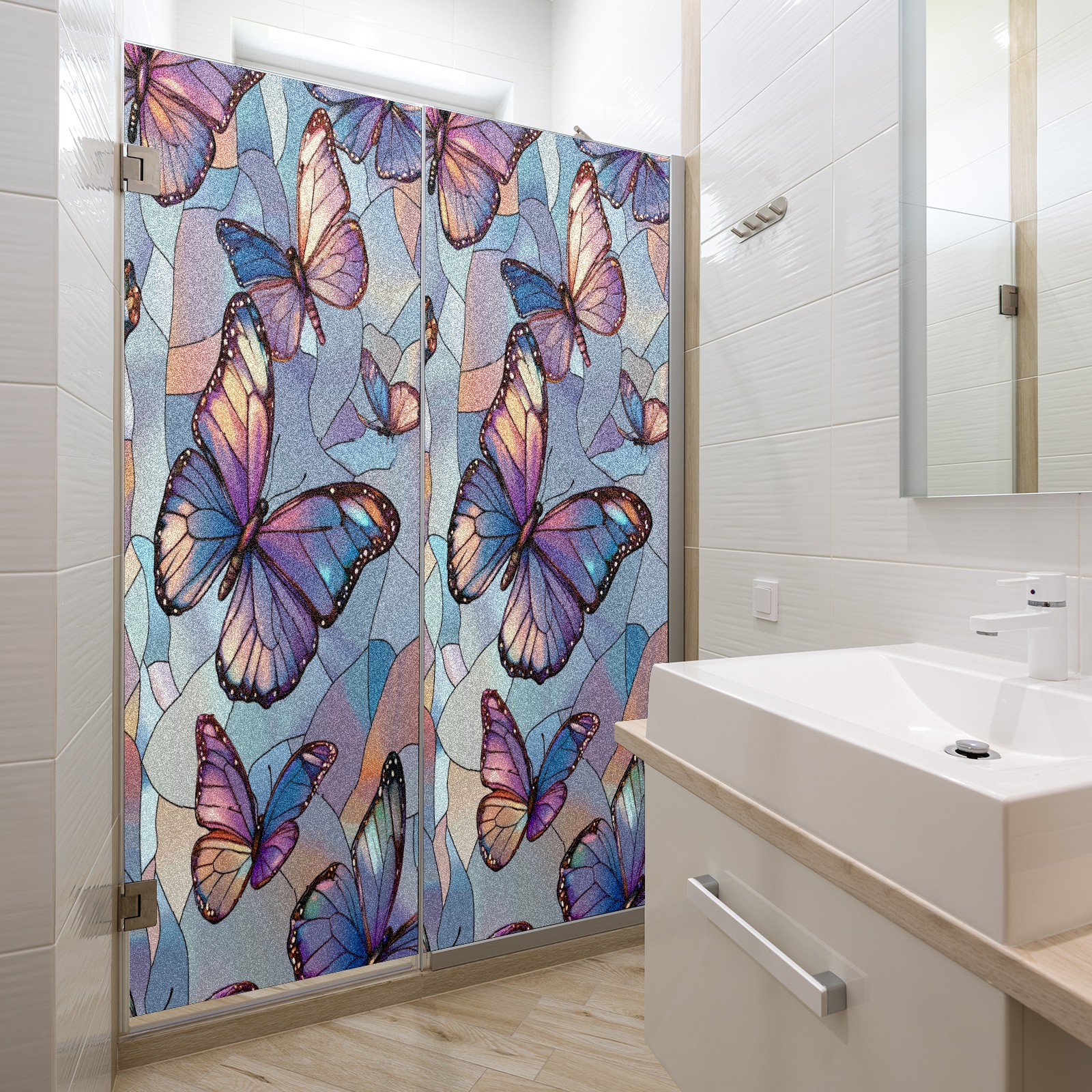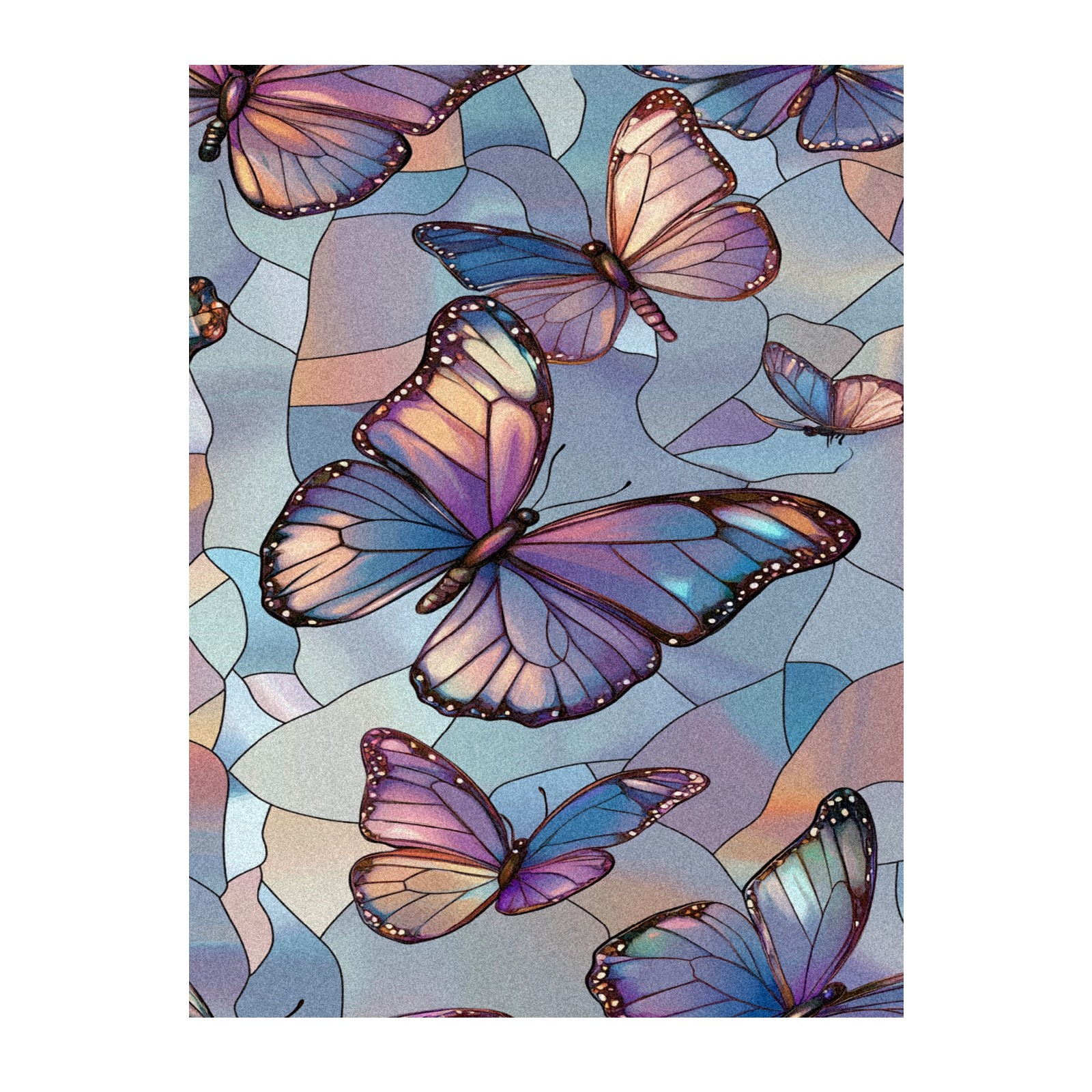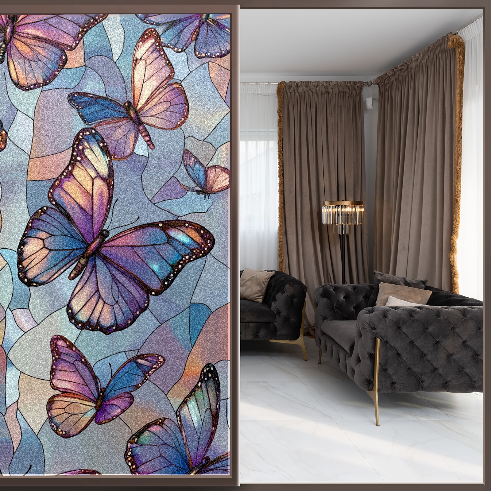 Window Privacy Film Frosted Stained Glass Film Decorative Static Cling for Bathroom Home Office Peel and Stick Window Film Iridescent Butterflies(17.7x23.6in)