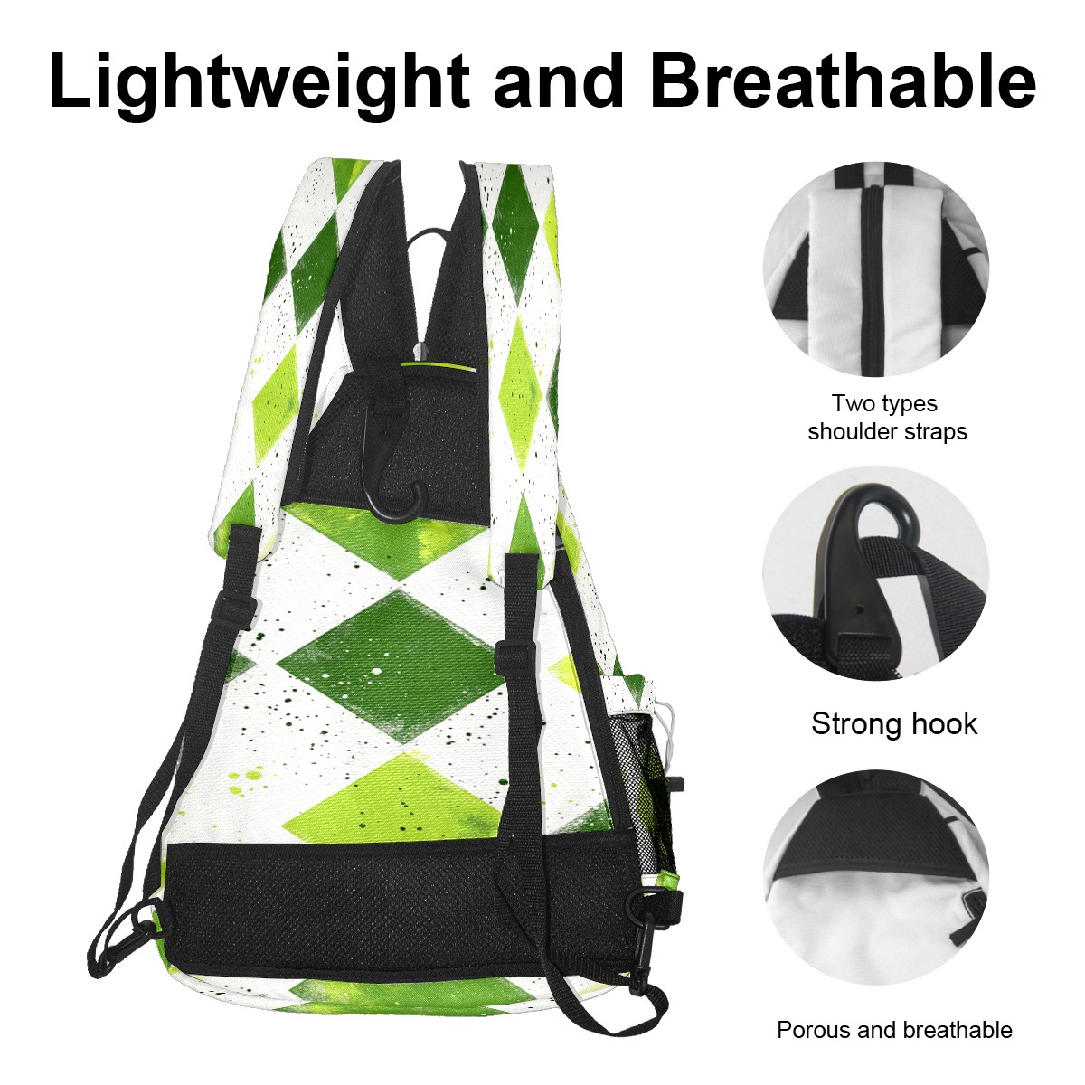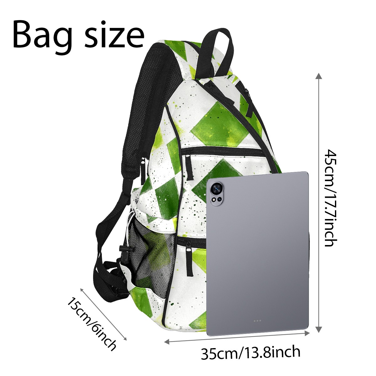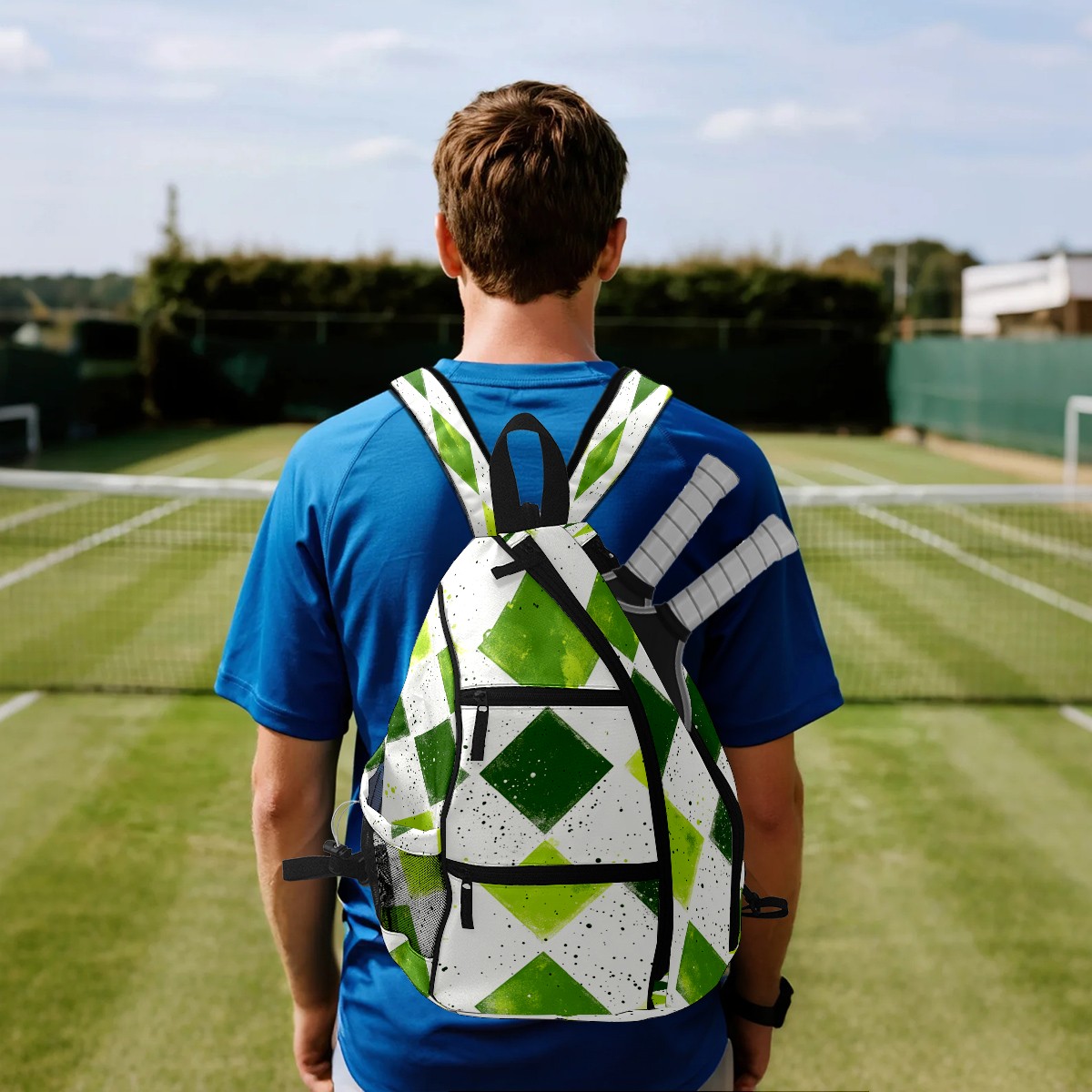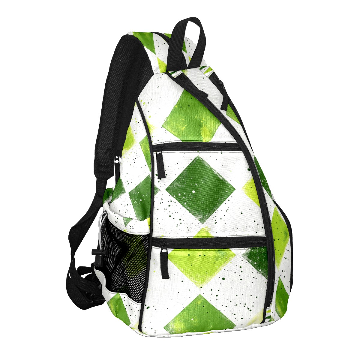 Pickleball Sling Bag for Women and Men - Backpack with Nylon Fabric/Woven Strap/Mesh Pocket/Fence Hook/Adjustable Bag Green Plaid Pattern
