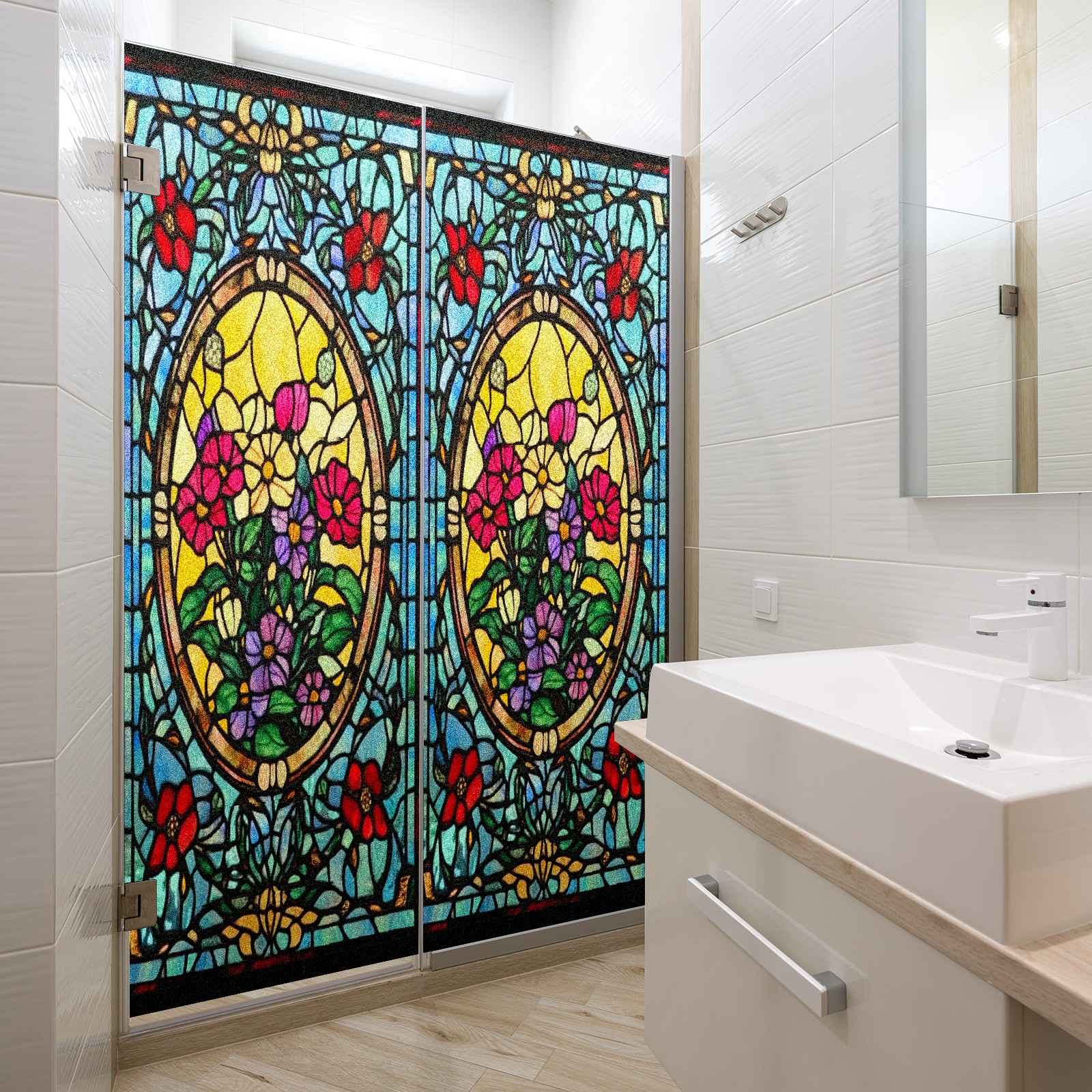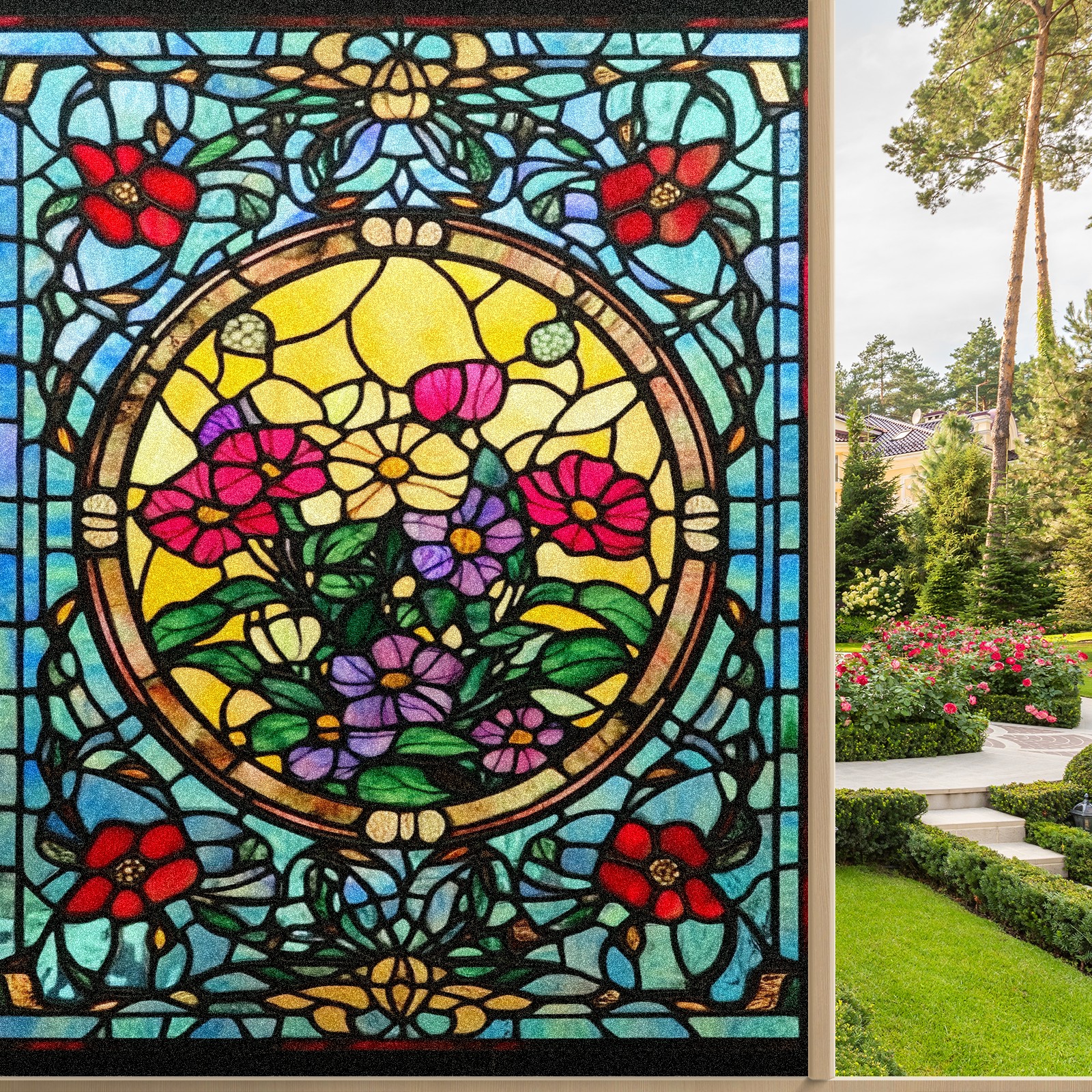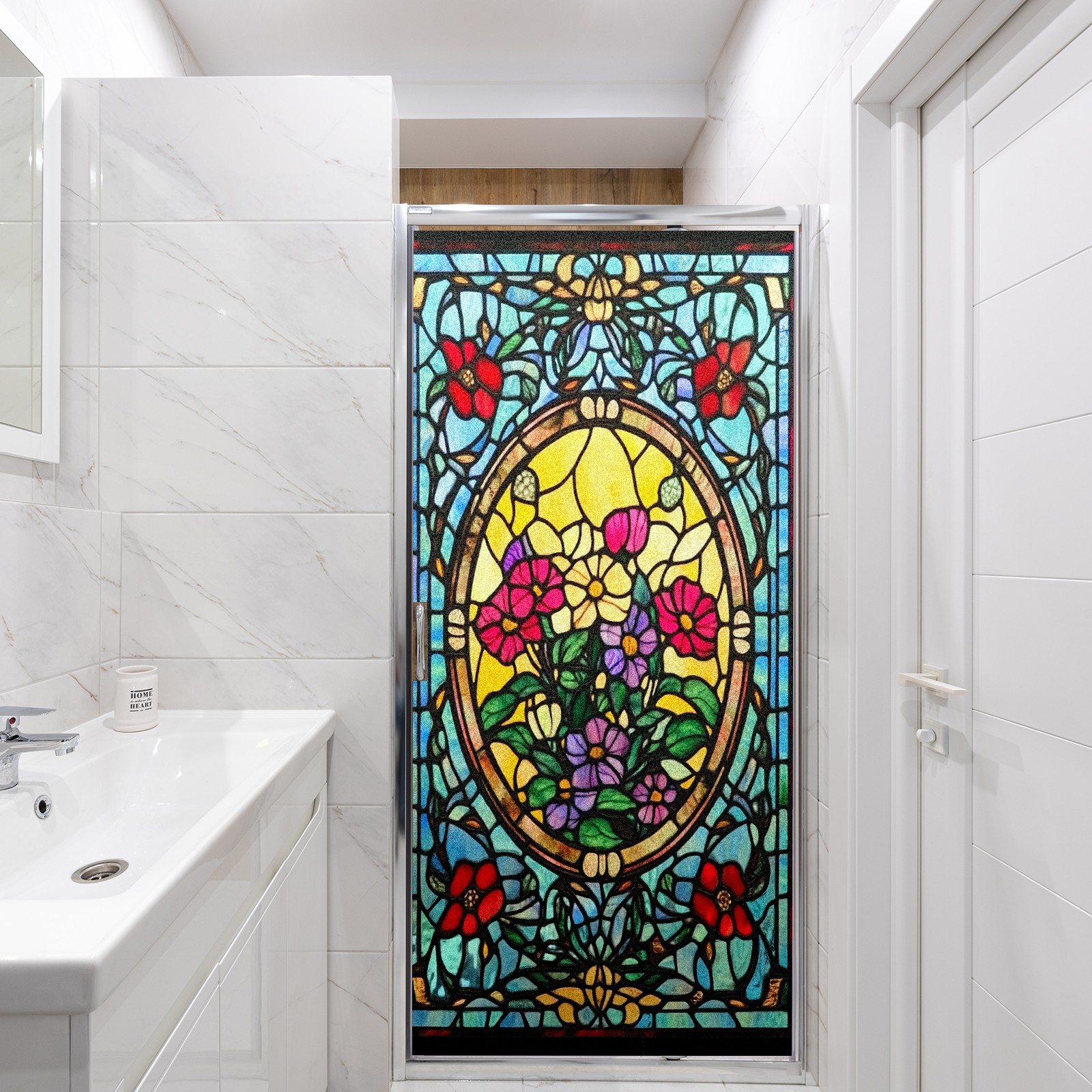 Window Privacy Film Frosted Stained Glass Film Decorative Static Cling for Bathroom Home Office Peel and Stick Window Film Rose(17.7x23.6in)
