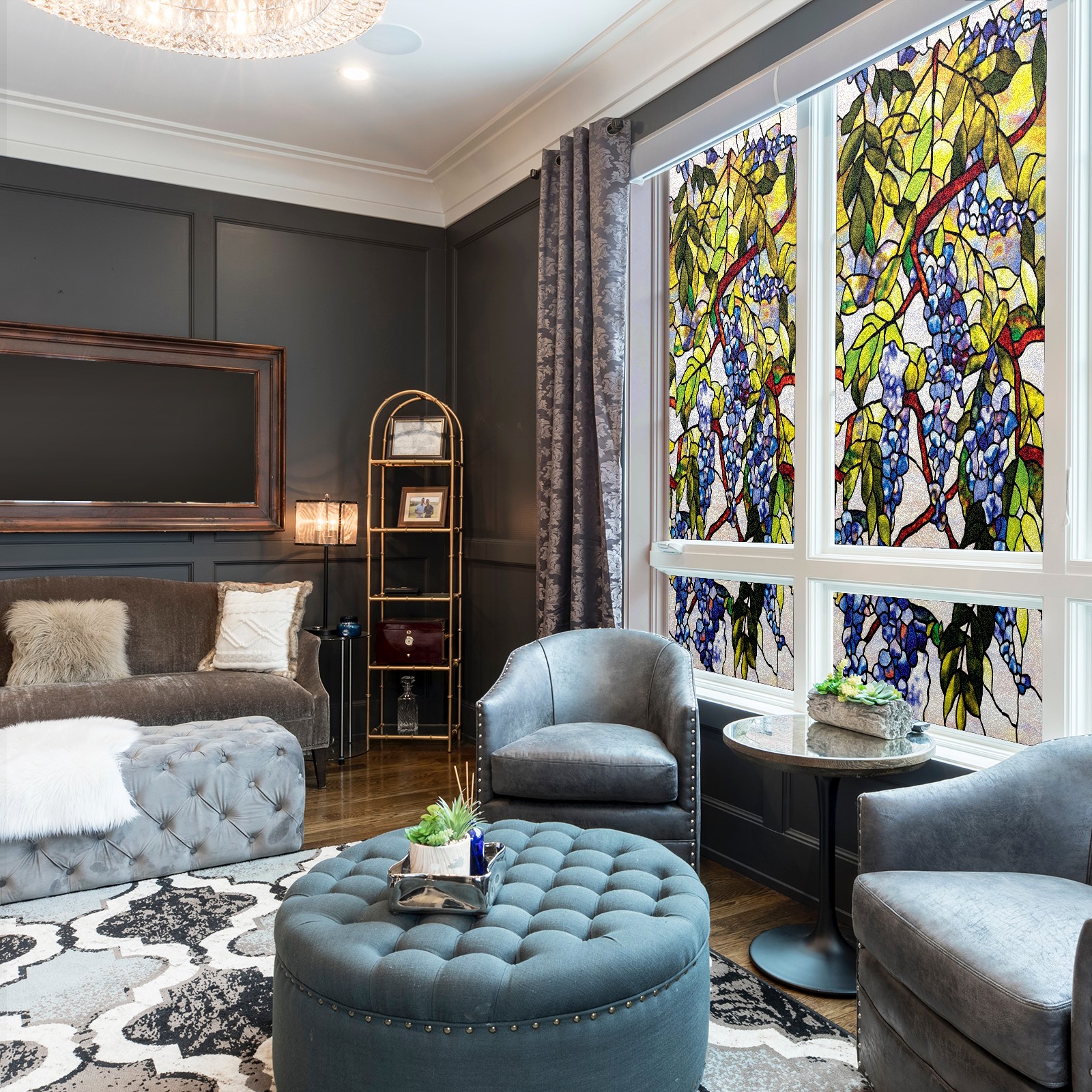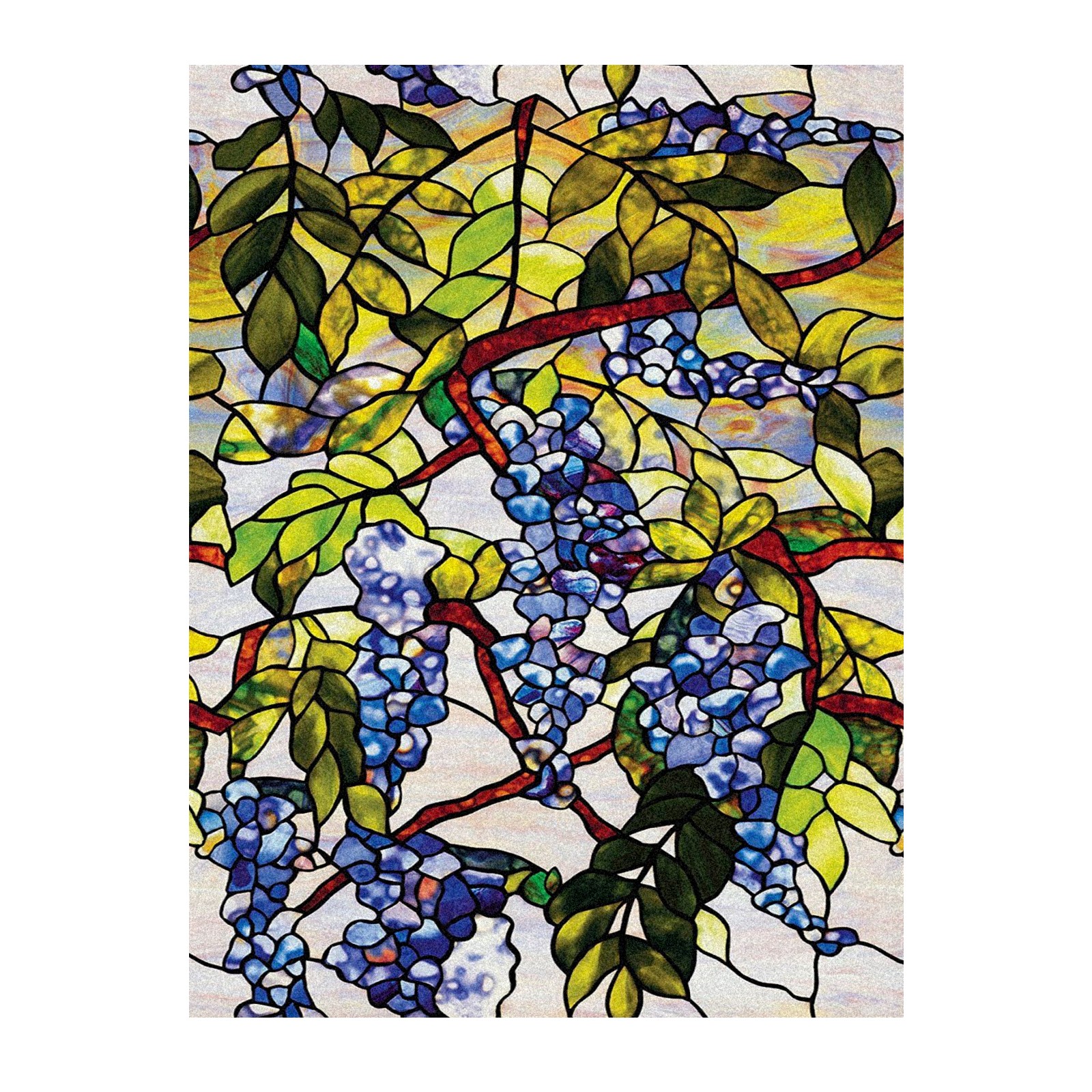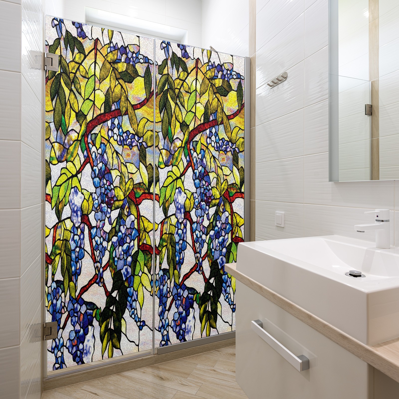 Window Privacy Film Frosted Stained Glass Film Decorative Static Cling for Bathroom Home Office Peel and Stick Window Film Purple Wistera Floral(17.7x23.6in)