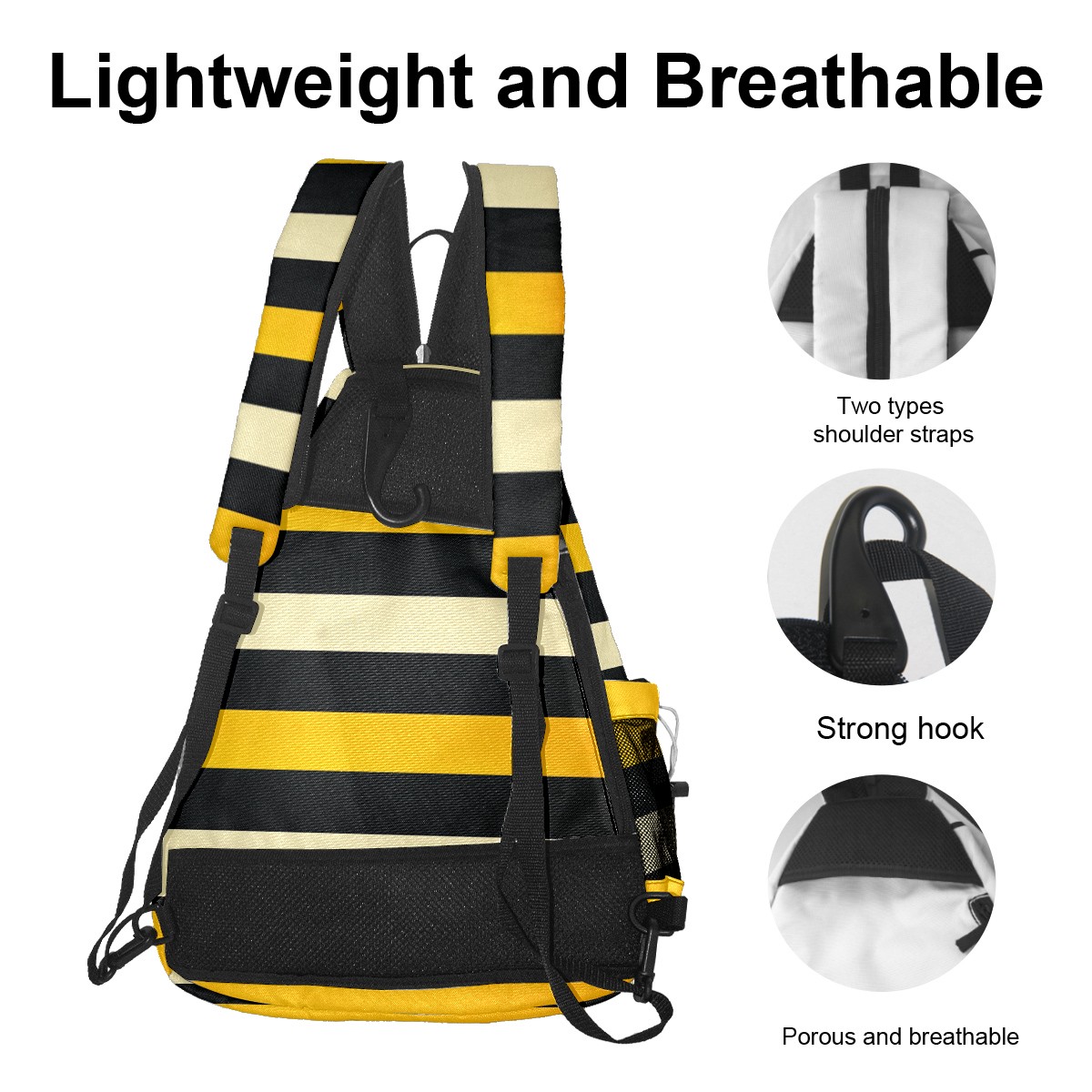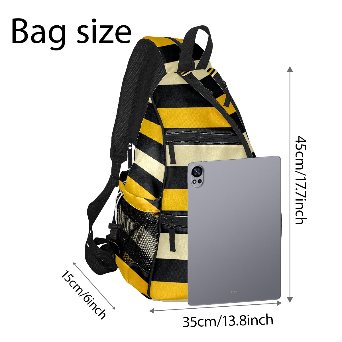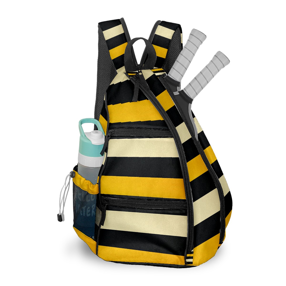 Pickleball Sling Bag for Women and Men - Backpack with Nylon Fabric/Woven Strap/Mesh Pocket/Fence Hook/Adjustable Bag Yellow Black Striped Pattern